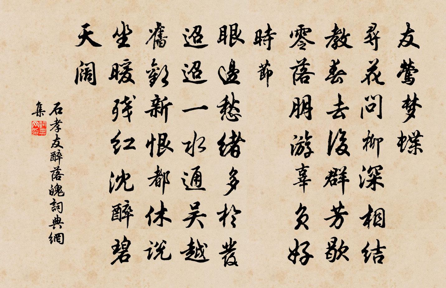 - 落盡梨花春又了。滿地殘陽,翠色和煙老。