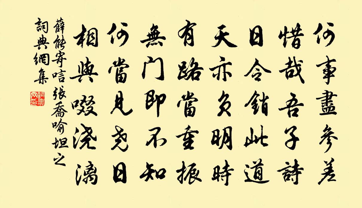 詩詞名句歷史字典書法欣賞書法字典國語詞典說文解字康熙字典古漢語字典標 題 作 者 詩 句 寄唁張喬喻坦之作者:薛能 朝代:唐代寄唁張喬喻坦之原文何事盡參差,惜哉吾子詩。日令銷此道,天亦負明時。有路當重振,無門即不知。何當見堯日,相與啜澆漓。詩詞問答問:寄唁張喬喻坦之的作者是誰?答:薛能問:寄唁張喬喻坦之寫於哪個朝代?答:唐代問:寄唁張喬喻坦之是什麼體裁?答:五律薛能寄唁張喬喻坦之書法欣賞寄唁張喬喻坦之書法作品注釋全唐詩:卷558-52詩詞推薦江夏寓興二首之二賀鑄〔宋代〕陂湖蹙坊市,江漢復縱橫。沮洳莎城阽,晴陽竹瓦鳴。新文添鵬賦,異味識黿羹。豈復悲流落,官糧寓此生。開府潞公太師得謝西歸謹賦七言四韻詩五首拜蘇頌〔宋代〕君臣一德千齡際,柱石三朝四紀中。天下重輕常系望,膝前謀議不言功。位高少有名兼美,體健方知福更隆。謾道老將高翥〔宋代〕垂頭終日坐當門,兩臂蒼龍隱墨紋。笑捻白須傳陣法,手攤黃紙說君恩。中年主帥皆為鬼,晚歲虞兵見領軍。每勸送北征人釋文珦〔宋代〕與君俱是客,那復送君行。未卜重逢日,難為欲別情。露花皆遠淚,風葉是愁聲。到日寒應極,修途七十程。滿江紅(海棠下歌后村調共和)劉辰翁〔宋代〕淡淡胭脂,似褪向、景陽鴛石。依然是、春睡未足,捧心猶癖。藉甚不禁君再顧,嫣然卻記渠初拆。黯銷魂、欲盡思鄭州陳知默因感其化去不得一識面邵雍〔宋代〕美物須絕代,異人須不世。造化生得成,諒亦非容易。曠世耳可聞,同時目能視。陳子同時人,奈何聞諸耳。偈傾一百六十九首釋智朋〔宋代〕七日來復,宮添一線。衲僧分上作么生,石筍抽條,冰河發焰。柏山拄杖子,放一頭低,與你相見。會三山十二縣宰真德秀〔宋代〕皇皇造化鈞,橐答籥生萬匯。林林滿穹壤,異體實同氣。痛癢本相關,彼已當一視。矧惟守令職,休戚我焉寄。盍題善光寺李涉〔唐代〕雲門天竺舊姻緣,臨老移家住玉泉。早到可中溳南寺,免得翻經住幾年。投曾原伯運使二首趙蕃〔宋代〕遠地書郵絕,長年屬望勞。要期親帚柄,寧憚學舟操。愧守藩籬小,難窺牆仞高。秋風滿天地,不廢候蟲號。謁金門 酒後偶憶張翥〔元代〕春幾許。紅透數枝花雨。管領風光誰是主。酒邊人楚楚。好與寫將樂府。積與畫教眉嫵。醉後不知庭院午。隔簾雙泊雷江董嗣杲〔宋代〕沽酒難澆傀儡胸,風平浪息臥孤篷。寒知僵艤雷江口,醒落狂吟雪店中。勞去有身侔病鶴,愁回無耳聽哀鴻。行人寄趙宰三首陳造〔宋代〕猛士語難熊虎樣,畫樓山立水雲間。雄豪等作詩家助,酒處吟箋莫放閒。禽言陸游〔宋代〕拔筍拔筍,入箐不辭風雨窘。養成會見高拂雲,取供口腹初不忍。獨持兩把慰倚門,慈顏一笑如春溫。嘉定二年冊皇太子四首佚名〔宋代〕太極端御,少陽肅祗。珉簡斯鏤,兗服孔宜。式奏備樂,迺陳盛德。下拜登受,永言保之。賀新郎(端午)詹無咎〔宋代〕梅子黃時雨。對幽窗、依依抱獨,幾多愁緒。潤逼琴絲無雅韻,難續文園舊詣。頭白盡、相如誰顧。燕子樓空塵又酥張蘊〔宋代〕兼味醍醐外,分身乳酪中。江南鳴穉犢,塞上寄飛鴻。乾雨看如幻,生鹽訝漸融。臘殘猶有待,煎取牡丹紅。念奴嬌(題臨湖閣。閣在東陽,向巨源所創,洪容齋作記,舊贅漕幕居其下)王義山〔宋代〕南昌奇觀,最東湖、好景重重疊疊。誰瞰湖光新佳閣,橫挹翠峰嶻辥。十里芙蓉,海神捧出,一鏡何明徹。鳶魚飛早梅柳宗元〔唐代〕早梅發高樹,迥映楚天碧。朔吹飄夜香,繁霜滋曉白。欲為萬里贈,杳杳山水隔。寒英坐銷落,何用慰遠客。次韻向和卿行松滋縣與鄒天錫夜語南極亭二首黃庭堅〔宋代〕衝風沖雨走七縣,唯有白鷗盟未寒。坐中更得江南客,開盡南窗借月看。名句推薦浮生長恨歡娛少。宋祁《玉樓春·春景》 不知何日東瀛變,此地還成要路津。劉禹錫《漢壽城春望》 老去悲秋強自寬,興來今日盡君歡。杜甫《九日藍田崔氏莊》 同欲者相憎,同憂者相親。劉向《戰國策·中山·犀首立五王》 春田龜坼苗不滋,猶賴立春三日雪。王士禎《春不雨》 父子竭力山成玉,弟兄同心土變金。佚名《增廣賢文·下集》 人生到處知何似,應似飛鴻踏雪泥。蘇軾《和子由澠池懷舊》 天地玄黃,宇宙洪荒。周興嗣《千字文·全文》 漸老多憂百事忙,天寒日短更心傷。李覯《秋晚悲懷》 於安思危,危則慮安。劉向《戰國策·楚四·虞卿謂春申君》