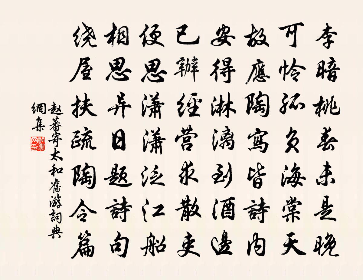 詩詞名句歷史字典書法欣賞書法字典國語詞典說文解字康熙字典古漢語字典標 題 作 者 詩 句 寄太和舊遊作者:趙蕃 朝代:宋代寄太和舊遊原文李暗桃春未是晚,可憐孤負海棠天。故應陶寫皆詩內,安得淋漓到酒邊。已辦經營求散吏,便思瀟瀟泛江船。相思異日題詩句,繞屋扶疏陶令篇。詩詞問答問:寄太和舊遊的作者是誰?答:趙蕃問:寄太和舊遊寫於哪個朝代?答:宋代趙蕃寄太和舊遊書法欣賞寄太和舊遊書法作品詩詞推薦孤雁釋文珦〔宋代〕孤雁如貞婦,餘生不再雙。避寒辭北塞,隨日到南邦。倦翼堪憐影,哀音自滿腔。空閨人聽得,離思轉難降。似法椿齡叟陳著〔宋代〕人生契合處,信是宿因緣。坐到無言外,參成有佛前。好山非昨日,啼鳥又今年。帶得醉歸去,醒時風滿天。阮郎歸劉鎮〔宋代〕寒陰漠漠夜來霜。階庭風葉黃。歸鴉數點帶斜陽。誰家砧杵忙。燈弄幌,月侵廊。熏籠添寶香。小屏低枕怯更長。病牛李綱〔宋代〕耕犁千畝實千箱,力盡筋疲誰復傷?但得眾生皆得飽,不辭羸病臥殘陽。江南春白居易〔唐代〕青門柳枝軟無力,東風吹作黃金色。街前酒薄醉易醒,滿眼春愁消不得。陳梅隱求詩朱南傑〔宋代〕旱歲走江湖,那堪又歲除。隱梅非活計,行李盍寧居。自有珠璣集,不攜朝貴書。酬君無好語,索笑謾躊躇。蝶戀花 戲題疏齊怡雲詞後程文海〔元代〕長憶山中雲共住。出處無心,只恨雲無語。今日能歌還解舞。不堪持寄山中侶。誰道解愁愁更聚。自有卿卿,慣畫傾杯(上樑帥上元詞)楊無咎〔宋代〕瑞日凝暉,東風解凍,峭寒猶淺。正池館、梅英粉淡,柳梢金軟,蘭芽香暖。滕城誰種芙蕖滿。浸銀蟾影,一夜萬題周文翰郭熙山水二首張耒〔宋代〕洞庭葉落萬波秋,說與南人亦自愁。指點吳江何處是,一行鴻雁海山頭。木皮嶺杜甫〔唐代〕首路栗亭西,尚想鳳凰村。季冬攜童稚,辛苦赴蜀門。南登木皮嶺,艱險不易論。汗流被我體,祁寒為之暄。遠岫陳情表李密〔魏晉〕臣密言:臣以險釁,夙遭閔凶。生孩六月,慈父見背;行年四歲,舅奪母志。祖母劉憫臣孤弱,躬親撫養。臣少多裝太和米綱徐似道〔宋代〕一鞭加爾膚,萬刃劃吾腹。就令猛於虎,何忍食子肉。世無冷鑊湯,邑盡活地獄。鷓鴣引 和周斡臣韻。中統五年三月十二日夜王惲〔元代〕門外東風駐馬蹄。月明庭樹綠陰稀。眼中時事驚天運,醉里游談似□機。思遠走,擬高飛。此心安得與時違。遺書四月二十一日同妻孥泛舟登呂氏濟川亭二首吳芾〔宋代〕不到茲山二十秋,重來山水更清幽。無因得向岩前住,日日持竿上釣舟。江城子·賞春朱淑真〔宋代〕斜風細雨作春寒,對尊前,憶前歡。曾把梨花,寂寞淚闌乾。芳草斷煙南浦路,和別淚,看青山。昨宵結得夢夤緣聞杭飢強至〔宋代〕客從吾鄉來,告我歲大歉。百金易斗粟,富者頭屢撼。餓殍相枕藉,億口盡虛頷。客言尚未竟,予淚已成點。避席感皇恩 次韻姚牧庵題歲寒亭 此首下原附牧庵程文海〔元代〕翠節下天來,通明誰侍。地有高齋要名士。相逢恨晚,老矣酒兵詩帥。歲寒同一笑、千年事。黃鶴羈情,暮雲離思西江月·賦瑤圃青梅枝上晚花吳文英〔宋代〕枝裊一痕雪在,葉藏幾豆春濃。玉奴最晚嫁東風。來結梨花幽夢。香力添熏羅被,瘦肌猶怯冰綃。綠陰青子老溪橋落花落王勃〔唐代〕落花落,落花紛漠漠。綠葉青跗映丹萼,與君裴回上金閣。影拂妝階玳瑁筵,香飄舞館茱萸幕。落花飛,燎亂入中梅聖俞詩集中有毛長官者今於潛令國華也聖俞蘇軾〔宋代〕詩翁憔悴老一官,厭見苜蓿堆青盤。歸來羞澀對妻子,自比鮎魚緣竹竿。今君滯留生二毛,飽聽衙鼓眠黃紬。更將名句推薦牆頭馬上遙相顧,一見知君即斷腸。白居易《井底引銀瓶·止淫奔也》 寧可濕衣,不可亂步李汝珍《鏡花緣·第二十回》 不虛美,不隱惡司馬光《資治通鑑·唐紀·唐紀十三》 時霎清明,載花不過西園路。吳文英《點絳唇·時霎清明》 弱齡寄事外,委懷在琴書。陶淵明《始作鎮軍參軍經曲阿作》 克城以武,戡亂以仁。張廷玉《明史·本紀·卷一》 候館梅殘,溪橋柳細。歐陽修《踏莎行·候館梅殘》 雪花全似梅花萼。細看不是雪無香,天風吹得香零落。王旭《踏莎行·雪中看梅花》 不蹶于山,而蹶於垤,則細微宜防也。王永彬《圍爐夜話·第五二則》 表獨立兮山之上,雲容容兮而在下;屈原《九歌》