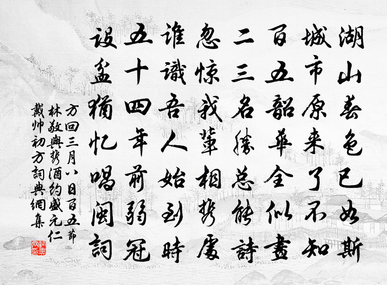 詩詞名句歷史字典書法欣賞書法字典國語詞典說文解字康熙字典古漢語字典標 題 作 者 詩 句 三月八日百五節林敬輿攜酒約盛元仁戴帥初方作者:方回 朝代:宋代原文湖山春色已如斯,城市原來了不知。百五韶華全似畫,二三名勝總能詩。忽驚我輩相攜處,誰識吾人始到時。五十四年前弱冠,設盆猶憶唱閩詞。詩詞問答問:《三月八日百五節林敬輿攜酒約盛元仁戴帥初方》的作者是誰?答:方回問:該詩寫於哪個朝代?答:宋代書法欣賞三月八日百五節林敬輿攜酒約盛元仁戴帥初方書法作品詩文賞析【原題】:三月八日百五節林敬輿攜酒約盛元仁戴帥初方萬里訪趙仲實宣慰於西湖第五橋之曲港南山書院五首詩詞推薦減字木蘭花佚名〔宋代〕向來梅發。雪袂仙裳回絳闕。今又梅開。已領熊罷好夢來。試將梅比。才著陽和爭結子。梅子生成。早晚須調鼎鼐句陳雄飛〔宋代〕處順心恆逸,無求道乃高。崇化寺三首張耒〔宋代〕樓殿沉沉鎖夜煙,秋燈一點佛龕前。梧桐葉上三更雨,亦有愁人獨自眠。失調名佚名〔宋代〕夜深青女濕微妝。示日本景用禪人釋紹曇〔宋代〕日本國與大唐國,一片皇風無間隔。如將棗置針鋒,破草鞋跟天地窄。上人滿腹{上祝下土}疑團,夷夏區分扣牧溪行陸游〔宋代〕疏鍾度莽蒼,遠火耿微茫。歲暮水歸壑,夜寒天霣霜。人生一蟲臂,世路幾羊腸?老大忘繩檢,狂歌盡意長。寓目宋伯仁〔宋代〕暖風輕撥繡簾開,放入雙雙紫燕來。燕子似於人有舊,細銜花片落妝檯。見曾提刑兼安撫戴復古〔宋代〕傳家學術用如新,風采英英照七閩。澄按並開都督府,平反專奉太夫人。關河未定心憂國,麾節相仍澤在民。聞說扇子詩李石〔宋代〕一葉梧桐一片雲,秋風江上日紛紛。鴉來鴉去吾何預,不向聲塵著意聞。信士畫真請贊釋印肅〔宋代〕非迷非悟,誰強名模。無相三昧,不受塗糊。越色超聲無個事,連聲不斷念蘇盧。眉芒動處千光含,自肯除非大丈行香子·秋與蘇軾〔宋代〕昨夜霜風。先入梧桐。渾無處、迴避衰容。問公何事,不語書空。但一回醉,一回病,一回慵。朝來庭下,光陰如題范子濟雙頭芍藥二首王洋〔宋代〕春風隨律入花房,三月淮南春書長。聞道傳呼催近侍,雙垂羅袖引花王。偈頌二百零五首釋正覺〔宋代〕一雨霑濡,諸根萌動。青黃各成其姿,長短各隨其用。綿綿也妙有機絲,混混也廓無稜縫。若人問我如何,敢道不李迅甫送蟹高似孫〔宋代〕平生嗜此龜蒙蟹,便無錢也多多買。瞥見風姿已瀟瀟,一呷橙虀酒如澥。琵琶仙 中秋納蘭性德〔清代〕碧海年年,試問取、冰輪為誰圓缺?吹到一片秋香,清輝了如雪。愁中看好天良夜,知道盡成悲咽。隻影而今,那夕烽杜甫〔唐代〕夕烽來不近,每日報平安。塞上傳光小,雲邊落點殘。照秦通警急,過隴自艱難。聞道蓬萊殿,千門立馬看。箏柱子朱灣〔唐代〕散木今何幸,良工不棄捐力微慚一柱,材薄仰群弦。力微慚一柱,材薄仰群弦。且喜聲相應,寧辭跡屢遷。知音如葺居一首劉克莊〔宋代〕兵火間關鬢欲絲,歸來聊卜草堂基。架留手澤書堪看,爨有躬耕米可炊。畏濕先開通水竇,貪明稍斫近檐枝。旋移鼓丁謂〔宋代〕未辨吳官鷺,誰收駱越銅。抑揚三今內,和樂五音中。美玉隨天仗,靈夔集帝功。雷門休冒布,方叔笑愚聾。暮春黃庚〔宋代〕寂寞園林三月時,客中幾度見春歸。柳眉綠皺鶯無語,花臉紅銷蝶倦飛。節物暗催雙鬢老,功名長與寸心違。百年名句推薦江天一色無纖塵,皎皎空中孤月輪。張若虛《春江花月夜》 花近高樓傷客心,萬方多難此登臨。杜甫《登樓》 幽蘭旋老,杜若還生,水鄉尚寄旅。吳文英《鶯啼序·春晚感懷》 朽木不可雕也,糞土之牆不可圬也!佚名《宰予晝寢》 采采黃金花,何由滿衣袖。杜甫《九日寄岑參》 赤壁磯頭落照,肥水橋邊衰草,渺渺喚人愁張孝祥《水調歌頭·和龐佑父》 我欲穿花尋路,直入白雲深處,浩氣展虹霓。黃庭堅《水調歌頭·遊覽》 小人錯其在己者,而慕其在天者。荀子《荀子·天論》 繡帳已闌離別夢,玉爐空裊寂寥香。馮延巳《浣溪沙·春到青門柳色黃》 國破山河在,城春草木深。杜甫《春望》