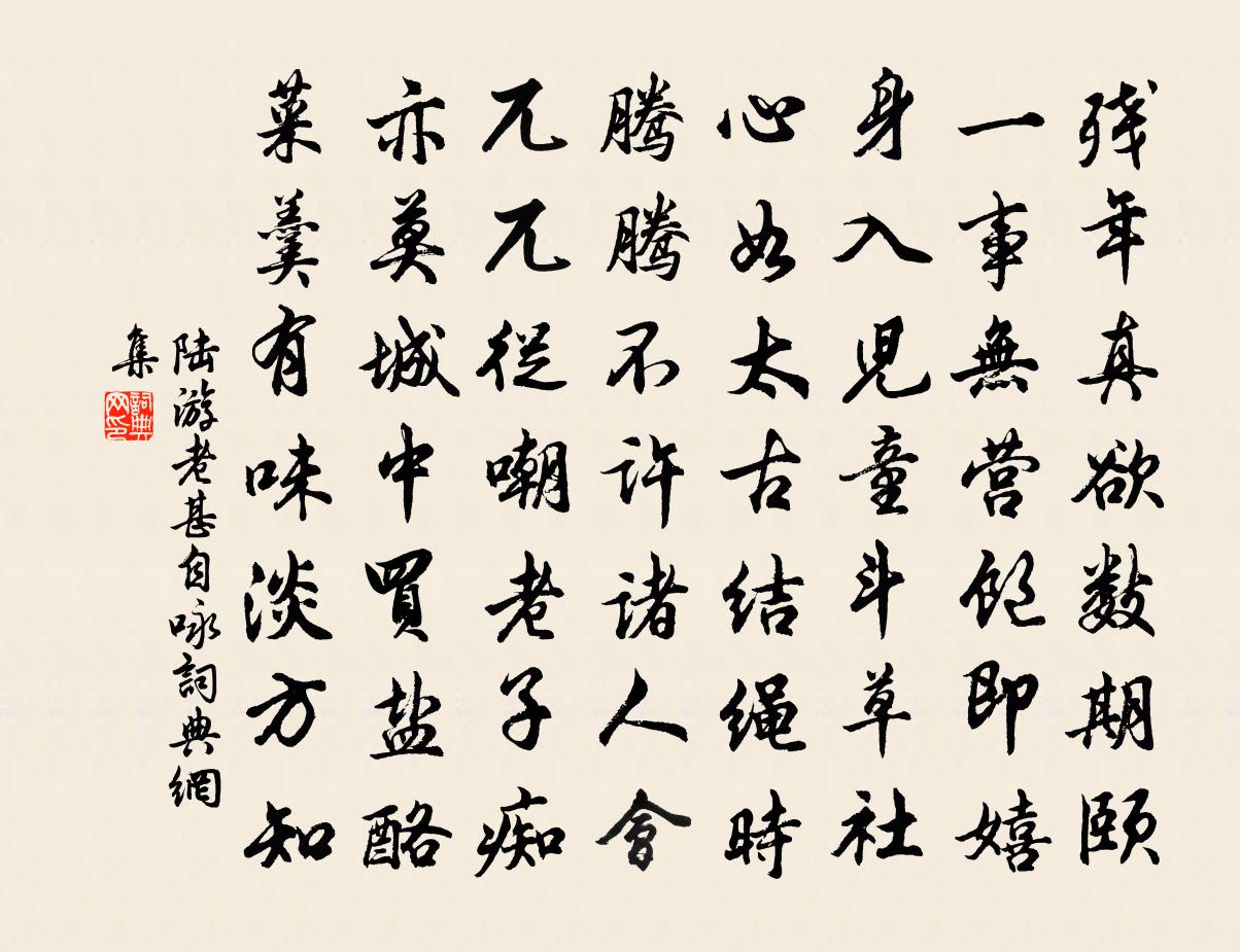 殘年真欲數期頤,一事無營飽即嬉。身入兒童鬥草社,心如太古結繩時。