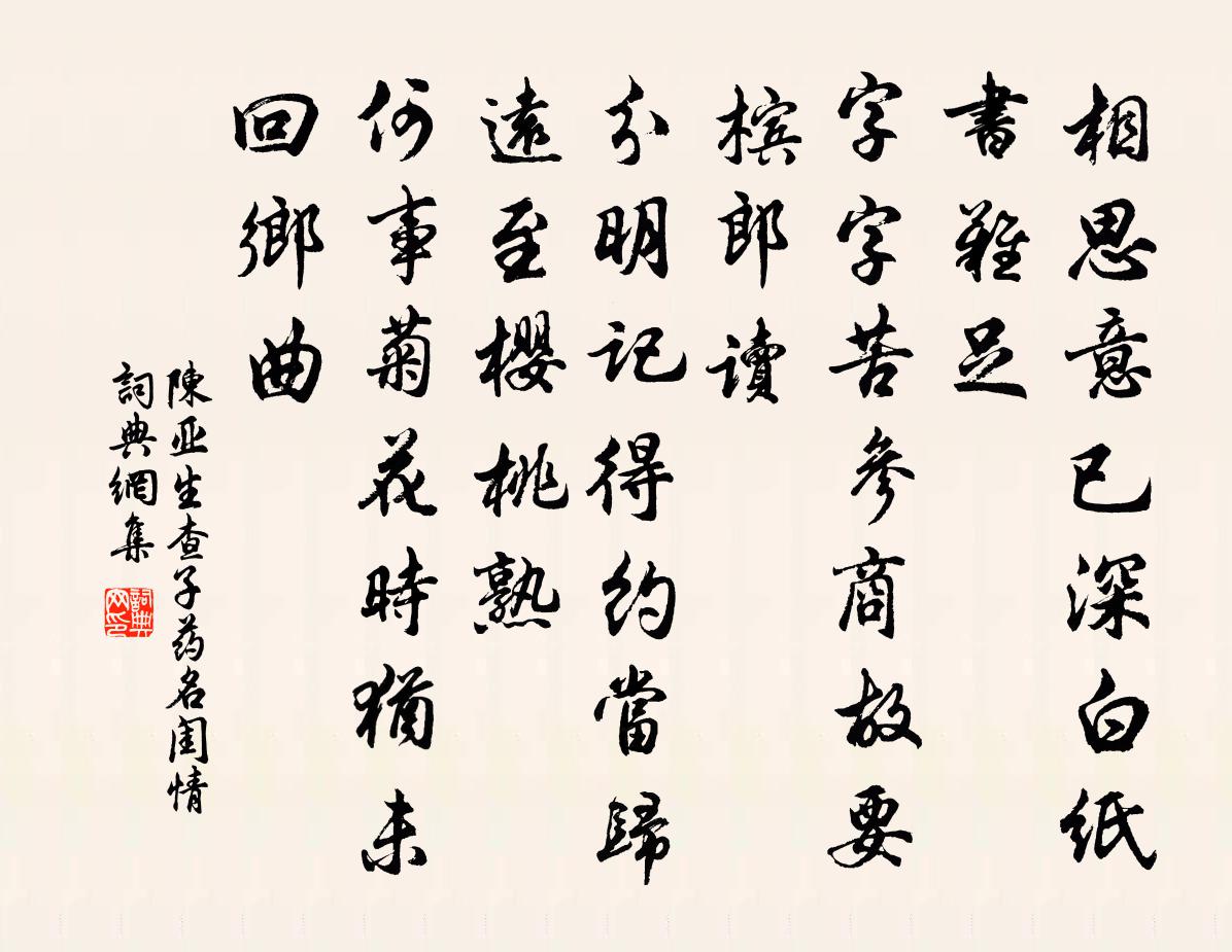 藥名詞,規定每句至少要有一個藥名,藥名可借用同音字 。這首詞中的“相思 ”、“苦參”、“當歸”、“櫻桃”、“菊花”是藥名本字;“意已”、“白紙”、“郎讀”、“遠至”、“回鄉”等,則是同意借用而藥名的 。作者在詞中對十種藥名的妙用,顯示了他醫藥知識的精深。