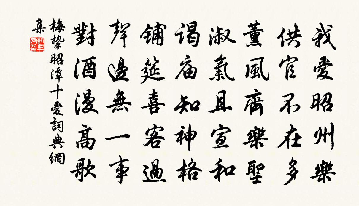 詩詞名句歷史字典書法欣賞書法字典國語詞典說文解字康熙字典古漢語字典標 題 作 者 詩 句 昭潭十愛作者:梅摯 朝代:宋代昭潭十愛原文我愛昭州樂,供官不在多。薰風齊樂聖,淑氣且宣和。謁廟知神格,鋪筵喜客過。聲邊無一事,對酒漫高歌。詩詞問答問:昭潭十愛的作者是誰?答:梅摯問:昭潭十愛寫於哪個朝代?答:宋代梅摯昭潭十愛書法欣賞昭潭十愛書法作品詩詞推薦靜樂用元韻為勸學之什再和鄭清之〔宋代〕士惟食志非食力,於陵奚事親屨織。靜樂一門自師友,簣進不為子貢息。元仲季方從太丘,海內人士俱願識。案上和程泰之閣學詠雪十二題招雪袁說友〔宋代〕一別瑤池輒去思,明年農事要先知。天風夜半旛旂動,便欲欺梅更壓枝。送趙庸齋去國胡仲弓〔宋代〕十年居要路,依舊老書生。公論是非定,宗臣去就輕。群鴉分地噪,一鳳仰天鳴。善類俄星散,何因見太平。嘲崔左丞省吏〔唐代〕崔子曲如鉤,隨例得封侯。髆上全無項,胸前別有頭。雙石白居易〔唐代〕蒼然兩片石,厥狀怪且醜。俗用無所堪,時人嫌不取。結從胚渾始,得自洞庭口。萬古遺水濱,一朝入吾手。擔舁南柯子侯善淵〔元代〕踏破塵勞網,沖天志決貞。手中持劍轉環睛。日耀爭光,*爍瑩天明。覺海千尋底,靈波萬里傾。群魔消散鬼神驚梅花盧梅坡〔宋代〕梅雪爭春未肯降,騷人閣筆費平章。梅須遜雪三分白,雪卻輸梅一段香。寄梁士衡韓元吉〔宋代〕江上潮聲日夜來,相望蹤跡共塵埃。亂花洗雨紅成陣,疊嶂連天翠作堆。山市放歌知屢醉,沙津獨步想千回。松林趙州和尚贊釋宗杲〔宋代〕庭柏無根,虛空有骨。十分魯鈍,以遼天鶻。熱至乘涼,寒燒榾柮。夫是之謂,趙州古佛。偈頌六十首釋曇華〔宋代〕彌勒真彌勒,分身千百億。時時示時人,時人俱不識。琵琶洲方信孺〔宋代〕仿佛琵琶海上洲,年年常與水沉浮。客船昨夜西風起,應有江頭商婦愁。雜曲歌辭拜新月吉中孚妻〔唐代〕拜新月,拜月出堂前,暗魄深籠桂,虛弓未引弦。拜新月,拜月妝樓上,鸞鏡未安台,蛾眉已相向。拜新月,拜月野居書情韋應物〔唐代〕世事日可見,身名良蹉跎。尚瞻白雲嶺,聊作負薪歌。和伯氏德清道中王洋〔宋代〕解組歸尋梵釋宮,帆風舟轉疾飛蓬。棠陰留付長江外,山色收來數笑中。聞說笑談供燕席,有時魚烏雜簽筒。豈唯折桂令喬吉〔元代〕黃四娘沽酒當壚,一片青旗,一曲驪珠。滴露和雲,添花補柳,梳洗工夫。無半點閒愁去處,問三生醉夢何如?笑碧落洞前灘水三首楊萬里〔宋代〕碧落峰前上一灘,篙師叫得口都乾。開門將謂舡行遠,只在峰頭蘆荻灣。蔬食陸游〔宋代〕今年徹底貧,不復具一肉;日高對空案,腸鳴轉車軸。春薺忽已花,老筍欲成竹;平生飯蔬食,至此亦不足。孰知生查子·新月曲如眉牛希濟〔五代〕新月曲如眉,未有團圞意。紅豆不堪看,滿眼相思淚。終日劈桃穰,仁在心兒里。兩朵隔牆花,早晚成連理。解嘲十絕呈浩西堂釋紹嵩〔宋代〕中年養病只吟詩,心跡懸知兩崛奇。莫笑吾儂耽此癖,鏡中贏得鬢成絲。慶元三年奉上孝宗徽號三首真宗〔宋代〕巍巍孝廟,聖德天通。同符藝祖,克紹高宗。有和有冊,載推載崇。鏤玉繩金,登奉祏宮。名句推薦志意修則驕富貴,道義重則輕王公。荀子《荀子·修身》 荊山長號泣血人,忠臣死為刖足鬼李白《鞠歌行》 閣道步行月,美人愁煙空。李白《上之回》 翠葉藏鶯,朱簾隔燕。晏殊《踏莎行·小徑紅稀》 竹樹帶飛嵐,荇藻俱明麗。劉道著《湘江秋曉》 元宵佳節,融和天氣,次第豈無風雨。李清照《永遇樂·落日熔金》 知我者,謂我心憂;不知我者,謂我何求。佚名《黍離》 去年今日臥燕台,銅鼓中宵隱地雷王守仁《元夕二首》 蠶娘洗繭前溪淥,牧童吹笛和衣浴。貫休《春晚書山家屋壁二首》 子用私道者家必亂,臣用私義者國必危。劉向《戰國策·趙二·趙燕後胡服》