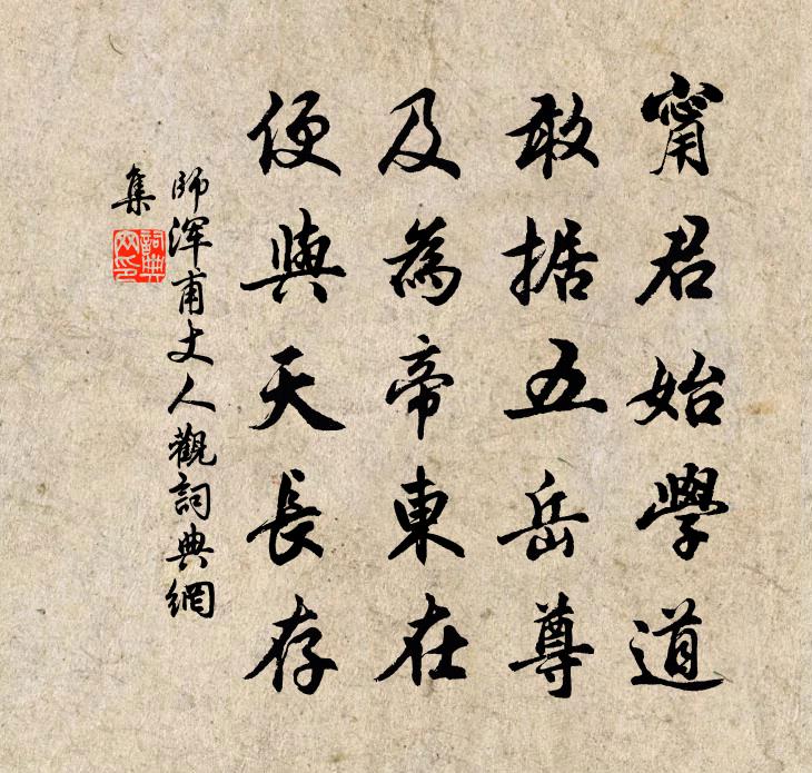 詩詞名句歷史字典書法欣賞書法字典國語詞典說文解字康熙字典古漢語字典標 題 作 者 詩 句 丈人觀作者:師渾甫 朝代:宋代丈人觀原文甯君始學道,敢據五嶽尊。及為帝東在,便與天長存。詩詞問答問:丈人觀的作者是誰?答:師渾甫問:丈人觀寫於哪個朝代?答:宋代師渾甫丈人觀書法欣賞丈人觀書法作品詩詞推薦石竺山二十詠劉克莊〔宋代〕聞說均州景,而今涴戰塵。應隨黑殺帝,避地肯來閩。送友人游蜀李頻〔唐代〕東堂雖不捷,西去復何愁。蜀馬知歸路,巴山似舊遊。星臨劍閣動,花落錦江流。鼓吹青林下,時聞祭武侯。聞虜人敗於柘皋作口號十首龐謙孺〔宋代〕一自官軍報捷頻,番人無數願歸明。渠魁未必能方略,所恃多多以力爭。偈頌一百五十首釋心月〔宋代〕去年今年,八月九月。一樹兩樹,丹桂離披。三枝四枝,黃花漏世。於斯見面不相逢,於斯相逢復相別。偈十三首釋慧空〔宋代〕祖師心印,堪作何用。無位真人,屎也不直。獨步青霄,徒夸好手。和泥合水,罕遇同流。柳張旭〔唐代〕濯濯煙條拂地垂,城邊樓畔結春思。請君細看風流意,未減靈和殿里時。尚父偶建小樓,特摛麗藻絕句不敢稱揚三首羅隱〔唐代〕結構叨馮柱石才,敢期幢蓋此裴回。陽春曲調高誰和,盡日焚香倚隗台。玳簪珠履愧非才,時憑闌乾首重回。只待賢者之孝二百四十首房玄齡林同〔宋代〕人皆因祿富,我獨以官貧。佩父清白訓,為唐第一人。改詩劉克莊〔宋代〕推敲覓句渾如故,臥起詩人始覺衰。送老聊題□□頌,逢辰曾和柏梁詩。今無鮑叔誰知我,後有揚雄必好之。叢藁鄭仁表自語佚名〔唐代〕天瑞有五色雲,人瑞有鄭仁表。題楊道人默軒黃庭堅〔宋代〕炙手權門烈火炎,冷溪寒谷反幽潛。輕塵不動琴橫膝,萬籟無聲月入簾。秋後絲錢誰數得,春余蒼竹自知添。客星新月許必勝〔宋代〕偶向樹中見,知從水際生。葉翻寒不定,雲去意無成。亂石流泉影,空山落子聲。當年眉黛在,定見可憐情。秋懷十首韓元吉〔宋代〕八月濤頭舊有名,今年潮淺岸才平。應緣享帝千靈在,豫使魚龍不敢鳴。四疊劉克莊〔宋代〕愁見當時玉鏡台,返魂無訣可勝哀。暮年尚有餘情在,月下迢迢挈影來。過九疑馬大同〔宋代〕人與韶音渺莫聞,山如羽衛自森森。不封不樹知何處,漫說零陵古到今。秋暮憶中秋夜與王璠侍御賞月,因愴遠離聊以奉寄鮑防〔唐代〕前月月明夜,美人同遠光。清塵一以間,今夕坐相忘。風落芙蓉露,疑餘繡被香。意難忘張炎〔宋代〕風月吳娃。柳陰中認得,第二香車。春深妝減艷,波轉影流花。鶯語滑,透紋紗。有低唱人夸。怕誤卻,周郎醉眼四不忍劉子翬〔宋代〕黃河鑿鑿冰成路,人語寒空氣成霧。此時泣血念鑾輿,玉體能勝凜冽無。蒼黃天步蒙塵去,畫袞飄零傷歲暮,飛書與同幕集南樓再用韻方岳〔宋代〕飛蓋臨邊城,敵在吾目中。古今一俯仰,衰草迷隋宮。書生故倦遊,龐眉感秋蓬。安得雙飛鴻,跨此萬里風。下視詠史詩即墨胡曾〔唐代〕即墨門開縱火牛,燕師營里血波流。固存不得田單術,齊國尋成一土丘。名句推薦故國三千里,深宮二十年。張祜《宮詞·故國三千里》 不看僧面看佛面。吳承恩《西遊記·第三十一回》 魄依鉤樣小,扇逐漢機團。薛濤《月》 紛紛世事無窮盡,天數茫茫不可逃。羅貫中《三國演義·第一百二十回》 好面譽人者,亦好背而毀之。莊子《莊子·雜篇·盜跖》 法不阿貴,繩不撓曲。韓非及後人《韓非子·有度》 夕陽鳥外,秋風原上,目斷四天垂。柳永《少年游·長安古道馬遲遲》 斜陽獨倚西樓。遙山恰對簾鉤。晏殊《清平樂·紅箋小字》 空山松子落,幽人應未眠。韋應物《秋夜寄邱員外 / 秋夜寄丘二十二員外》 林下春晴風漸和,高崖殘雪已無多。王守仁《春晴》