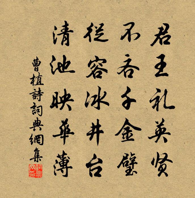詩詞名句歷史字典書法欣賞書法字典國語詞典說文解字康熙字典古漢語字典標 題 作 者 詩 句 詩作者:曹植 朝代:魏晉詩原文君王禮英賢。不吝千金璧。從容冰井台。清池映華薄。詩詞問答問:詩的作者是誰?答:曹植問:詩寫於哪個朝代?答:魏晉問:曹植的名句有哪些?答:曹植名句大全曹植詩書法欣賞詩書法作品詩詞推薦瑞鶴仙史浩〔宋代〕是花堪愛惜。謝天教、花信添花顏色。花紅襯花碧。燦朝陽花露,鮫珠頻滴。花光的皪。映花下、□茵百尺。趁花上章戴灘楊萬里〔宋代〕脫巾枕手仰喔詩,醉上諸灘總不知。回看他船上灘苦,方知它看我船時。和林處士梅詩八首劉學箕〔宋代〕寂寞吟懷誰與開,前村除是竹邊梅。清尊撩觸香三嗅,短日吟搜腸九回。石路與風隨袖入,茆檐和月上窗來。幾番歲暮北亭懷子京宛丘二首宋庠〔宋代〕搖落江都城,風塵宛丘道。天涯遙相望,離思何草草。回澤騰麏{上鹿下加},滄洲叫鳧鴇。星歲日雲徂,在原歡喜遷鶯(乙未中秋同諸北客玩月於潁州之南樓)李曾伯〔宋代〕輕雲暮卷,望澄空如水,千里一碧。菱鏡冰懸,桂輪玉碾,喜見中原秋色。老蟾炯炯無翳,閱盡塵寰今夕。堪恨處浣溪沙·荷芰風輕簾幕香顧敻〔五代〕荷芰風輕簾幕香,繡衣鸂鶒泳回塘,小屏閒掩舊瀟湘。恨入空帷鸞影獨,淚凝雙臉渚蓮光,薄情年少悔思量。獨行王同祖〔宋代〕終日長廓獨自行,幻身未信一絲輕。自家心緒忡忡急,枉恨鄰牆搗練聲。摸魚子 至元六年二月望日,登安陸白雲樓,宋褧〔元代〕宋玉故宅與池,其井名琉璃,井有蘭台故基屹危闌、郢都西北,滔滔漢水南去。蘭台陳跡何從訪,廢宅芳池凝佇。塞馬歌答楊侍郎蕭元之〔宋代〕侍郎贈我六尺騟,矯矯龍性天骨殊。四蹄鐵立目電閃,此其壯志畏長驅。牽來細觀問廝養,何物有此權奇狀。為言頌古釋道顏〔宋代〕利刀自斷命根,不要依草附木。若有一法與人,永入拔舌地獄。池州九日,用杜牧之齊山韻范成大〔宋代〕年年佳節歌式微,秋浦片帆還欲飛。萬里蜀魂思遠道,九歌楚調送將歸。杯中山影分秋色,木末江光借夕暉。細捻春暮沈惟肖〔宋代〕燕翼初乾綠滿池,桑陰收盡麥黃時。一年春事又成夢,幾日愁懷欲廢詩。題巨然畫王冕〔元代〕溪山對雨起呼酒,一笑還披萬里圖。疏樹遠山秋淡薄,飄風流水盡模糊。送張巨山朱翌〔宋代〕天方六月暑,君有千里行。相從苦不款,惜別難為情。發軫子胥山,落帆石頭城。火雲午尤奇,水風晚更清。輝輝壬子正月四日後圃行散四首楊萬里〔宋代〕雙鵲營巢浪苦辛,棟條御折不辭頻。舊條老硬新條勒,卻向籬根拾落薪。秋居雜詠十首李彌遜〔宋代〕青春背我去,白日不吾謀。霜飈驚草木,寒威戒衣裘。寓形復幾時,四序忽一周。世路伏劍戟,中懷孕螟蟊。營營過臨安海會寺東長橋有懷蘇文忠公張鎡〔宋代〕竦踴峰環碧玉城,亂蟬爭送夕陽明。飛橋預快登山足,壞塔遙培弔古情。陳跡亦年驚夢幻,清文隨處振英莖。胡床游中梁山於鄴〔唐代〕僻地好泉石,何人曾陸沈。不知青嶂外,更有白雲深。因此見喬木,幾回思舊林。殷勤猿與鳥,唯我獨何心。舟中三首宋祁〔宋代〕舟行不礙動,縱目望聯堤。稍覺前川近,徐驚後樹低。魚游隨聚沫,禽度帶殘啼。自趣家田路,春清況日攜。青玉案元好問〔金代〕熙春台下花無數。紅紫映桃溪路。蝶往蜂來知幾許。翠筠亭外,綠楊堤畔,時聽嬌鶯語。綺筵羅列開尊俎。總是神名句推薦慎厥身,修思永。佚名《尚書·虞書·皋陶謨》 臣強則死,念妄則亡。來俊臣《羅織經·事上卷第二》 不知香積寺,數里入雲峰王維《過香積寺》 寫不了相思,又蘸涼波飛去。朱彝尊《長亭怨慢·雁》 寧可人負我,切莫我負人。佚名《增廣賢文·上集》 齊唱憲王春樂府,金梁橋外月如霜。李夢陽《汴京元夕》 錦江春色來天地,玉壘浮雲變古今。杜甫《登樓》 萬頃風濤不記蘇。雪晴江上麥千車。但令人飽我愁無。蘇軾《浣溪沙·萬頃風濤不記蘇》 遙望洞庭山水色,白銀盤裡一青螺劉禹錫《望洞庭》 雲無心以出岫,鳥倦飛而知還。陶淵明《歸去來兮辭·並序》
