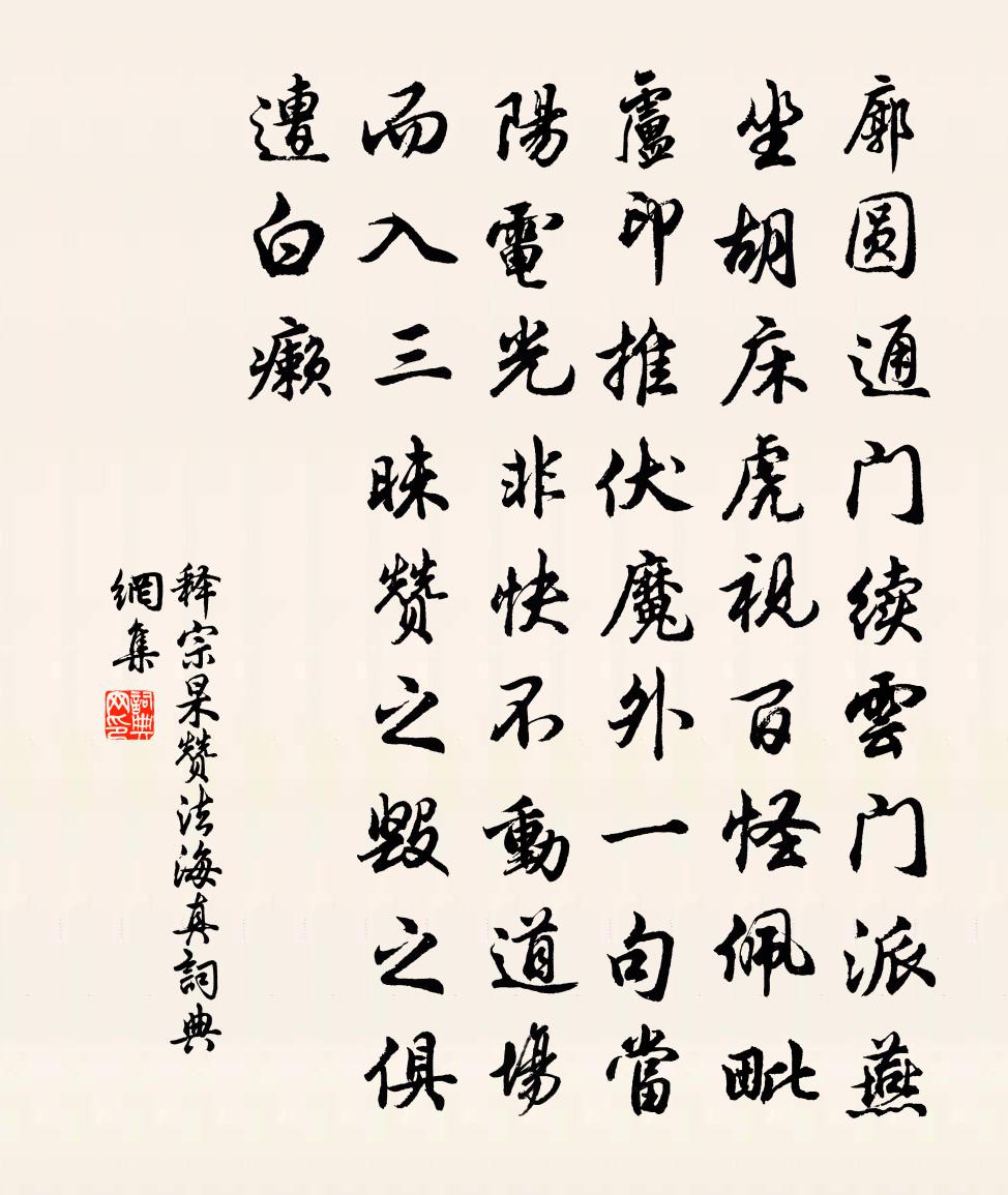 詩詞名句歷史字典書法欣賞書法字典國語詞典說文解字康熙字典古漢語字典標 題 作 者 詩 句 贊法海真作者:釋宗杲 朝代:宋代贊法海真原文廓圓通門,續雲門派。燕坐胡床,虎視百怪。佩毗盧印,推伏魔外。一句當陽,電光非快。不動道場,而入三昧。贊之毀之,俱遭白癩。詩詞問答問:贊法海真的作者是誰?答:釋宗杲問:贊法海真寫於哪個朝代?答:宋代釋宗杲贊法海真書法欣賞贊法海真書法作品詩詞推薦再和吳芾〔宋代〕坐上花光欲照人,深疑花是洛中神。已拼今日如泥醉,何必須分妄與真。鹿鳴宴席上詩二首奉送解元諸先輩汪應辰〔宋代〕嘉賓式燕正炎曦,風自南來為解圍。細聽吹笙仍鼓瑟,即看結綬卻登畿。清朝不用齎刀布,晝日偏宜著錦衣。太守閏月二日雨三日復雨寄斯遠三首趙蕃〔宋代〕夏雨多驟止,晚灑苦易乾。陰乎不能釋,膏爾殊未闌。疎疎政檐溜,浩浩忽木端。沈疴頓如失,甘寢不自安。遲明隱將峽口占二絕陳文蔚〔宋代〕小似武夷深更幽,地肋九曲一溪流。誅茆結屋雖成左,贏得青山自在游。寒食前三日野步烏龍山中石上往往多新芽手擷張栻〔宋代〕披雲得新腴,煮泉聽松風。香永味自真,不與余品同。悠然泊莫留,歸來隱疎鍾。念昔湘濱游,年年擷芳叢。遲日致政吳侍郎輓歌詞黃庶〔宋代〕荊棘二疏路,幾人同敝衣。仕塗師白髮,國老欲彤幃。遺稿詩書滿,行旌雨雪飛。陝民應淚落,不見板輿歸。衡陽道間李曾伯〔宋代〕聽徹山雞喚雨聲,東風未肯放新晴。行人莫嘆泥塗苦,且幸田家得水耕。步虛四章白玉蟾〔宋代〕玉肖長生君,錫命青華房。上念神母言,下慰天八方。八方俱紅塵,塵埃何迷茫。誰復念玉府,飛神登蒼蒼。次洪漕韻二首洪咨夔〔宋代〕塞垣擁雪髑髏寒,多少將軍博美官。莫恨知心今世鮮,須知行道古來難。時窮地狹何能舞,命好天高亦可鑽。此理入京于謙〔明代〕手帕蘑姑與線香,本資民用反為殃。清風兩袖朝天去,免得閭閻話短長。頌古一百則釋正覺〔宋代〕而今參飽似當時,脫盡廉纖到不知。任短任長休剪綴,隨高隨下自平持。家門豐儉臨時用,田地優遊信步移。三十春大閱楊冠卿〔宋代〕波澄青海無傳箭,我公獻納紆皇眷。修嚴武備選車從,天下雖安不忘戰。車如流水馬如龍,甲耀日兮旌蔽空。攙槍【南呂】金字經_增葉雲中山張可久〔元代〕增葉雲中山行萬里封侯貴,一場春夢中,破帽青鞋策短筇。逢,南山採藥翁。桃花洞,白雲千萬重。訪吾丘道士細滿庭芳 贛榆縣諸王廟黃醮罷,贈眾王處一〔元代〕海郡行緣,贛榆闡化,良因復顯諸王。謹修黃,特地召嘉祥。萬里雲收霧卷,微風息、燈燭熒煌。星壇上,步虛別朱幾仲錢時〔宋代〕古貌癯然一病翁,胸中戈甲氣如虹。子房元凱能騎馬,破賊紅旗未足功。惜春杜牧〔唐代〕花開又花落,時節暗中遷。無計延春日,何能駐少年。小叢初散蝶,高柳即聞蟬。繁艷歸何處?滿山啼杜鵑。書嘆陸游〔宋代〕只道才高始不容,無才也墮駭機中!市朝回首已陳跡,日月催人成老翁。仗馬自貪三品料,雲鵬方駕九天風。今朝奉和登驪山高頂寓目應制崔湜〔唐代〕名山何壯哉,玄覽一徘徊。御路穿林轉,旌門倚石開。煙霞肘後發,河塞掌中來。不學蓬壺遠,經年猶未回。時升見惠芍藥三朵作詩謝之二首郭印〔宋代〕婢妾紛紛只謾爭,美人後出更傾城。東君可是多情思,留取妖容作餞行。代壽韓平原劉過〔宋代〕疇昔張旃過相時,相人爭睹漢官儀。未能劖刻燕然石,不忍摩挲書錦碑。慷慨欲平千載恨,經營已嘆十年遲。要令名句推薦昨夜東風入武陽,陌頭楊柳黃金色。李白《早春寄王漢陽》 父不慈則子不孝顏之推《顏氏家訓·治家篇》 好雨知時節,當春乃發生。杜甫《春夜喜雨》 知音少,弦斷有誰聽。岳飛《小重山·昨夜寒蛩不住鳴》 草木也知愁,韶華竟白頭。曹雪芹《唐多令·柳絮》 知臣莫若於君,知子莫若於父。魏徵《隋書·帝紀·卷二》 力微休負重,言輕莫勸人。佚名《增廣賢文·上集》 思則有備,有備無患左丘明《左傳·襄公·襄公十一年》 結髮為夫妻,恩愛兩不疑。蘇武《留別妻》 梧桐雨細。漸滴作秋聲,被風驚碎。張輯《疏簾淡月·寓桂枝香秋思》
