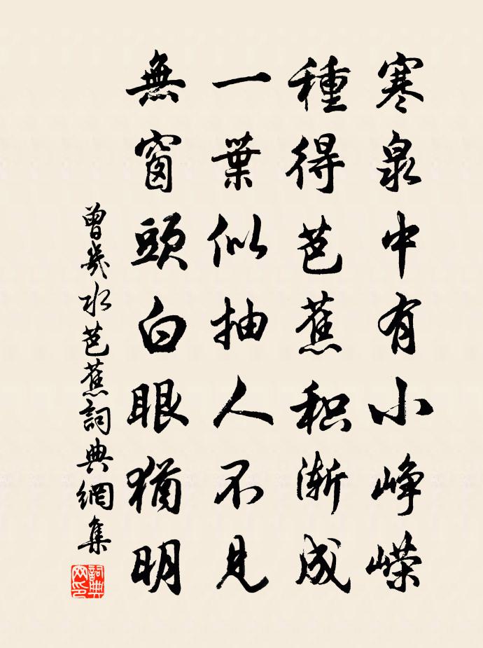 詩詞名句歷史字典書法欣賞書法字典國語詞典說文解字康熙字典古漢語字典標 題 作 者 詩 句 水芭蕉作者:曾幾 朝代:宋代水芭蕉原文寒泉中有小崢嶸,種得芭蕉積漸成。一葉似抽人不見,無窗頭白眼猶明。詩詞問答問:水芭蕉的作者是誰?答:曾幾問:水芭蕉寫於哪個朝代?答:宋代問:曾幾的名句有哪些?答:曾幾名句大全曾幾水芭蕉書法欣賞水芭蕉書法作品詩詞推薦縣中惱飲席李商隱〔唐代〕晚醉題詩贈物華,罷吟還醉忘歸家。若無江氏五色筆,爭奈河陽一縣花。次韻傅茂元二絕劉子翬〔宋代〕酒興何如畢吏部,詩情已過鮑參軍。醉吟自足了一世,肯羨飄飄出岫雲。虎丘六絕句白蓮池范成大〔宋代〕碧泓白石偃樛枝,愛水嫌風老更低。潭影中間龍影臥,一山好處沒人題。霞王周〔唐代〕拂拂生殘暉,層層如裂緋。天風剪成片,疑作仙人衣。次韻趙德麟西湖新成見懷絕句蘇軾〔宋代〕壺中春色(謂洞庭春色也。)飲中仙,騎鶴東來獨惘然。猶有趙陳同李郭,不妨同泛過湖船。邵武上官凝〔宋代〕江上臘梅村,人家半掩門。夕陽連野色,落葉破煙痕。歡喜口號黃彥平〔宋代〕從來漢將說張韓,泗水流澌浴鐵寒。待沂隋河趨洛口,卻登灞岸復長安。貶樂城尉日作張子容〔唐代〕竄謫邊窮海,川原近惡谿。有時聞虎嘯,無夜不猿啼。地暖花長發,岩高日易低。故鄉可憶處,遙指鬥牛西。山雲惠二物梅枝薛嵎〔宋代〕贈我江南一朵春,獨清滋味自相親。只愁月下推敲拙,難與梅花作主人。拜芭蕉情禪師釋正覺〔宋代〕來謁芭蕉大仰孫,要明圜相識躭源。橫山煙雨洗秋骨,掠面溪風吹暑痕。菖蒲葉瘦水石秀,枇杷樹密軒窗昏。阿誰燭影搖紅趙雍〔元代〕新綠成陰,落紅如雨春光晚。當年誰與種相思,空羨雙飛燕。寂寞幽窗孤館。念同游、芳郊秀苑。香塵隨馬,細草偶興羅隱〔唐代〕逐隊隨行二十春,曲江池畔避車塵。如今贏得將衰老,閒看人間得意人。詠水上雙白鳥張嵲〔宋代〕夜雨山水清,朝暉淨崖壁。飛來雙白鳥,未省平生識。鴐鵝謝清姿,鷗鳥慚素質。低昂信波濤,顧盼矜羽翮。鮮明城南雜題劉敞〔宋代〕盤跚不稱三公位,掩抑空妨數畝庭。只有老僧偏愛惜,倩人圖畫作書屏。長門燭王建〔唐代〕秋夜床前蠟燭微,銅壺滴盡曉鍾遲。殘光欲滅還吹著,年少宮人未睡時。句諶祜〔宋代〕歸來今夕歲雲徂,且共平安酒一壺。浩劫定中逃得過,舊愁空外看來無。隆興書堂自警三十五首陳淳〔宋代〕茫茫八極內,何莫非斯人。苟非富道義,何異彼黔民。漁家傲引(破子)洪适〔宋代〕漁父飲時花作蔭。羹魚煮蟹無它品。世代太平除酒禁。酒父飲。綠蓑藉地勝如錦。漁父醉時收釣餌。魚梁セ翅閒烏段乾木歌先秦無名〔先秦〕吾君好正。段乾木之敬。吾君好忠。段乾木之隆。鵲橋仙(和蔡子周)侯置〔宋代〕鶴髮蕭森,玉顏腴潤,養就黃芽金鼎。一區松菊老湘濱,但心遠、何妨人境。袞衣家世,鳴鸞歌舞,到了春冰消盡名句推薦以近知遠,以一知萬,以微知明。荀子《荀子·非相》 細草軟沙溪路、馬蹄輕。蘇軾《南歌子·寓意》 數人世相逢,百年歡笑,能得幾回又。何夢桂《摸魚兒·記年時人人何處》 縱然生得好皮囊,腹內原來草莽。曹雪芹《紅樓夢·第三回》 琅琅新雨洗湖天,小景六橋邊。張可久《風入松·九日》 白馬繞旌旗,悲鳴相追攀。李白《豫章行》 知章騎馬似乘船,眼花落井水底眠杜甫《飲中八仙歌》 無人收廢帳,歸馬識殘旗。張籍《沒蕃故人》 一身虜雲外,萬里胡天西。岑參《早發焉耆懷終南別業》 最愛東山晴後雪,軟紅光里涌銀山。楊萬里《最愛東山晴後雪》