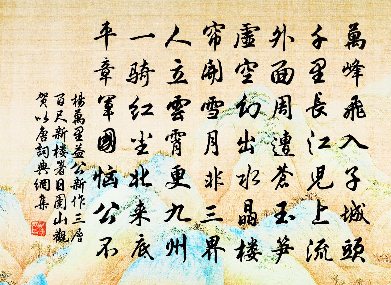 萬峰飛入子城頭,千里長江兒上流。外面周遭蒼玉筍,虛空幻出水晶樓。
