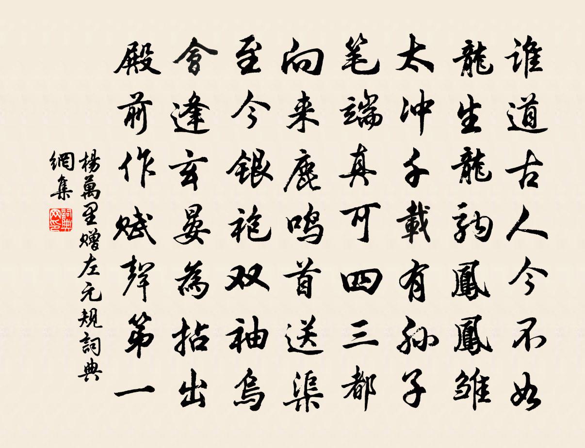 誰道古人今不如,龍生龍駒鳳鳳雛。太沖千載有孫子,筆端真可四三都。
