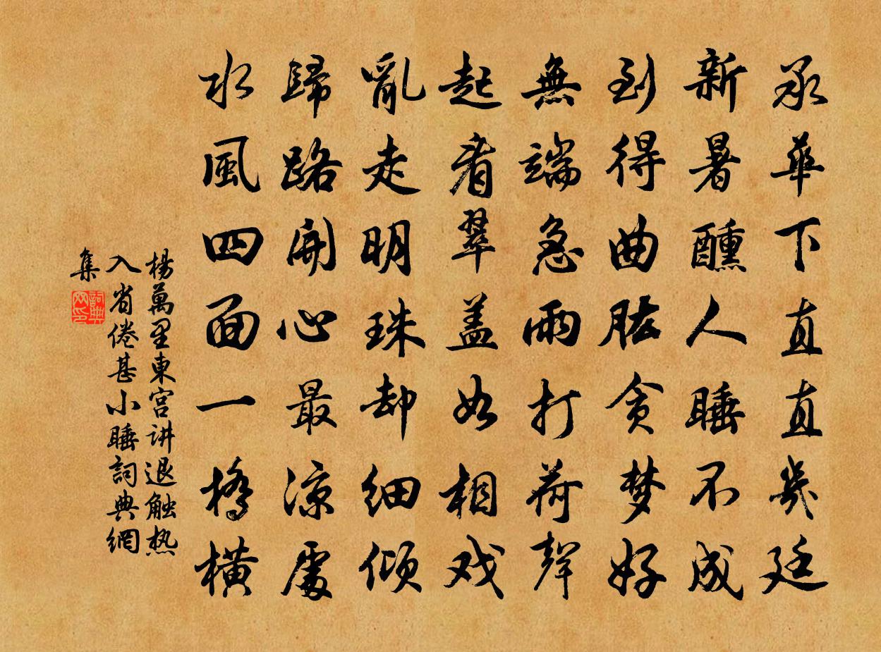 承華下直直幾廷,新暑醺人睡不成。到得曲肱貪夢好,無端急雨打荷聲。