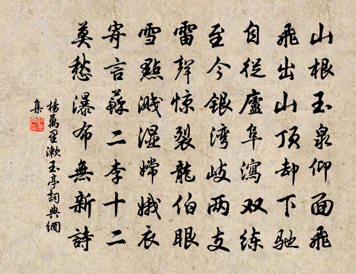山根玉泉仰面飛,飛出山頂卻下馳。自從廬阜瀉雙練,至今銀灣岐兩支。