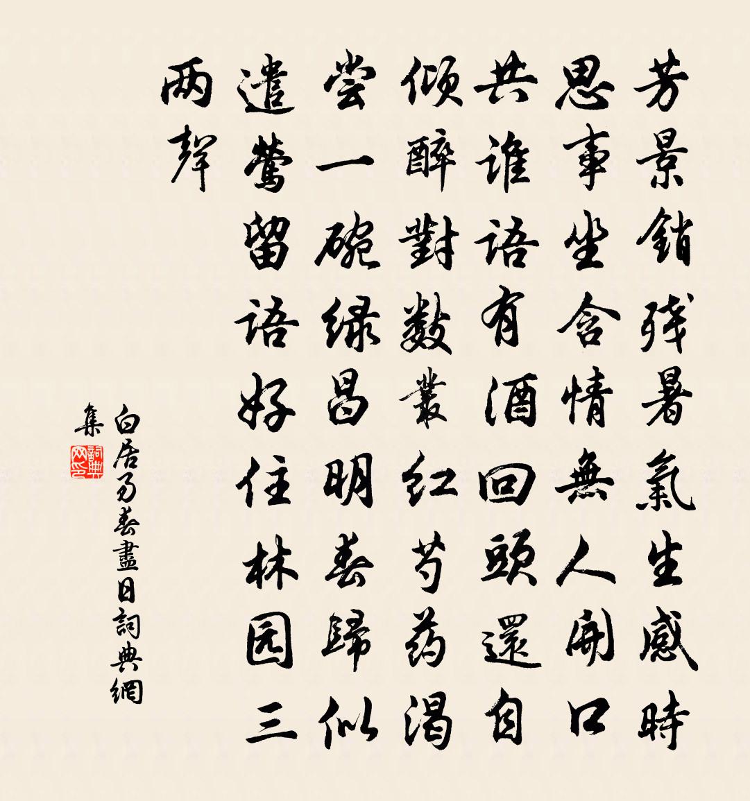 芳景銷殘暑氣生,感時思事坐含情。無人開口共誰語,有酒回頭還自傾。