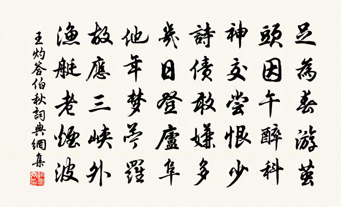 詩詞名句歷史字典書法欣賞書法字典國語詞典說文解字康熙字典古漢語字典標 題 作 者 詩 句 答伯秋作者:王灼 朝代:宋代答伯秋原文足為春遊繭,頭因午醉科。神交嘗恨少,詩債敢嫌多。幾日登廬阜,他年夢苧羅。故應三峽外,漁艇老煙波。詩詞問答問:答伯秋的作者是誰?答:王灼問:答伯秋寫於哪個朝代?答:宋代王灼答伯秋書法欣賞答伯秋書法作品詩詞推薦文宣王及其弟子贊宋高宗〔宋代〕夫孝要道,周訓群生。以綱百行,以通神明。因子侍師,答問成經。事親之實,代為儀刑。肉{左飠右噪去口}萊菔姜特立〔宋代〕玉食舊遊寧作我,藜羹故態未忘吾。爛爊萊菔甜如蜜,細點豬臕滑似酥。賢者之孝二百四十首楚孝王林同〔宋代〕一自王之國,於今二十年。了無織芥過,都是孝慈然。和蕭諮議岑離裝怨詩何遜〔南北朝〕曉河沒高棟。斜月半空庭。窗中度落葉。簾外隔飛螢。含悲下翠帳。掩泣閉金屏。昔期今未返。春草寒復青。思君瞻彼南山司馬光〔宋代〕帝白卿士,左右之臣。四方無虞,矜爾之勤。式觀且游,從予一人。於壺欲閎,於堂於陳。金石之符,翰墨之珍。觀物吟邵雍〔宋代〕畫工性狀物,經性月經年性。軒鑒性照物,立寫於前。鑒之為明,猶或未精。工出人手,平與不平。天下之平,莫青岙山張又新〔唐代〕靈海泓澄匝翠峰,昔賢心賞已成空。今朝亭館無遺制,積水滄浪一望中。小壘陸游〔宋代〕小壘荒寒外,高齋寂寞中。貧妨掛冠快,病減讀書功。橋斷春江白,雲穿夕照紅。悠然扶杖處,歲月嘆匆匆。太常引 送商參政西行楊果〔元代〕一杯聊為送征鞍。落葉滿長安。誰料一儒冠。直推上、淮陰將壇。西風旌旄,斜陽草樹,雁影入高寒。且放酒腸寬諸葛鹽井蘇軾〔宋代〕?五行水本鹹,安擇江與井。如何不相入,此意復誰省。人心固難足,物理偶相逞。猶嫌取未多,井上無閒綆。易陽早發王勃〔唐代〕飭裝侵曉月,奔策候殘星。危閣尋丹障,回梁屬翠屏。雲間迷樹影,霧裡失峰形。復此涼飆至,空山飛夜螢。次趙屯董嗣杲〔宋代〕船沿江北行,不見江邊樹。颯颯蘆葦空,棲雁泣如訴。波濤極衝撞,沙岸已頹仆。東傍趙屯來,結茅是誰住。檐破種石菖蒲趙孟堅〔宋代〕少年眼力健觀書,卷裹千言一覽無。官事簿書昏惘惘,效尤石上種菖蒲。病中止酒楊萬里〔宋代〕平生萬事輕,惟以酒自娛。當其愛酒時,一日不可無。老來因屬疾,不飲五月余。客飲我不羨,而況逢麴車。見杯句陶弼〔宋代〕荔枝林下千金絡,菡萏池中十畫船。蝶戀花趙長卿〔宋代〕天淨姮娥初整駕。桂魄蟾輝,來趁清和夜。費盡丹青無計畫。纖纖側向疏桐掛。人在扶疏桐影下。耳畔輕輕,細說會南禪游鄒氏園和知丞韻黃榦〔宋代〕杯酒聯翩臭味同,橫枝疎影費天工。千林落木人煙絕,獨倚斜陽對晚風。自蒲赴湖早行作晁補之〔宋代〕小隱幽情薄宦身,五更騎馬壽安塵。春如流水行隨客,曉與青山氣逼人。報國丹心千載事,對花霜鬢一番新。秦吳讀文丞相吟嘯稿黃庚〔宋代〕垂垂大廈顛,一木支無力。精衛悲滄海,銅駝化荊棘。英風傲幾砧,濱死猶鐵脊。血灑沙場秋,寒日赤為碧。惟留畫魚歌(湖州道中作。)蘇軾〔宋代〕天寒水落魚在泥,短鉤畫水如耕犁。渚蒲拔折藻荇亂,此意豈復遺鰍鯢。偶然信手皆虛擊,本不辭勞幾萬一。一魚名句推薦雞鳴紫陌曙光寒,鶯囀皇州春色闌。岑參《奉和中書舍人賈至早朝大明宮》 但屈指西風幾時來,又不道流年暗中偷換。蘇軾《洞仙歌·冰肌玉骨》 澗影見松竹,潭香聞芰荷。孟浩然《夏日浮舟過陳大水亭 / 浮舟過滕逸人別業》 傷心秦漢,生民塗炭,讀書人一聲長嘆。張可久《賣花聲·懷古》 天道遠,人道邇,非所及也,何以知之?左丘明《左傳·昭公·昭公十八年》 如何亡國恨,盡在大江東!屈大均《秣陵》 故知之始己,自知而後知人也。王詡《鬼谷子·反應》 最愛湖東行不足,綠楊陰裏白沙堤。白居易《錢塘湖春行》 識時務者為俊傑,昧先幾者非明哲。程登吉《幼學瓊林·卷三·人事》 浩蕩離愁白日斜,吟鞭東指即天涯。龔自珍《己亥雜詩·其五》