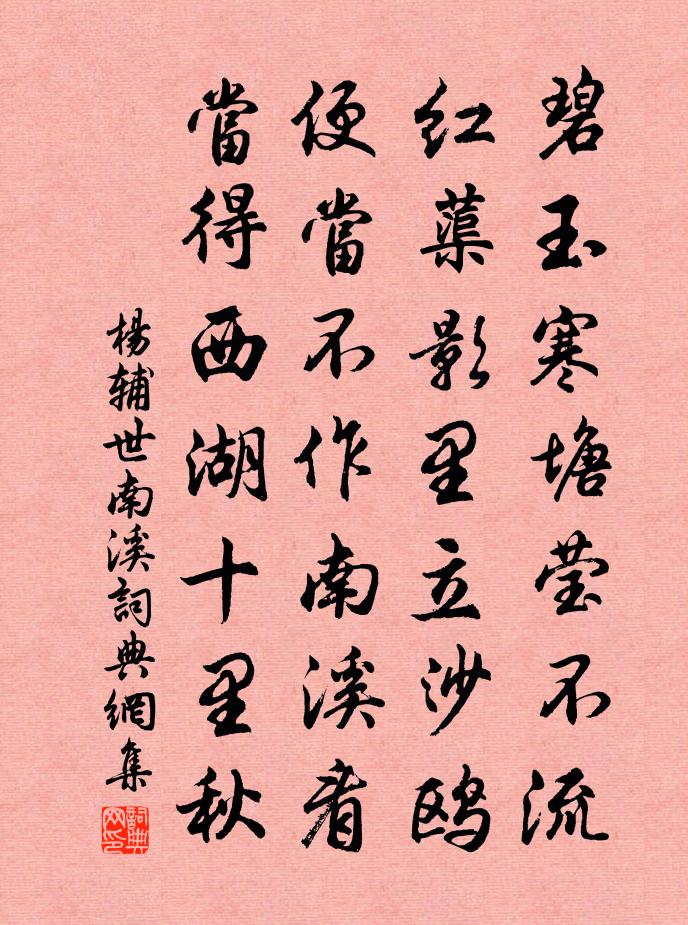 詩詞名句歷史字典書法欣賞書法字典國語詞典說文解字康熙字典古漢語字典標 題 作 者 詩 句 南溪作者:楊輔世 朝代:宋代南溪原文碧玉寒塘瑩不流,紅蕖影里立沙鷗。便當不作南溪看,當得西湖十里秋。詩詞問答問:南溪的作者是誰?答:楊輔世問:南溪寫於哪個朝代?答:宋代楊輔世南溪書法欣賞南溪書法作品詩詞推薦阮郎歸晁補之〔宋代〕小樓獨上暮鍾時。紅霞樓外飛。煙中遠鳥一雙歸。城門燈火微。橫短吹,傍危梯。冰輪涌海遲。天涯幽恨有誰知。貞女篇曾豐〔宋代〕女生願有家,奴嫁理所宜。出自父母命,奴豈敢固違。既許吳氏子,又許蔡氏兒。但有一女嫁,乃受兩聘儀。為奴燕陸游〔宋代〕初見梁間牖戶新,銜泥已復哺雛頻。只愁去遠歸來晚,不怕飛低打著人。贈薛戴李端〔唐代〕曉霧忽為霜,寒蟬還罷響。行人在長道,日暮多歸想。射策本何功,名登絳帳中。遂矜丘室重,不料阮途窮。交結圓池顧逢〔宋代〕一片水環璧,分明鏡可窺。游魚吹白沫,浴鷺撲清漪。有月有星夜,無雲無雨時。倚欄相對處,如看渾天儀。題汪水雲詩卷秦嗣彭〔宋代〕禾黍興悲兩鬢皤,千年荊棘幾銅駝。義熙處士流風遠,天寶詩人舊恨多。雨露又新周草木,煙塵空想漢山河。庾郎和樂天誚失婢榜者劉禹錫〔唐代〕把鏡朝猶在,添香夜不歸。鴛鴦拂瓦去,鸚鵡透籠飛。不逐張公子,即隨劉武威。新知正相樂,從此脫青衣。偈頌七十一首釋了惠〔宋代〕虎生三子尾吒沙,咂舌垂涎開爪牙。但見威風起岩竇,不知月照幾千家。句周必正〔宋代〕八月分圓二十年。和程德遠二首王之道〔宋代〕寓問發函舊,論交傾蓋新。幾年瞻翰墨,今日侍光塵。禦侮煩驍將,扶顛倚大臣。相逢更可恨,對酒灑陶巾。次韻賓暘齋中獨坐五首方回〔宋代〕慣忍飢窮即聖賢,松心玉質未貞堅。苦無亂己庸何憾,斷不逢人便乞憐。龜鶴算高終老死,星辰位定有推遷。味公木蘭花慢佚名〔宋代〕望陽生漸布,見梅萼、暖初回。向雪裡、一枝才苞,素艷已占春台。煙籠半含粉面,透清香、暗觸滿襟懷。可惜前挽范千之二首陳著〔宋代〕翛然形早蛻,遺痛在家人。手澤泣孤子,篋封悲二親。菟裘行計舊,牛隴窆銘新。我亦知君者,酸心唐隩春。重贈吳國賓邊貢〔明代〕漢江明月照歸人,萬里秋風一葉身。休把客衣輕浣濯,此中猶有帝京塵。感遇十首次韻和黃著作魯直以將窮山海跡勝絕晁補之〔宋代〕倉鶊知陽春,喬木聲關關。白駒不食苗,奈此空谷寒。昔有丹徒士,檳榔貯金盤。富貴懷隱憂,無寧歸故山。上平江李侍郎生辰仲並〔宋代〕昔襦今褲雄藩守,佩玉峨冠近侍臣。十萬人家等蒙潤,三千風月政當仁。仙姿照坐桃如許,冷艷當檐梅一新。願比宮詞宋白〔宋代〕去年因戲賜霓裳,權戴金冠奉玉皇。久著淡黃心覺大厭,春來不敢便紅妝。和杜叔高相約湖上韻徐僑〔宋代〕湖上朝市兩忘言,勝趣何須頻出門。要並雪岩尋酒伴,更從梅隱覓詩魂。風低雁漵數行影,煙障鳧波幾疊痕。此意秋懷三十六首邵雍〔宋代〕七月夜初長,星鬥爭煌煌。庭除經小雨,枕簟生微涼。照物無遁形,虛鑒自有光。照事無遁情,虛心自有常。訴衷情(端午宿合路)姜夔〔宋代〕石榴一樹浸溪紅。零落小橋東。五日淒涼心事,山雨打船篷。諳世味,楚人弓。莫忡忡。白頭行客,不採苹花,孤名句推薦愁絕行人天易暮,行向鷓鴣聲里住納蘭性德《菊花新·用韻送張見陽令江華》 秋色到空閨,夜掃梧桐葉。夏完淳《卜運算元·秋色到空閨》 上有愁思婦,悲嘆有餘哀。曹植《明月上高樓》 多才之士,才儲八斗;博學之德,學富五車。程登吉《幼學瓊林·卷四·文事》 自有多情處,明月掛南樓。米芾《水調歌頭·中秋》 世事茫茫難自料,春愁黯黯獨成眠。韋應物《寄李儋元錫》 南浦淒淒別,西風裊裊秋。白居易《南浦別》 年年春日異鄉悲,杜曲黃鶯可得知。韋莊《江外思鄉》 芝蘭生於深林,不以無人而不芳,君子修道立德,不謂窮困而改節。佚名《孔子家語·在厄》 不知天上宮闕,今夕是何年。蘇軾《水調歌頭·丙辰中秋》