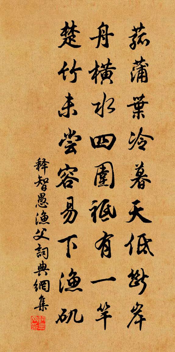 詩詞名句歷史字典書法欣賞書法字典國語詞典說文解字康熙字典古漢語字典標 題 作 者 詩 句 漁父作者:釋智愚 朝代:宋代漁父原文菰蒲葉冷暮天低,斷岸舟橫水四圍。祗有一竿楚竹,未嘗容易下漁磯。詩詞問答問:漁父的作者是誰?答:釋智愚問:漁父寫於哪個朝代?答:宋代釋智愚漁父書法欣賞漁父書法作品詩詞推薦建溪十詠其八仙人洲楊億〔宋代〕寒潭吞別派,孤嶼屹中流。昔有驂鸞客,因名墜馬洲。洪波長赴海,碧樹幾經秋。城郭何年變,空聞鶴語愁。雜興張鎡〔宋代〕山川萬代留,人物有時盡。慷慨羊叔子,登臨重嗟憫。功名垂橐來,老去載倉囷。焉有利在民,轉盼聲即泯。非真尋梅趙時韶〔宋代〕春在溪橋第幾家,槎牙老樹竹籬遮。再三辨認枝頭雪,萬一無香恐未花。早春十絕呈石湖陳造〔宋代〕虎丘僧宇瞰坡陀,幾許香軿載酒過。遊子花驄煙外駐,麗人塵襪水邊多。淳熙四年二月既望靜江守臣張某奉詔勸農於郊張栻〔宋代〕俾一其心,服我訓言。擊鼓坎坎,自古有年。春暮戴復古〔宋代〕捻指過三月,又當春夏交。花殘蜂課蜜,林茂鳥營巢。芳草生青靄,新篁長綠梢。風騷將斷絕,誰有續弦膠。漫成二首杜甫〔唐代〕野日荒荒白,春流泯泯清。渚蒲隨地有,村徑逐門成。只作披衣慣,常從漉酒生。眼前無俗物,多病也身輕。江皋已亥雜詩 273龔自珍〔清代〕欲求縹緲反幽深,悔殺前翻拂袖心。難學冥鴻不回首,長天飛過又遺音。言志釋文珦〔宋代〕吾生癖而慵,煙霞成痼疾。千山復萬山,曾不厭深密。廣廈非所睎,分甘死蓬蓽。或問予如何,高明鬼瞰室。七十翁吟七言十絕方回〔宋代〕一河綠水小樓前,八十老翁猶駕船。七十老翁幸靜坐,有書不讀真可憐。送沈左司從汪參政分省高啟〔明代〕重臣分陝去台端,賓從威儀盡漢官。四塞河山歸版籍,百年父老見衣冠。函關月落聽雞度,華岳雲開立馬看。知爾詩一首王軫〔宋代〕南篇司馬青衫濕,北句郎官白髮生。堪與江黃永傳唱,離騷經外此歌聲。奉和汴州令狐令公二十二韻(同用淹字)白居易〔唐代〕客有東征者,夷門一落帆。二年方得到,五日未為淹。[相府領鎮隔年,居易方到。既到,陪奉游宴,凡經五日。至潁州訪故老李曾伯〔宋代〕去汴五百里,通淮十八村。荒原王翦骨,廢井伍奢魂。舊築河南塢,新城塞北屯。百年上遺愛在,六一故碑存。李翰林徐夤〔唐代〕謫下三清列八仙,獲調羹鼎侍龍顏。吟開鎖闥窺天近,醉臥金鑾待詔閒。舊隱不歸劉備國,旅魂長寄謝公山。遺編首尾吟邵雍〔宋代〕堯夫非是愛吟詩,詩是堯夫何所為。睡思動時親瓮牖,幽情發處旁盆池。尋芳更用小車去,得句仍將大筆麾。餘事己酉亂後寄常州使君侄汪藻〔宋代〕草草官軍渡,悠悠敵騎旋。方嘗勾踐膽,已補女媧天。諸將爭陰拱,蒼生忍倒懸。乾坤滿群盜,何日是歸年!永城使風盧象〔唐代〕長風起秋色,細雨含落暉。夕鳥向林去,晚帆相逐飛。蟲聲出亂草,水氣薄行衣。一別故鄉道,悠悠今始歸。東山寺白居易〔唐代〕直上青霄望八都,白雲影里月輪孤。茫茫宇宙人無數,幾個男兒是丈夫。 廖巴州輓詩魏了翁〔宋代〕區區白屋一生酸,落落朱轓兩鬢班,篆水秋成蒼氏富,字江春暖玉人閒。二千石祿人常有,九秩年華天所慳。手種名句推薦得歡當作樂,斗酒聚比鄰。陶淵明《雜詩·人生無根蒂》 偏皎潔,知他多少,陰晴圓缺。徐有貞《中秋月·中秋月》 故國雖大,好戰必亡;天下雖安,忘戰必危。姜子牙《司馬法·仁本》 天下稍安,尤須兢慎,若便驕逸,必至喪敗。吳兢《貞觀政要·卷一·論政體》 留春不住,費盡鶯兒語。王安國《清平樂·春晚》 溪谷少人民,雪落何霏霏!曹操《苦寒行》 煙橫水際,映帶幾點歸鴉,東風銷盡龍沙雪。賀鑄《石州引·薄雨初寒》 他鄉逢七夕,旅館益羈愁。孟浩然《他鄉七夕》 功名祗向馬上取,真是英雄一丈夫岑參《送李副使赴磧西官軍》 古剎疏鍾度,遙嵐破月懸。李賀《南園十三首》