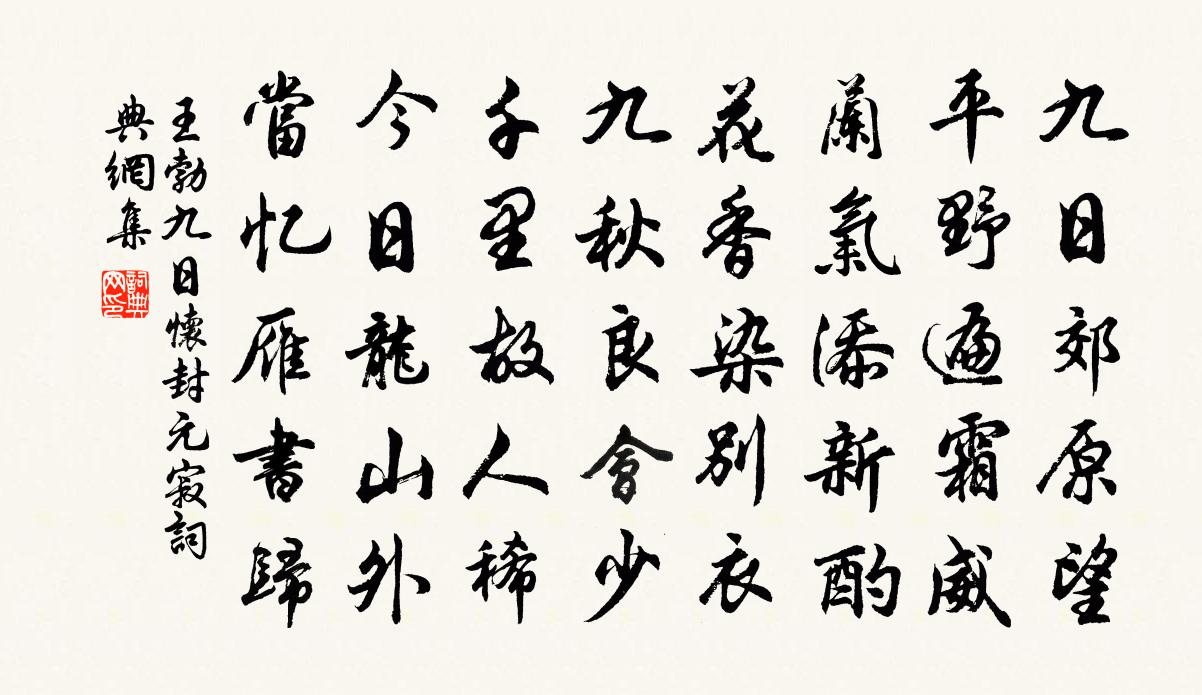 九日郊原望,平野遍霜威。蘭氣添新酌,花香染別衣。