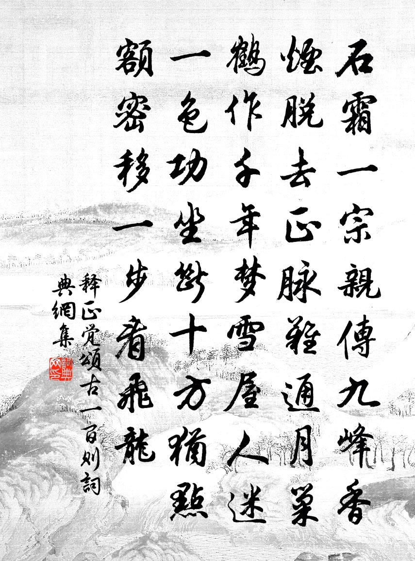 詩詞名句歷史字典書法欣賞書法字典國語詞典說文解字康熙字典古漢語字典標 題 作 者 詩 句 頌古一百則作者:釋正覺 朝代:宋代頌古一百則原文石霜一宗,親傳九峰。香菸脫去,正脈難通。月巢鶴作千年夢,雪屋人迷一色功。坐斷十方猶點額,密移一步看飛龍。詩詞問答問:頌古一百則的作者是誰?答:釋正覺問:頌古一百則寫於哪個朝代?答:宋代釋正覺頌古一百則書法欣賞頌古一百則書法作品詩詞推薦彈鋏歌先秦無名〔先秦〕長鋏歸來乎食無魚。長鋏歸來乎出無車。長鋏歸來乎無以為家。呈屯田強至〔宋代〕溪水日夜落,稍稍露沙面。經旬更不雨,深處亦成澱。巨篙架空航,澀若泝淺澱。況乃載百指,數纜安可縴。念此瞎堂三句釋慧遠〔宋代〕我有截水停輪句,人天路絕信來稀。等閒靠卻過閒仗,門裹深沙眼{鷯左下換目右換皮}{嗤口換目}。浣沙溪方千里〔宋代〕楊柳依依窣地垂。麴塵波影漸平池。霏微細雨出魚兒。先自別來容易瘦,那堪春去不勝悲。腰肢寬盡縷金衣。送趙長史歸閩川齊己〔唐代〕荊門與閩越,關戍隔三千。風雪揚帆去,台隍指海邊。客情消旅火,王化似堯年。莫失春回約,江城穀雨前。次韻臞山順處齋艾可翁〔宋代〕喪亂逾三載,孤高配九秋。日方行北陸,江不改東流。詩入中年老,官逢世變休。仲將頭雪白,搖落更多愁。扈從登封告成頌宋之問〔唐代〕復道開行殿,鉤陳列禁兵。和風吹鼓角,佳氣動旗旌。後騎回天苑,前山入御營。萬方俱下拜,相與樂昇平。和陶時運四首蘇軾〔宋代〕旦朝丁丁,誰款我廬。子孫遠至,笑語紛如。剪{髻下吉換米}垂髫,覆此瓠壺。三年一夢,乃復見余。途中秋晚送友人歸江南崔塗〔唐代〕又指煙波算路岐,此生多是厭羈離。正逢搖落仍須別,不待登臨已合悲。里巷半空兵過後,水雲初冷雁來時。扁舟奉和襲美酒中十詠酒床陸龜蒙〔唐代〕六尺樣何奇,溪邊濯來潔。糟深貯方半,石重流還咽。閒移秋病可,偶聽寒夢缺。往往枕眠時,自疑陶靖節。矚物舒岳祥〔宋代〕灼灼日及華,朝榮夕已墜。牽牛泫碧露,見晛歘憔悴。拒霜舒曉紅,惟愁夕陰至。蜻蛚庇其根,亦復多愁思。容色梅花七律張道洽〔宋代〕落盡精英宇宙荒,天將清白付幽芳。萬花場裡春無色,獨樹橋邊月有香。怪怪奇奇依水石,瀟瀟灑灑帶冰霜。玉膚陽台曲楊維楨〔元代〕月落望夫山,高台十二鬟。楚宮多妒女,雲雨夢中還。上元放二雉司空圖〔唐代〕嬰網雖皆困,搴籠喜共歸。無心期爾報,相見莫驚飛。四時田園雜興范成大〔宋代〕騎吹東來里巷喧,行春車馬鬧如煙。系牛莫系門前路,移系門西系碡邊。次韻黃貳車三絕句史彌寧〔宋代〕了卻文書可是痴,幅巾行散任風吹。揮毫颯颯詩驚雨,灑面蕭蕭雨送詩。更漏子王沂孫〔宋代〕日銜山,山帶雪。笛弄晚風殘月。湘夢斷,楚魂迷。金河秋雁飛。別離心,思憶淚。錦帶已傷憔悴。蛩韻急,杵聲寄題林上舍真意堂用其元和淵明韻二首戴栩〔宋代〕趨贏厭市寂,洗聽嫌瓢喧。襟素倘相越,取捨誰為偏。卓哉靖節翁,人境得仙山。有真諒無贗,無往豈有還。唯彼感皇恩(錢參政)甄良友〔宋代〕華表鶴重來,嘉禾合穗。天命真人救斯世。故仙子來佐,中興之際。這回真是個,風雲會。天水慶源,錢塘潮勢。初冬夜宴陸游〔宋代〕絲管紛紛燭滿堂,梟盧擲罷夜飛觴。帷犀風定歌雲暖,香獸煙濃漏箭長。泛菊已成前日夢,探梅又續去年狂。醉歸名句推薦渡江天馬南來,幾人真是經綸手。辛棄疾《水龍吟·甲辰歲壽韓南澗尚書》 之子歸窮泉,重壤永幽隔。潘安《悼亡詩三首》 北客翩然,壯心偏感,年華將暮。朱敦儒《水龍吟·放船千里凌波去》 誰問旗亭,美酒斗十千。賀鑄《行路難·縛虎手》 荻花秋,瀟湘夜,橘洲佳景如屏畫。李珣《漁歌子·荻花秋》 藍橋何處覓雲英。只有多情流水、伴人行。蘇軾《南歌子·寓意》 以人言善我,必以人言罪我。韓非及後人《韓非子·說林上》 葉開隨足影,花多助重條。陰鏗《雪裡梅花詩》 春雨樓頭尺八簫,何時歸看浙江潮?蘇曼殊《本事詩十首·選二》 但夢想、一枝瀟灑,黃昏斜照水周邦彥《花犯·小石梅花》