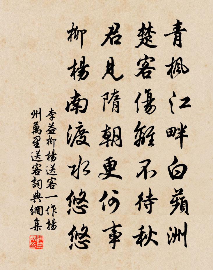 青楓江畔白蘋洲,楚客傷離不待秋。君見隋朝更何事,柳楊南渡水悠悠。