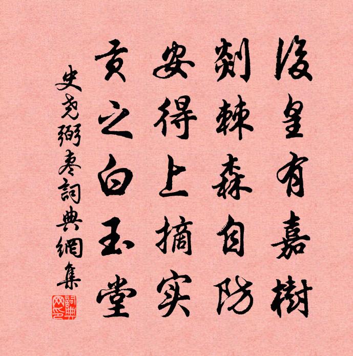 詩詞名句歷史字典書法欣賞書法字典國語詞典說文解字康熙字典古漢語字典標 題 作 者 詩 句 棗作者:史堯弼 朝代:宋代棗原文後皇有嘉樹,剡棘森自防。安得上摘實,貢之白玉堂。詩詞問答問:棗的作者是誰?答:史堯弼問:棗寫於哪個朝代?答:宋代史堯弼棗書法欣賞棗書法作品詩詞推薦占春亭即事三首吳潛〔宋代〕薄霧輕煙柳際浮,階前細草綠初抽。年年春事年年恨,一擔擔來是白頭。贈潘齋郎宋祁〔宋代〕吟塘春草奪袍青,蘭玉仙姿出謝庭。刻羽彫章傳雪市,煎波麗賦淹雲溟。逢衣四座開賓榻,采服千金獻壽醽。漢殿送洛南周寺丞梅堯臣〔宋代〕將去洛南宰,日聞庭下松。亂山歸四隱,舊墅隔三峰。狹谷車能入,春林雨易逢。地多椒與漆,貨必厚於農。無俗念 竹丘處機〔元代〕虛心窗翠竹,稟窗天然、一窗氣生來清獨。月下風前堪賞玩,嘲謔令人無俗。嫩葉蕭騷,隆冬掩映,秀出千林木。東樓曉白居易〔唐代〕脈脈復脈脈,東樓無宿客。城暗雲霧多,峽深田地窄。宵燈尚留焰,晨禽初展翮。欲知山高低,不見東方白。雪寒圍爐小集范成大〔宋代〕席簾紙閣護香濃,說有談空愛燭紅。高飣膻根澆杏酪,旋融雪汁煮松風。康年氣象冬三白,浮世功名酒一中。無事草堂成即事二首喻良能〔宋代〕三年留滯江之南,歸來故園寢亦甘。經理草堂唐寶應,耘耡荒徑晉陶潛。寸心自昔似南八,雙鬢只今如謝三。手栽依韻和劉十秋霖梅堯臣〔宋代〕秋草更綠秋林衰,長安遊客未成衣。淒淒斗欲變寒色,一夜獨語看燈輝。鄱陽皮錄事楊億〔宋代〕松陵遺集占風騷,故國田園沒海濤。三世青氈傳舊物,十年黃綬歡徒勞。謝塘春草侵魂夢,潘縣秋霜入鬢毛。鄱水泊岳陽城下 / 泊岳陽樓下杜甫〔唐代〕江國逾千里,山城僅百層。岸風翻夕浪,舟雪灑寒燈。留滯才難盡,艱危氣益增。圖南未可料,變化有鯤鵬。送黃給事帥湖南釋寶曇〔宋代〕西山束觀閒,事豈止載筆。為郎幾黃昏,竟亦坐無術。平生瀝肝膽,辛苦忘蔗汁。一飲不下咽,再思令人瘠。向來屢至紅雲亭並苦無酒方回〔宋代〕小閣虛窗手自推,碧池天淨鏡奩開。深涵樹影無風動,驟唼魚聲似雨來。六月今年全未熱,一詩吾輩易為才。欲呼明堂禮成白玉蟾〔宋代〕豐年有高廩,宗祀拜明堂。玉輅迎閶闔,銀蟾躍未央。虎賁森鹵簿,龍袞照旂常。寶幄燃紅炬,璇霄降紫皇。竹宮聞箏作劉子翬〔宋代〕月高夜鳴箏,聲從綺窗來。隨風更迢遞,縈雲暫徘徊。餘音若可玩,繁弦互相催。不見理箏人,遙知心所懷。寧悲閱四家詩卷戴復古〔宋代〕閱盡四家詩卷子,自然優劣在其中。石龜野鶴心相合,菊磵花翁道不同。鳴鳳翱翔上霄漢,亂蟬蕭瑟度秋風。一篇寄申州盧拱使君楊巨源〔唐代〕領郡仍聞總虎貔,致身還是見男兒。小船隔水催桃葉。大鼓當風舞柘枝。酒坐微酣諸客倒,球場慢撥幾人隨。從來少年游·重陽過後晏殊〔宋代〕重陽過後,西風漸緊,庭樹葉紛紛。朱闌向曉,芙蓉妖艷,特地斗芳新。 霜前月下,斜紅淡蕊,明媚欲回春。莫和陶淵明歸田園居六詩陳造〔宋代〕良驥馳康莊,驤首輕韅鞅。筋骨倏謝昔,得無伏櫪想。自審涎顙質,蹀躞欲奚往。如我合漁樵,奪煬忘幼長。資身北邙山汪元量〔宋代〕芒芒北邙山,高墳盡無主。惟有石麒麟,相向立秋雨。七歲作陸軫〔宋代〕昔時家住海三山,日月宮中屢往還。無事引來天女笑,謫來為吏在人間。名句推薦被酒莫驚春睡重,賭書消得潑茶香,當時只道是尋常。納蘭性德《浣溪沙·誰念西風獨自涼》 報君黃金台上意,提攜玉龍為君死!李賀《雁門太守行》 春到南樓雪盡。驚動燈期花信。万俟詠《昭君怨·春到南樓雪盡》 明朝且做莫思量,如何過得今宵去。周紫芝《踏莎行·情似遊絲》 可憐今夕月,向何處、去悠悠。辛棄疾《木蘭花慢·中秋飲酒將旦客謂前人詩詞有賦待月無送月者因用天問體賦》 如何同枝葉,各自有枯榮李白《樹中草》 倉稟無宿儲,徭役猶未已。韋應物《觀田家》 松下問童子,言師採藥去。賈島《尋隱者不遇 / 孫革訪羊尊師詩》 雪月最相宜,梅雪都清絕。張孝祥《卜運算元·雪月最相宜》 憐不可存,憐人者無證其忠。友宜重懲,援友者惟其害。來俊臣《羅織經·問罪卷第十》
