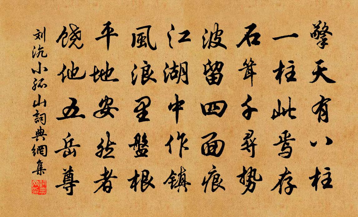 詩詞名句歷史字典書法欣賞書法字典國語詞典說文解字康熙字典古漢語字典標 題 作 者 詩 句 小孤山作者:劉沆 朝代:宋代小孤山原文擎天有八柱,一柱此焉存。石聳千尋勢,波留四面痕。江湖中作鎮,風浪里盤根。平地安然者,饒他五嶽尊。詩詞問答問:小孤山的作者是誰?答:劉沆問:小孤山寫於哪個朝代?答:宋代劉沆小孤山書法欣賞小孤山書法作品詩詞推薦代鍾答徐鉉〔唐代〕一幅輕綃寄海濱,越姑長感昔時恩。欲知別後情多少,點點憑君看淚痕。頌古八首釋道印〔宋代〕推倒扶起,覿面千里。唯小釋迦,風前按指。直饒海印發光,也是雪峰道底。遍界是文殊,遍界是慈氏。賢者之孝二百四十首李刈林同〔宋代〕俱以文章顯,無慚孝謹稱。弟兄同一集,華萼著嘉名。【中呂】陽春曲_墨磨北海烏張弘范〔元代〕墨磨北海烏龍角,筆蘸南山紫兔毫。花箋鋪展硯台高,詩氣豪,憑換紫羅袍!石榴子露顏回齒,菡萏花含月女姿。和梁次張謝得酒見寄四首吳芾〔宋代〕傳得仙家不老方,釀成春色瓮頭香。一樽聊爾資杯酌,爭似相攜入醉鄉。招里巷友和韻李曾伯〔宋代〕小有家林適,歸來已恨遲。引杯懷楚舞,飽飯和陶詩。慷慨多新語,綢繆半舊知。夜深橋雪滑,亟命短筇支。樓上曲張元乾〔宋代〕樓外夕陽明遠水。樓中人倚東風裡。何事有情怨別離。低鬟背立君應知。東望雲山君去路。斷腸迢迢盡愁處。明朝游南台閩粵王廟范梈〔元代〕海角釣龍人杳杳,雲間待雁路迢迢。若為借得山頭石,每到高秋坐看潮。偈頌二十五釋智遇〔宋代〕無義漢,誰識你。口吃耳聾,驢拗到度。一氣轉一藏,是非終難洗。 * 下衰,污人唇齒。題心遠別墅張煒〔宋代〕聞說藏修所,憑已更接溪。百花攙序發,萬竹剪雲齊。地勝塵無染,廛居俗正迷。二王詩絕唱,何用我留題。舟中晚望二首楊萬里〔宋代〕河岸前頭松樹林,樹林盡處見行人。行人又被山遮斷,風颭酒家青布巾。奉和月夜聽軍樂應詔詩薛道衡〔隋代〕旌門臨古堞。徼道度深隍。月冷疑秋夜。山寒落夏霜。遙空澄暮色。清景散餘光。笳聲喧隴水。鼓曲噪漁陽。沉鬱送李滁州白居易〔唐代〕君於覺路深留意,我亦禪門薄致功。未悟病時須去病,已知空後莫依空。白衣臥疾嵩山下,皂蓋行春楚水東。誰道次韻勿齋蠟梅周端臣〔宋代〕不懷南枝斗粉光,品題應合讓蘇黃。融成蜂蠟千葩秀,散作龍涎幾陣香。立悟瞿曇真面目,坐忘姑射舊梳妝。好風種蔬陸游〔宋代〕老翁老去尚何言,除卻翻書即灌園。處處移蔬乘小雨,時時拾礫繞頹垣。江鄉地暖根常茂,旱歲蟲生葉未繁。四壁上元夫人楊維楨〔元代〕仙人在世間,招之還可來。何用三韓外,樓船言蓬萊。颯然精爽合,偕入東華台。怖我以蛇虎,令我心死灰。叔卿小笛弄(一作小弄蓮)陳陶〔唐代〕一尺玲瓏握中翠,仙娥月浦呼龍子。五夜流珠粲夢卿,九青鸞倚洪崖醉。丹穴飢兒笑風雨,媧皇碧玉星星語。蛇蠍襄陽早秋寄岑侍郎崔湜〔唐代〕江城秋氣早,旭旦坐南闈。落葉驚衰鬢,清霜換旅衣。時來矜早達,事往覺前非。體道徒推理,防身終昧微。故人暮春自南台丞再除給事中(仍是本廳几榻杖履宛然如舊)薛存誠〔唐代〕再入青鎖闈,忝官誠自非。拂塵驚物在,開戶似僧歸。積草漸無徑,殘花猶灑衣。禁垣偏日近,行坐是恩輝。山中作胡仲參〔宋代〕村居便野性,況復是清秋。為愛山間好,因成旬日留。林深喧鳥雀,露重滴松楸。昨夜新寒入,篝燈覆弊裘。名句推薦池上碧苔三四點,葉底黃鸝一兩聲。晏殊《破陣子·春景》 亭亭山上松,瑟瑟谷中風。劉楨《贈從弟》 大家做事尋常,小家做事慌張。佚名《增廣賢文·上集》 取酒須勤醉,鄉關不可思。司馬光《送張寺丞覲知富順監》 芳草無情,更在斜陽外范仲淹《蘇幕遮·懷舊》 早知恁么。悔當初、不把雕鞍鎖。柳永《定風波·自春來》 數回細寫愁仍破,萬顆勻圓訝許同杜甫《野人送朱櫻》 造物無言卻有情,每於寒盡覺春生。張維屏《新雷》 卜以決疑,不疑何卜。李汝珍《鏡花緣·第十二回》 花果山福地,水簾洞洞天。吳承恩《西遊記·第一回》