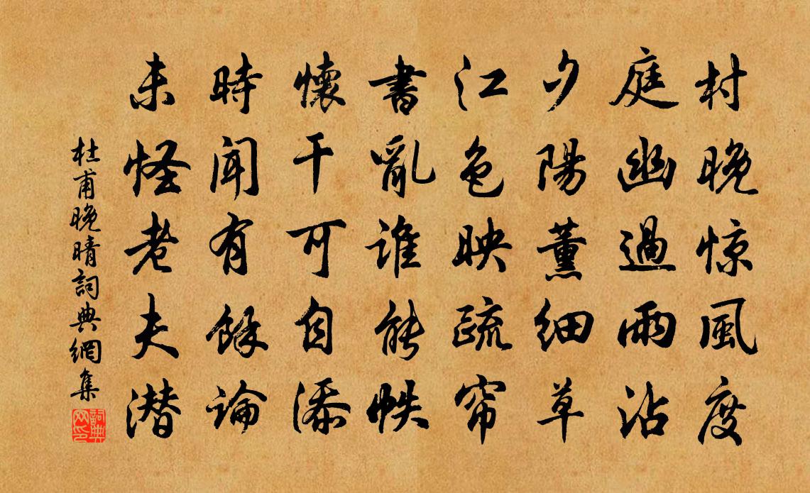 村晚驚風度,庭幽過雨沾。夕陽薰細草,江色映疏簾。