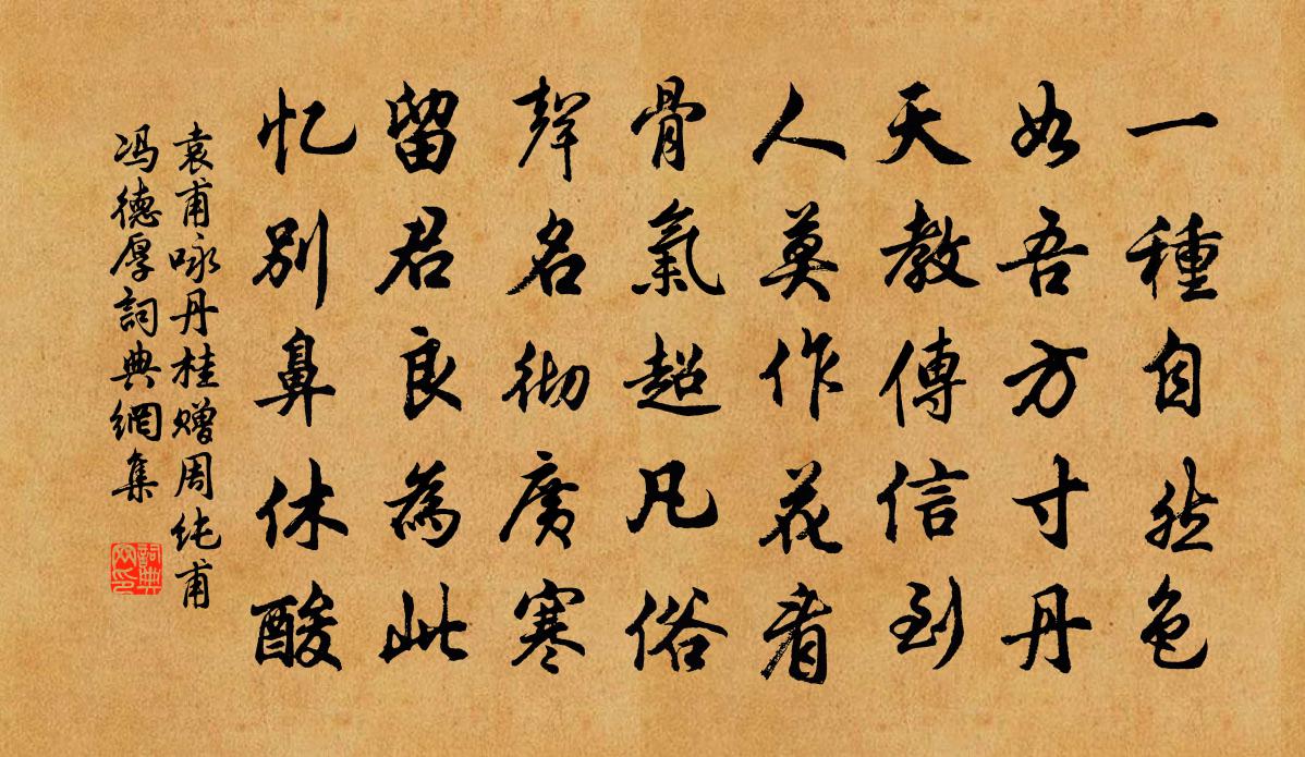 詩詞名句歷史字典書法欣賞書法字典國語詞典說文解字康熙字典古漢語字典標 題 作 者 詩 句 詠丹桂贈周純甫馮德厚作者:袁甫 朝代:宋代詠丹桂贈周純甫馮德厚原文一種自然色,如吾方寸丹。天教傳信到,人莫作花看。骨氣超凡俗,聲名徹廣寒。留君良為此,憶別鼻休酸。詩詞問答問:詠丹桂贈周純甫馮德厚的作者是誰?答:袁甫問:詠丹桂贈周純甫馮德厚寫於哪個朝代?答:宋代袁甫詠丹桂贈周純甫馮德厚書法欣賞詠丹桂贈周純甫馮德厚書法作品詩詞推薦夏日雨中寄幕中知己齊己〔唐代〕北風吹夏雨,和竹亞南軒。豆枕欹涼冷,蓮峰入夢魂。窗多斜迸濕,庭遍瀑流痕。清興知無限,晴來示一言。初秋夜雨衛宗武〔宋代〕老火勢方張,欣逢律轉商。打窗風送涇,襲袂夜生涼。灑若煩襟豁,悠然清夢長。流膏到原隰,黍稷遍含香。秋晚十詠散策李彌遜〔宋代〕散棗經崗路,牛羊歸徑深。水窮人小立,山靜客微吟。點點稻花雨,團團榕葉陰。田翁罷爭席,明日共幽尋。送朝天續集歸誠齋時在金陵姜夔〔宋代〕翰墨場中老斬輪,真能一筆掃千軍。年年花月無閒日,處處山川怕見君。箭在的中非爾力,風行水上自成文。先生曉起連文鳳〔宋代〕鐘聲廢早眠,倚棹過晴川。半夜涼風起,一帆秋影懸。僧聯聞雁句,仆請買魚錢。每被人相問,誰愛書畫船。贈李端履馬光祖〔宋代〕太守憂民只寸心,按行安得百其身。煩君為我家家問,要使重崖處處春。雪後龜堂獨坐陸游〔宋代〕兩手龜坼愁出袖,閉戶垂帷坐清晝。朝陽破雲雪漸消,點滴無窮聽檐溜。士生百行雖相補,第一要能安飯糗。詩書夏日徐璣〔宋代〕書困當檐立,微風動鬢毛。桐陰遮井暗,鶯語出林高。執熱思時雨,如疲得美醪。居然吟思起,獨步幾周遭。木蘭花慢(登樓觀稼作)呂勝己〔宋代〕無言憑燕几,愛香裊、博山爐。正暖日輝輝,晴雲淡淡,千里平蕪。田家盡收刈了,見牛羊、下壠暝煙孤。聞說豐哭徐璣五首趙師秀〔宋代〕思君氣實充,不與短折類。血死匪無由,恐是服椒罪。君於藥自深,何獨此乎昧。豈不聞仙人,餌菖得千歲。同丁致遠司戶游東掖山二首李庚〔宋代〕不見詩人老鄭虔,誰知衣缽此中傳。尚余傑閣驚我句,更結今秋未了緣。偈頌七十一首釋了惠〔宋代〕李下不整冠,瓜田不納履。尀耐老臊胡,西來十萬里。疑殺東震旦人,將謂單傳直指。出山睹春榜李洞〔唐代〕未老鬢毛焦,心歸向石橋。指霞辭二紀,吟雪遇三朝。連席頻登相,分廊尚祝堯。回眸舊行侶,免使負嵩樵。焦崖閣韋莊〔唐代〕李白曾歌蜀道難,長聞白日上青天。今朝夜過焦崖閣,始信星河在馬前。次韻斯遠投宿招賢道店對竹再用前韻見懷二首趙蕃〔宋代〕君行日未昏,意適先投宿。世有疾走人,奔波寧自足。遙知琢詩際,聲韻驚鄰曲。寄謝主人翁,取將宜刻竹。頌古四十四首釋法泰〔宋代〕驀刃開時飛銕騎,電光閃處擲金槌。一城瞎卻渾閒事,直至而今成是非。明道元年章獻明肅皇太后朝會十五首佚名〔宋代〕肅肅臨下,有威有容。循循事上,惟信惟忠。盛禮興樂,示慈訓恭。君臣協吉,惟道之從。次韻趙公直題米元暉畫軸韓元吉〔宋代〕淮南山色一千里,落水層城江更湍。何地江山有如許,與君聊趁雪中看。聽劉安唱歌顧況〔唐代〕子夜新聲何處傳,悲翁更憶太平年。即今法曲無人唱,已逐霓裳飛上天。題日記范成大〔宋代〕誰言萬事轉頭空,未轉頭時亦夢中。若向夢中尋夢覺,覺來還入大槐宮。名句推薦書不盡言,言不盡意。佚名《易傳·繫辭傳上·第十二章》 崑崙之高有積雪,蓬萊之遠常遺寒。王令《暑旱苦熱》 教也者,長善而救其失者也。戴聖《禮記·學記》 暗相思,無處說,惆悵夜來煙月。韋莊《應天長·別來半歲音書絕》 春日遲遲,卉木萋萋。佚名《出車》 日暮鄉關何處是?煙波江上使人愁。崔顥《黃鶴樓 / 登黃鶴樓》 湘西一杯酒,渺渺紅葉換。趙蕃《次韻酬吳德夫去秋送行之作》 樓頭小婦鳴箏坐,遙見飛塵入建章。王昌齡《青樓曲二首》 暗塵隨馬去,明月逐人來。蘇味道《正月十五夜》 鐘山抱金陵,霸氣昔騰發。李白《登梅岡望金陵贈族侄高座寺僧中孚》