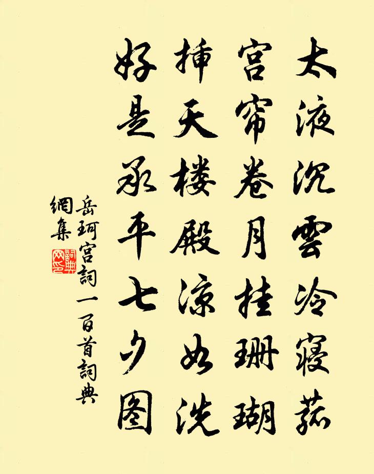 詩詞名句歷史字典書法欣賞書法字典國語詞典說文解字康熙字典古漢語字典標 題 作 者 詩 句 宮詞一百首作者:岳珂 朝代:宋代宮詞一百首原文太液沉雲冷寢菰,宮簾卷月掛珊瑚。插天樓殿涼如洗,好是承平七夕圖。詩詞問答問:宮詞一百首的作者是誰?答:岳珂問:宮詞一百首寫於哪個朝代?答:宋代岳珂宮詞一百首書法欣賞宮詞一百首書法作品詩詞推薦雪晴項安世〔宋代〕煜煜陽光動,欣欣客意寬。雪消田已潤,霜重露仍乾。半世長行腳,經年未解鞍。管晴兼管雨,何日得心安。寄子開陳師道〔宋代〕道山清絕況真仙,杜曲風流最近天。曹濮於今真樂國,股肱從昔著時賢。今回不辨終朝語,此去無端久疾痊。可念瀑上見梅有懷老溪上人蒲壽宬〔宋代〕野水橫斜最老枝,一生心事雪霜知。世人重眼不重鼻,只愛花光與補之。送董億朝奉李復〔宋代〕北游汗漫遺玄珠,煙愁霧泣啼芙蕖。興來便脫上方屐,歸去重修繁露書。一夢百年依幻宅,五湖千里御風輿。家山宿雲山房釋斯植〔宋代〕縹渺沉虛碧,清池見宿雲。松聲臨石斷,山影與泉分。芳草經年夢,幽禽隔徑聞。倚欄吟未盡,紅日又將曛。感懷陳杰〔宋代〕一箭乾風射眼酸,幾棱遠碧壓眉攢。芙蓉開徹徐娘老,楊柳疏來范叔寒。何處素商調綠綺,誰家翠袖倚琅玕。無情次韻楊樞喜雨陳造〔宋代〕神護天關色正莊,挽回帝眷一絲香。人間雨信先鳴鸛,仙界雷翁叱臥羊。剡剡青身迷迥野,浮浮白水溜方塘。豐年和何元章新秋鄭剛中〔宋代〕玉露寒凝顆,銀河澹瀉流。每年才到此,無處不驚秋。便有清涼意,潛消旱涸憂。附炎蚊弄喙,可笑不知休。送惠補之昆仲秋試袁說友〔宋代〕斑斑蘭玉不勝清,長羨於門久日榮。共慶兩蘇離蜀道,從今二宋到神京。三年刻楮真餘事,一日乘槎定策名。想得踏莎行(與莫兩山譚邗城舊事)周密〔宋代〕遠草情鍾,孤花韻勝。一樓聳翠生秋暝。十年二十四橋春,轉頭明月簫聲冷。賦藥才高,題瓊語俊。蒸香壓酒芙蓉浣溪沙向子諲〔宋代〕樽俎風流意氣傾。一杯相屬忍催行。離歌更作斷腸聲。袞袞大江前後浪,娟娟明月短長亭。水程山驛總關情。夢入禪林有老宿方升座或雲通悟禪師也陸游〔宋代〕塵埃車馬何憧憧,獐頭鼠目厭妄庸。樂哉夢見德人容,巍巍堂堂人中龍。舉頭仰望太華峰,攝衣欲往路無從。忽然詠金剛蔣貽恭〔唐代〕揚眉斗目惡精神,捏合將來恰似真。剛被時流借拳勢,不知身自是泥人。潘吳二察甚振風采劉仲山有詩因次其韻姚勉〔宋代〕國家元氣幾如發,章李以來幾台察。翻盆窺瓮若不聞,射影含沙但潛發。坦途自詫忘羊腸,堅冰恐已在履霜。熙豐楊修撰輓詩魏了翁〔宋代〕玉樹擎雙乾,靈椿老一株。林泉閒富貴,屋漏靜功夫。靖節自為傳,耆英還有圖。碑材徒鎮石,此墓不須諛。春晚謠張泌〔唐代〕雨微微,煙霏霏,小庭半拆紅薔薇。鈿箏斜倚畫屏曲,零落幾行金雁飛。蕭關夢斷無尋處,萬疊春波起南浦。凌亂贈詩僧懷靜方乾〔唐代〕幾生餘習在,時復作微吟。坐夏莓苔合,行禪檜柏深。入山成白首,學道是初心。心地不移變,徒雲寒暑侵。壽陽歌張耒〔宋代〕壽陽樓前淮水碧,壽陽美女如脂白。李郎青鬢照青衫,曾在花前作狂客。伯勞睡重花枝晚,時許蜻蜒一偷眼。歡娛寧壽寺劭農登慈氏閣和李誠之柱間韻李曾伯〔宋代〕持酒殷勤問爾農,憂時同此原年豐。他箱欲致崇墉積,耒耜宜加曠土功。水北有田均夜雨,嶺南無地不春風。吾皇雄縣觀魚納蘭性德〔清代〕漁師臨廣澤,侍從俯清瀾。瑞入王舟好,仁知聖網寬。撥鱗飛白雪,行鱠縷金盤。在藻同周宴,時容萬姓看。名句推薦雲銷雨霽,彩徹區明。王勃《滕王閣序》 我報路長嗟日暮,學詩謾有驚人句。李清照《漁家傲·天接雲濤連曉霧》 病骨支離紗帽寬,孤臣萬里客江乾。陸游《病起書懷》 近者不親,無務求遠墨子《墨子·02章 修身》 惡人自有惡人磨。施耐庵《水滸傳·第三十回》 秋來愁更深,黛拂雙蛾淺楊無咎《生查子·秋來愁更深》 遊人不管春將老,來往亭前踏落花。歐陽修《豐樂亭遊春·其三》 昔別君未婚,兒女忽成行杜甫《贈衛八處士》 落日熔金,暮雲合璧,人在何處。李清照《永遇樂·落日熔金》 愁與西風應有約,年年同赴清秋。史達祖《臨江仙·閨思》