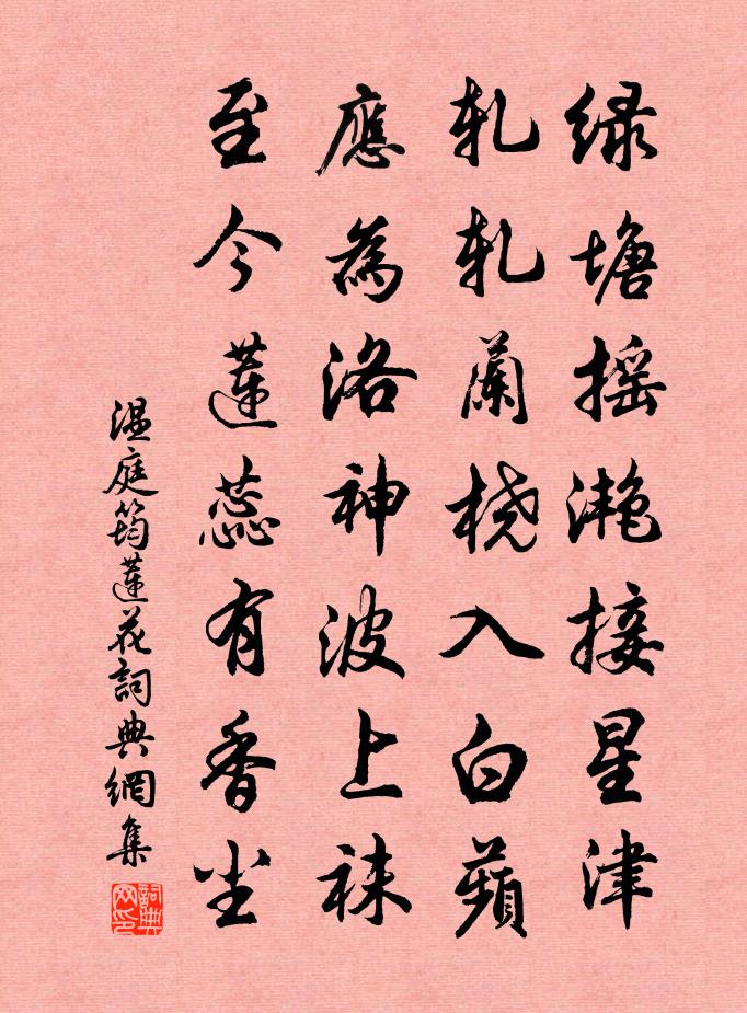 綠塘搖灩接星津,軋軋蘭橈入白蘋。應為洛神波上襪,至今蓮蕊有香塵。