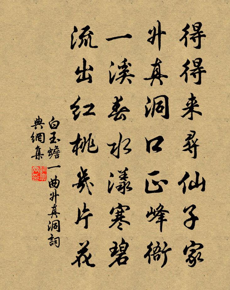 詩詞名句歷史字典書法欣賞書法字典國語詞典說文解字康熙字典古漢語字典標 題 作 者 詩 句 一曲升真洞作者:白玉蟾 朝代:宋代一曲升真洞原文得得來尋仙子家,升真洞口正峰衙。一溪春水漾寒碧,流出紅桃幾片段預告。詩詞問答問:一曲升真洞的作者是誰?答:白玉蟾問:一曲升真洞寫於哪個朝代?答:宋代問:一曲升真洞是什麼體裁?答:樂府白玉蟾一曲升真洞書法欣賞一曲升真洞書法作品詩詞推薦到徐晚村點木{箔白換卑}三首陳著〔宋代〕江雲薄薄弄秋晴,小小籃輿款款行。才近□光山自別,稍迂石險路方清。峭崖全是古銅色,好鳥略無京樣聲。林下溧陽秋霽孟郊〔唐代〕晚雨曉猶在,蕭寥激前階。星星滿衰鬢,耿耿入秋懷。舊識半零落,前心驟相乖。飽泉亦恐醉,惕宦肅如齋。上客再用韻送印老李流謙〔宋代〕抖擻孤懷十日談,不將幽憤托巫鹹。別來斷雁虛秋信,夢破驚猿憶曉岩。脫葉趁風聲互答,歸鴉赴日影相銜。臨分沁園春陸游〔宋代〕一別秦樓,轉眼新春,又近放燈。憶盈盈倩笑,纖纖柔握,玉香花語,雪暖酥凝。念遠愁腸,傷春病思,自怪平生三十二初度次日書懷曾國藩〔清代〕男兒三十殊非少,今我過之詎足歡!齷齪摯瓶嗟器小,酣歌鼓缶已春闌。眼中雲物知何兆,鏡里心情只獨看。飽食過長橋張栻〔宋代〕西風吹短髮,復此渡長橋。木落波空闊,亭孤影動搖。徘徊念今昔,領略到漁樵。儻有山中隱,憑誰為一招。有感劉駕〔唐代〕弓劍不自行,難引河湟思。將軍半夜飲,十里聞歌吹。高門幾世宅,舞袖仍新賜。誰遣一書來,燈前問邊事。綠筠軒舊在於潛寂照寺今移立縣治之東竹間鑿張鎡〔宋代〕氣韻非關竹有魚,莫嫌清蔭雜芙蕖。官居不俗從何得,窗下風翻末盡書。玉局詩汪元量〔宋代〕聯騎來登卯酉山,老君玉局護闌乾。步虛殿上香雲繞,空翠蕭森北斗寒。邊上逢歌者張祜〔唐代〕垂老秋歌出塞庭,遏雲相付舊秦青。少年翻擲新聲盡,卻向人前側耳聽。雙溪堂晚集李處權〔宋代〕北風呼雲生夕陰,小松稚竹俱蕭森。雙溪主人不孤斟,好文尚類肯見尋。坐中少監樂登臨,清談亹亹知古今。有句送人南遊杜荀鶴〔唐代〕凡游南國者,未有不蹉跎。到海路難盡,掛帆人更多。潮沙分象跡,花洞響蠻歌。縱有投文處,於君能幾何?對棋李洞〔唐代〕小檻明高雪,幽人鬥智棋。日斜拋作劫,月午蹙成遲。倚杖湘僧算,翹松野鶴窺。側楸敲醒睡,片石夾吟詩。雨點皖口遭風晁補之〔宋代〕欻起驚濤渺去程,扁舟三日滯長汀。無心坐使群鷗舞,莽眇吾知未可乘。雜詩絕句十七首梅堯臣〔宋代〕度水紅蜻蜓,傍人飛欵欵。但知隨船輕,不知船去遠。慶游寶制吳同山〔宋代〕梅花玉立雪尤禁,歲歲吹香伴細斟。日看篁車歸戲彩,未夸荷橐已橫金。水雲生閱市朝事,砥柱不移丘壑心。德望南歌子(二之二)賀鑄〔宋代〕心蹙黃金縷,梢垂白玉團。孤芳不怕雪霜寒。先向百花頭上、探春□。傍水添新韻,橫牆露粉顏。夜來和月起憑闌送鄧州崔長史盧綸〔唐代〕出山車騎次諸侯,坐領圖書見督郵。繞郭桑麻通淅口,滿川風景接襄州。高城鳥過方催夜,廢壘蟬鳴不待秋。聞說鳳仙花袁燮〔宋代〕鳳仙窈窕姿,階前為誰容。淺深十八本,形貌紛不同。或饒鮮明色,巧笑雙頰豐。或作掩抑態,抬舉差且慵。憂彼贈去婢崔郊〔唐代〕公子王孫逐後塵,綠珠垂淚滴羅巾。侯門一入深似海,從此蕭郎是路人。名句推薦方慚不耕者,祿食出閭里。韋應物《觀田家》 十年離亂後,長大一相逢。李益《喜見外弟又言別》 不虛美,不隱惡司馬光《資治通鑑·唐紀·唐紀十三》 關關雎鳩,在河之洲。窈窕淑女,君子好逑。佚名《關雎》 陰晴圓缺都休說,且喜人間好時節。徐有貞《中秋月·中秋月》 鴻雁不堪愁里聽,雲山況是客中過。李頎《送魏萬之京》 銅壺漏報天將曉,惆悵佳期又一年。羅隱《七夕》 燎沉香,消溽暑。周邦彥《蘇幕遮·燎沉香》 年來腸斷秣陵舟,夢繞秦淮水上樓王士禎《秦淮雜詩二十首·其一》 掛席幾千里,名山都未逢。孟浩然《晚泊潯陽望廬山》