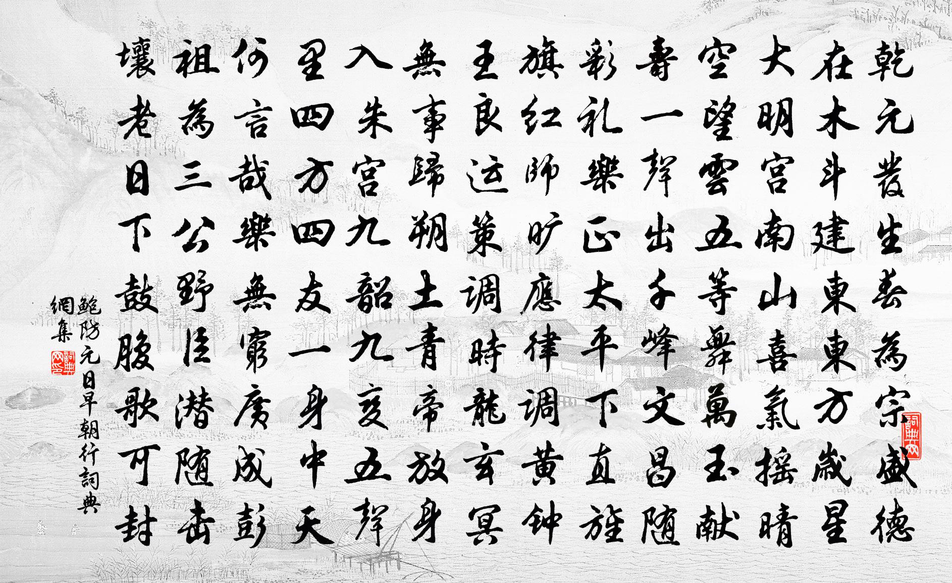 鮑防元日早朝行書法欣賞