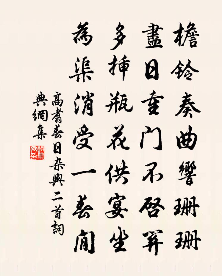 詩詞名句歷史字典書法欣賞書法字典國語詞典說文解字康熙字典古漢語字典標 題 作 者 詩 句 春日雜興二首作者:高翥 朝代:宋代春日雜興二首原文檐鈴奏曲響珊珊,盡日重門不啟關。多插瓶花供宴坐,為渠消受一春閒。詩詞問答問:春日雜興二首的作者是誰?答:高翥問:春日雜興二首寫於哪個朝代?答:宋代高翥春日雜興二首書法欣賞春日雜興二首書法作品詩詞推薦贈廣利大師歌吳融〔唐代〕化人之心固甚難,自化之心更不易。化人可以程限之,自化元須有其志。在心為志者何人,今日得之於廣利。三十游九鎖二首劉應子〔宋代〕大滌仙山不易尋,仙人樓閣倚林坰。地環九鎖溪為路,殿合諸峰石作屏。落日煙嵐呈紫翠,清秋木石寫丹青。我生上湖北趙司倉三首廖行之〔宋代〕黼扆天高德意深,恩言臨遣重丁寧。九霄雨露新英節,一日風雷遍洞庭。財力定能均息耗,米鹽因得裕常經。如今與同館游張氏園分韻得日字呂祖謙〔宋代〕出門厭囂塵,入門倦拈畢。駕言城北園,滯思頓覺失。方池環修篁,廣陌衛行栗。先雪梅已苞,後霜草猶茁。上躋滕校書使院小池賈島〔唐代〕小池誰見鑿時初,走水南來十里余。樓上日斜吹暮角,院中人出鎖游魚。長興館絕句王珪〔唐代〕風霜守冢不知年,犬類那思母愛偏。卻謝漢恩頒五餌,載訟梳洗向山前。東風第一枝(黃鐘商)吳文英〔宋代〕傾國傾城,非花非霧,春風十里獨步。勝如西子妖繞,更比太真澹濘。鉛華不御。漫道有、巫山洛浦。似恁地、標雪谿仙隱樓鑰〔宋代〕君之生兮天之西,望雪山兮名之以雪谿。君之游兮海之湄,隱於雪竇兮杳然何歸。子從其父兮孫訪吾祖,子志不遂客過劉克莊〔宋代〕客過柴門嘆寂寥,旋挑野菜拾風樵。無錢輟贈開衣笈,有病來求探藥瓢。偶憩荒郊思種樹,每逢斷澗欲營橋。書生次韻雪竇寺主僧炳同招游山二首陳著〔宋代〕飛下吟箋墨妙斑,空拳難對敵家攀。肯分半榻清風況,翻怪詩來撓聒閒。九用喜雨韻三首吳潛〔宋代〕何消黍稷薦馨香,三尺抬頭即昊蒼。雨缶決來如此溢,風車輸與自然涼。問他金玉堆成塢,更使珠璣積在箱。逢卻離武林方翥〔宋代〕大江東接海漫漫,海氣江風吹雨寒。才出國門三十里,便成回首望長安。暑中閒詠六首方回〔宋代〕驚奔萬馬屯,豈料此身存。長日唯三飯,閒時或一樽。泉深添井索,果熟閉園門。老病更炎熱,收心此避喧。了翁釋智朋〔宋代〕先師公案強名模,不解深藏負累渠。是我殺我便償命,如何年老解心孤。五歌水鳥陸龜蒙〔唐代〕水鳥山禽雖異名,天工各與雙翅翎。雛巢吞啄即一例,游處高卑殊不停。則有觜鈹爪戟勁立直視者,擊搏挽裂圖膻丁酉上元陸游〔宋代〕放翁也入少年場,一笑燈前未歇狂。翠袖成圍欺月冷,氈車爭道覺塵香。蠻酥點綴春風早,楚餌留連夜漏長。結騎奉和隨王殿下詩 十謝朓〔南北朝〕清房洞已靜。閒風伊夜來。雲生樹陰遠。軒廣月容開。宴私移燭飲。游賞藉琴台。風猷冠淄鄴。袵舄愧唐枚。雜興張鎡〔宋代〕照乘復垂棘,固足為國寶。朝有宣力賢,愛惜莫草草。成湯昔在上,剪髮救枯稿。念民有念已,頃刻動穹昊。太宗春日雜書十首 其二朱淑真〔宋代〕柳絲拂拂弄春風,日色春容一樣同。嫩草破煙開秀綠,小桃和露坼香紅。謝譚德稱國正惠詩楊萬里〔宋代〕今年日瘦天不喜,玉皇顏慘方諸淚。草木無光紅紫遲,春半何曾有春意。誰將好手挽春回,割取錦江春色來。七星名句推薦才過斜陽,又是黃昏雨。晏幾道《蝶戀花·笑艷秋蓮生綠浦》 澹月梨花,借夢來、花邊廊廡。史達祖《解佩令·人行花塢》 心生,種種魔生;心滅,種種魔滅。吳承恩《西遊記·第十三回》 雖慚老圃秋容淡,且看黃花晚節香。韓琦《九日水閣》 柳外輕雷池上雨,雨聲滴碎荷聲。小樓西角斷虹明。歐陽修《臨江仙·柳外輕雷池上雨》 思歸未可得,書此謝情人。李白《送郄昂謫巴中》 當年得意如芳草。日日春風好。辛棄疾《虞美人·賦虞美人草》 安居不用架高堂,書中自有黃金屋。趙恆《勸學詩》 霖雨泥我塗,流潦浩縱橫。曹植《贈白馬王彪·並序》 千里孤墳,無處話淒涼。蘇軾《江城子·乙卯正月二十日夜記夢》