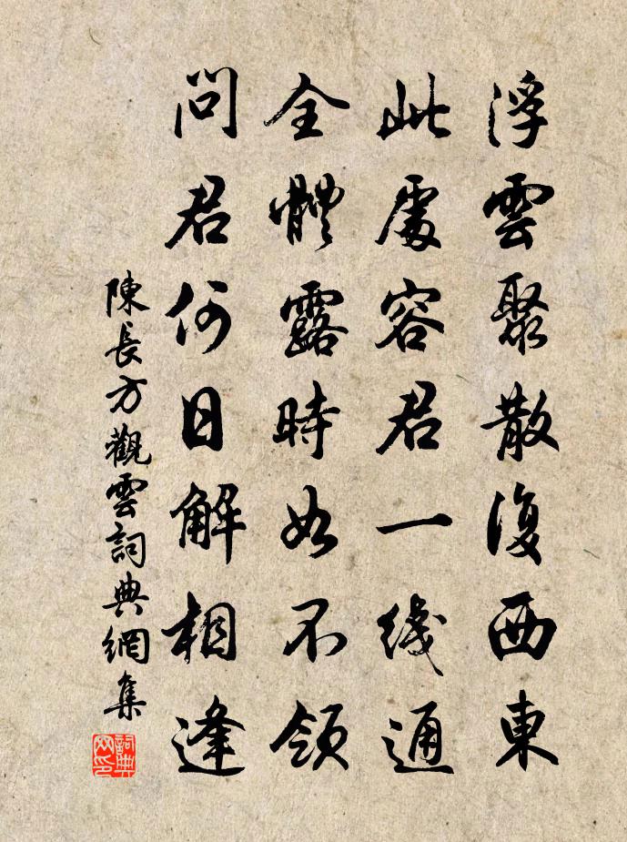 詩詞名句歷史字典書法欣賞書法字典國語詞典說文解字康熙字典古漢語字典標 題 作 者 詩 句 觀雲作者:陳長方 朝代:宋代觀雲原文浮雲聚散復西東,此處容君一線通。全體露時如不領,問君何日解相逢。詩詞問答問:觀雲的作者是誰?答:陳長方問:觀雲寫於哪個朝代?答:宋代陳長方觀雲書法欣賞觀雲書法作品詩詞推薦齊天樂 甲午七月望後,橫泖客舍驟雨頓涼,邵亨貞〔元代〕暝色凝煙,不勝淒黯。闔戶呼鐙著此,以紀旅思碧梧庭院秋聲早,**暮天雲影。雨送涼蟬,風欺倦翼,絡緯猶啼題人畫扇十首曹勛〔宋代〕雪余蒲葦襯沙黃,野水寒清雁半翔。柳下搖風雲漠漠,飛鳴應喜下瀟湘。西湖曲/玉樓春朱敦儒〔宋代〕今冬寒早風光好。休怪攙先敧絮帽。蟹肥一個可稱斤,酒美三杯真合道。年年閒夢垂垂了。且喜風松吹不倒。平分次兒輩戲商卿設醴韻二首陳造〔宋代〕水豢山膚自土宜,況邀從事到青齊。賓筵大嚼寧虛口,灶婦深顰想噬臍。爛醉豈無醒酒鱠,明朝重閱不鳴雞。扶頭重陽有作呈朝宗吳芾〔宋代〕殘年腳力已摧頹,不謂登高尚可來。每恨故人多爽約,那知今日共銜杯。挪挲 * 香仍在,悵恨朱顏挽不回。君若次韻感懷程公許〔宋代〕雨淫蕭艾掩嘉蔬,況敢堆盤薦腹腴。借問素餐顏有忸,河邊寧作鮑生枯。同鹿門少年馬紹隆冥游詩同望荊門龐德公〔唐代〕千年故國歲華奔,一柱高台已斷魂。唯有峴亭清夜月,與君長嘯學蘇門。樗蘇軾〔宋代〕自昔為神樹,空聞蜩鵙鳴。社公煩見輟,為爾致羊羹。鷓鴣天佚名〔宋代〕紫禁菸光一萬重。五門金碧射晴空。梨園羯鼓三千面,陸海鰲山十二峰。香霧重,月華濃。露台仙仗彩雲中。朱欄移居丘葵〔宋代〕移居山北向山南,天遣青風接笑談。無數鳧雛穿稻塍,一群灘鶩語茭潭。鷺臨清沚貪心起,蓮到黃昏笑靨含。卻憶放言王禹偁〔宋代〕誰信人間是與非,進須行道退忘機。卦逢大壯羝羊困,鄉入無何蛺蝶飛。澤畔衣裳蘭作佩,山中生計竹為扉。飢腸送葉士岩二首劉克莊〔宋代〕曾約還轅蓆子記,幾回掃榻佇經過。待先生敬雖如此,與老人期柰後何。走馬看花消許急,殺雞為黍誤儂多。吳中題友人林齋張喬〔唐代〕喬木帶涼蟬,來吟暑雨天。不離高枕上,似宿遠山邊。簟冷窗中月,茶香竹里泉。吾廬近溪島,憶別動經年。高亭駐眺招宮苑張端臣宋祁〔宋代〕蜀天向臘寒未極,倚檻綿睇亭皋分。一萍團紅江上日,數蓋淡白樓頭雲。杯中竹葉與誰舉,笛里梅花那忍聞。願君寄題畢郎中宅御書閣金君卿〔宋代〕帝構籠多士,春官喜得人。慶氛騰寶札,睿睠寵詞臣。敞第張層構,傳家號絕珍。更藏書萬卷,酣詠樂天鈞。石州慢姚燧〔元代〕高與雙崖,馮雪魏青,三子皆人傑。當年慣見中宵,天外德星難拆。華觴雕俎,清辭細切琅,定應袖有錕*鐵。蘇州洋文天祥〔宋代〕一葉漂搖揚子江,白雲盡處是蘇洋。便如伍子當年苦,只少行頭寶劍裝。饒娥廟祀神歌馬廷鸞〔宋代〕我生之初尚無為,我生之後唐世衰。有父溺死兮誰者憐之,呼天與地兮涕漣洏。至險不測濤與風,至幽不仁魚與龍送劉知新往襄陽賈島〔唐代〕此別誠堪恨,荊襄是舊遊。眼光懸欲落,心緒亂難收。花木三層寺,煙波五相樓。因君兩地去,長使夢悠悠。句張宗尹〔宋代〕大書方字隄防老,剩賣田園準務閒。名句推薦馬嘶芳草遠,高摟簾半掩。顧敻《醉公子·岸柳垂金線》 君子不重則不威,學則不固。主忠信,無友不如己者,過,則勿憚改。孔子弟子《論語·學而篇》 陰壑生虛籟,月林散清影杜甫《游龍門奉先寺》 浮雲一別後,流水十年間。韋應物《淮上喜會梁川故人 / 淮上喜會梁州故人》 時靸雙鴛響,廊葉秋聲。吳文英《八聲甘州·靈岩陪庾幕諸公游》 行吟坐嘯獨悲秋,海霧江雲引暮愁。陳子龍《秋日雜感(十首選一)》 夜市賣菱藕,春船載綺羅。杜荀鶴《送人游吳》 觀天下書未遍,不得妄下雌黃。顏之推《顏氏家訓·勉學篇》 隔座送鉤春酒暖,分曹射覆蠟燈紅。李商隱《無題·昨夜星辰昨夜風》 信,國之寶也,民之所庇也左丘明《左傳·僖公·僖公二十五年》