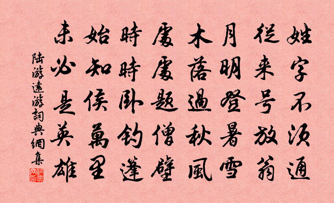 姓字不須通,從來號放翁。月明登暑雪,木落過秋風。