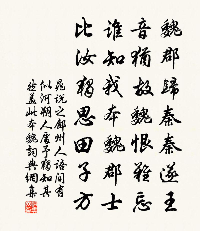詩詞名句歷史字典書法欣賞書法字典國語詞典說文解字康熙字典古漢語字典標 題 作 者 詩 句 鄜州人語間有似河朔人處予獨知其然蓋此本魏作者:晁說之 朝代:宋代原文魏郡歸秦秦遂王,音猶故魏恨難忘。誰知我本魏郡士,比汝獨思田子方。詩詞問答問:《鄜州人語間有似河朔人處予獨知其然蓋此本魏》的作者是誰?答:晁說之問:該詩寫於哪個朝代?答:宋代書法欣賞鄜州人語間有似河朔人處予獨知其然蓋此本魏書法作品詩文賞析【原題】:鄜州人語間有似河朔人處予獨知其然蓋此本魏之上郡魏人以歸秦之三年秦遂稱王而不樂為秦民之故其音猶魏也作絕句詩詞推薦依韻和張文通寺丞寄鮮于子駿職方強至〔宋代〕西州夫子善談天,語入精微服四筵。交分正論詩卷里,別愁忽到酒樽邊。馬沖雪片歸梁苑,鶯喚年芳憶渭川。盛事鵲橋仙元好問〔金代〕梨花春暮,垂楊秋晚,歸袖無人重挽。浮雲流水十年間,算只有、青山在眼。風台月榭,朱唇檀板,多病全疏酒盞遣興七首李流謙〔宋代〕倦倚枯株坐,起尋微逕行。魚為鑿壞遁,蟬作採薇清。彈指四時足,閉關群動平。盡言殊未可,日用本分明。河滿子晏幾道〔宋代〕對鏡偷勻玉箸,背人學寫銀鉤。系誰紅豆羅帶角,心情正著春遊。那日楊花陌上,多時杏子牆頭。眼底關山無奈,再和制帥王之望〔宋代〕聖主不忘遠,惠懷堯所難。如何吾所部,疲療未全安。詔條少宣布,牒訴多悲酸。撫節夜長嘆,憂慚非一端。贈王殿院同年王禹偁〔宋代〕幾年淮海嘆驅馳,美拜初聞入奏時。戶作台官勞馬揖,合為巡使近龍墀。多從此地升三字,莫血朝端說四推。縱遇對月了殘經二首釋智朋〔宋代〕月在天,字在紙。於此經,了也未。口如鼻孔眼如眉,依前坐在光影裹。送張曜之真德秀〔宋代〕風煙千里走淮漘,寄語青油幕里人。麟閣功名須有意,乃心王室勿謀身。次吳友梅假山韻楊公遠〔宋代〕石骨嵌岩聳怪形,主人對此快詩情。若教老筆來模倣,盤礴終朝畫不成。送史冊步知池洲孫應時〔宋代〕弄水亭無恙,表溪古畫圖。民風最淳樸,郡計足枝梧。漢璽行褒召,潘輿且燕娛。平生故人意,未改歲寒無。蠶叢祠汪元量〔宋代〕西蜀風煙天一方,蠶叢古廟枕斜陽。茫然開國人天主,彷佛鴻荒盤古王。下章安杜瀆七首姚寬〔宋代〕風林葉脫減秋聲,山擁秋光到眼明。秋興悲秋俱有賦,安仁宋玉是前生。寄監察從兄曹鄴〔唐代〕我祖居鄴地,鄴人識文星。此地星已落,兼無古時城。古風既無根,千載難重生。空留建安書,傳說七子名。賤子長相思·一重山李煜〔唐代〕一重山,兩重山,山遠天高煙水寒,相思楓葉丹。鞠花開,鞠花殘,塞雁高飛人未還,一簾風月閒。浣溪沙(初夏)趙長卿〔宋代〕霧透龜紗月映欄。麥秋天氣怯衣單。楝花風軟曉來寒。懶起麝煤重換火,暖香濃處斂眉山。眼波橫浸綠雲鬟。和陳瑩中了齋自警六絕楊時〔宋代〕聖門事業學須強,俚耳從來笑折楊。詭遇得禽非我事,但知無有是吾鄉。觀海林一龍〔宋代〕昔者吾夫子,浮海思乘桴。彼美魯仲連,蹈海恥帝呼。寥寥千載間,此意霜月孤。而我欲涉海,夫豈夫子徒。長風二使者游東山酒後寄詩走筆次韻張栻〔宋代〕頗聞東山盛行樂,坐想風前酒興豪。領略正應胸次別,吟喔更覺筆端高。元豐己未三院東閣作元豐戊午夏予尹京治陳蘇頌〔宋代〕搆虛為實盡枝辭,直道公心自不欺。眾口鑠金雖可畏,三人成虎我猶疑。忠邪所賴圓穹鑒,通塞須憑大衍推。況是殢人嬌張擴〔宋代〕深院海棠,誰倩春工染就。映窗戶、爛如錦繡。東君何意,便風狂雨驟。堪恨處,一枝未曾到手。今日乍晴,匆匆名句推薦香汗薄衫涼,涼衫薄汗香。蘇軾《菩薩蠻·回文夏閨怨》 去年離別雁初歸,今夜裁縫螢已飛。張紘《閨怨 / 怨詩》 任翠幄張天,柔茵藉地,酒盡未能去。晁補之《摸魚兒·東皋寓居》 胡蝶夢中家萬里,子規枝上月三更。崔塗《春夕》 兒童強不睡,相守夜歡嘩。蘇軾《守歲》 遺民忍死望恢復,幾處今宵垂淚痕。陸游《關山月》 生當復來歸,死當長相思。蘇武《留別妻》 靜女其姝,俟我於城隅。佚名《靜女》 三月殘花落更開,小檐日日燕飛來。王令《送春》 道人憔悴春窗底,悶損闌乾愁不倚李清照《玉樓春·紅酥肯放瓊苞碎》