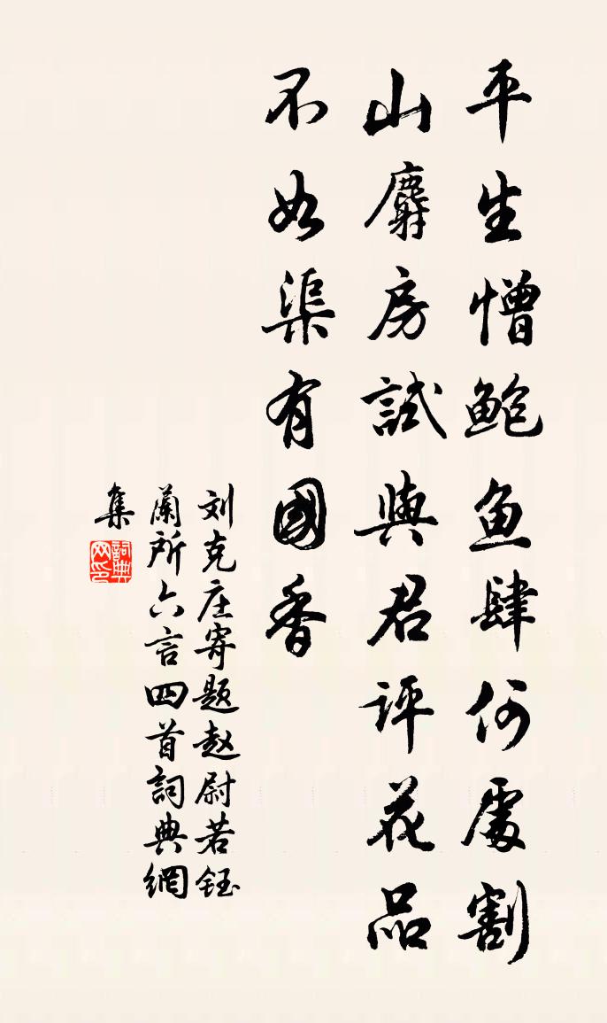 平生憎鮑魚肆,何處割山麝房。試與君評花品,不如渠有國香。