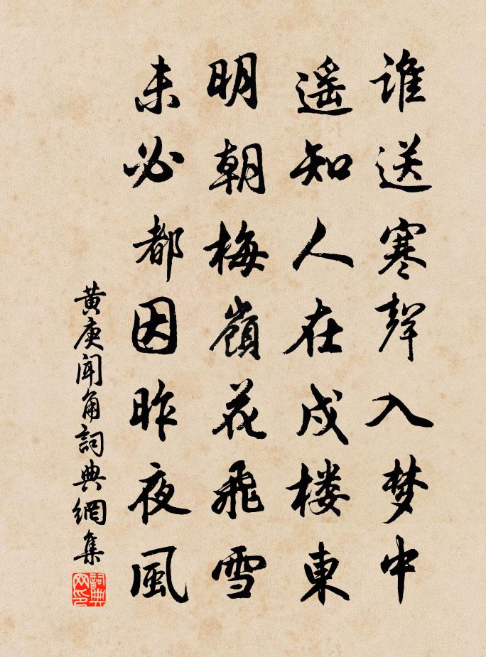 詩詞名句歷史字典書法欣賞書法字典國語詞典說文解字康熙字典古漢語字典標 題 作 者 詩 句 聞角作者:黃庚 朝代:宋代聞角原文誰送寒聲入夢中,遙知人在戍樓東。明朝梅嶺花飛雪,未必都因昨夜風。詩詞問答問:聞角的作者是誰?答:黃庚問:聞角寫於哪個朝代?答:宋代黃庚聞角書法欣賞聞角書法作品詩詞推薦阮郎歸晏幾道〔宋代〕晚妝長趁景陽鍾,雙娥著意濃。舞腰浮動綠雲濃,櫻桃半點紅。憐美景,惜芳容,沉思暗記中。春寒簾幕幾重重,山行見月作趙蕃〔宋代〕恨我無酒,負爾一醉。酌茲寒泉,兀爾忘睡。上林道李廌〔宋代〕憶昔驅車度函谷,解鞍訪古驪山麓。華清雖有亡國恨,繡嶺猶存舊時木。無情草木競爭春,不問興亡自紅綠。漢家受恩深王哲〔元代〕性亂因醪誤。精枯緣色妒。眼神傷敗,被財役住。鼻濁如何,只為氣使馨清去。浮世人難悟。*四事相牽,淪落苦水調歌頭(和潔堂韻)佚名〔宋代〕老子早知退,鷗鷺未盟寒。痴頑窬六望七,寧以壽為歡。風有黍離傷咽,雅有蓼莪憔悴,使我不能餐。更把南陔讀三山次潘靜之升書記韻朱槔〔宋代〕客路那知歲月長,掀眉一笑苾蒭房。且傾徐邈聖賢酒,不問陳登上下床。雲影翻空迷海嶠,秋聲隨夢到江鄉。明朝大熱文同〔宋代〕大熱早復暮,幽居如火圍。更無風稍快,只有汗頻揮。袒露憂生客,沾濡怕熟衣。何當生兩翼,直近廣寒飛。宮詞王珪〔唐代〕御座垂簾繡額單,冰山重疊貯金盤。玉清迢遞無塵到,殿角東西五月寒。偈頌三十四首釋如淨〔宋代〕筆頭禿盡一毫通,至治寥寥靜極中。點起風雲傳號令,雷霆潑墨振綱宗。別謝彥國相公三首邵雍〔宋代〕和詩韓國老,見比以宣尼。引彼返魯事,指予來西畿。日星功夫大,麋鹿分同微。華袞承褒借,將何答所知。泰和文天祥〔宋代〕書生曾擁碧油幢,恥與群兒共豎降。漢節幾回登快閣,楚囚今度過澄江。丹心不改君臣誼,清淚難忘父母邦。惟有觀打球有作楊巨源〔唐代〕親掃球場如砥平,龍驤驟馬曉光晴。入門百拜瞻雄勢,動地三軍唱好聲。玉勒回時沾赤汗,花騣分處拂紅纓。欲令呈宋伯潛趙蕃〔宋代〕學有南軒派,文仍二宋家。泉源端有本,玉立更無瑕。儻遂成三徑,當從讀五車。朋游有如此,未恨落長沙。玉真台趙彥端〔宋代〕春色無窮巷,農鄉有太和。病嗟聞道晚,貧喜得閒多。草徑供徐步,鄰花獲屢過。層台宜抗榭,誰與 * 波。次韻王仲行尚書宿直兩絕句周必大〔宋代〕紫禁同依日月輝,蒼顏獨愧羽毛奇。水如明鏡雖堪俯,笑汝星星誰肯嬉。金陵雜興二百首蘇泂〔宋代〕蘼蕪澗邊春草青,桃葉渡頭江水生。女郎到此歌一曲,不盡今來古往情。和陶停雲四首蘇軾〔宋代〕對弈未終,摧然斧柯。再游蘭亭,默數永和。夢幻去來,誰少誰多。彈指太息,浮雲幾何。宋頌九首莫醜石介〔宋代〕莫魂匪虺,莫悍匪兕。有鋹在南,毒赨不已。詠畫屏風詩 十八庾信〔南北朝〕白石春泉滿。黃金新埒開。戚里車先度。蘭池馬即來。落花承舞席。春衫拭酒杯。行廚半路待。載妓一雙回。鹿仙山張耒〔宋代〕溪清山秀隱神仙,乘鹿真人去幾年。天地壺中無客到,方書肘後有誰傳。秦皇採藥迷蓬島,漢武燒金得紫煙。真境名句推薦新煙禁柳,想如今、綠到西湖。張炎《渡江雲·山陰久客一再逢春回憶西杭渺然愁思》 剛待不思量,吹一片、簫聲過牆。項鴻祚《太常引·客中聞歌》 秋容淺淡映重門,七節攢成雪滿盆。曹雪芹《詠白海棠》 對酒當歌,強樂還無味。柳永《蝶戀花·佇倚危樓風細細》 琴書倦,鷓鴣喚起南窗睡。謝逸《千秋歲·詠夏景》 廬山秀出南斗傍,屏風九疊雲錦張。李白《廬山謠寄盧侍御虛舟》 吞舟之魚,陸處則不勝螻蟻呂不韋《呂氏春秋·覽·審分覽》 妖嬈艷態,妒風笑月,長殢東君。李清照《慶清朝·禁幄低張》 世上無難事,只怕不專心。佚名《增廣賢文·下集》 昨夜笙歌容易散,酒醒添得愁無限馮延巳《鵲踏枝·梅落繁枝千萬片》