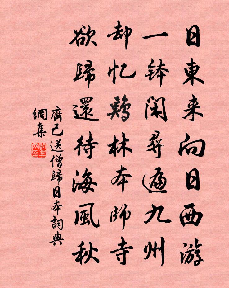 日東來向日西遊,一缽閒尋遍九州。卻憶雞林本師寺,欲歸還待海風秋。