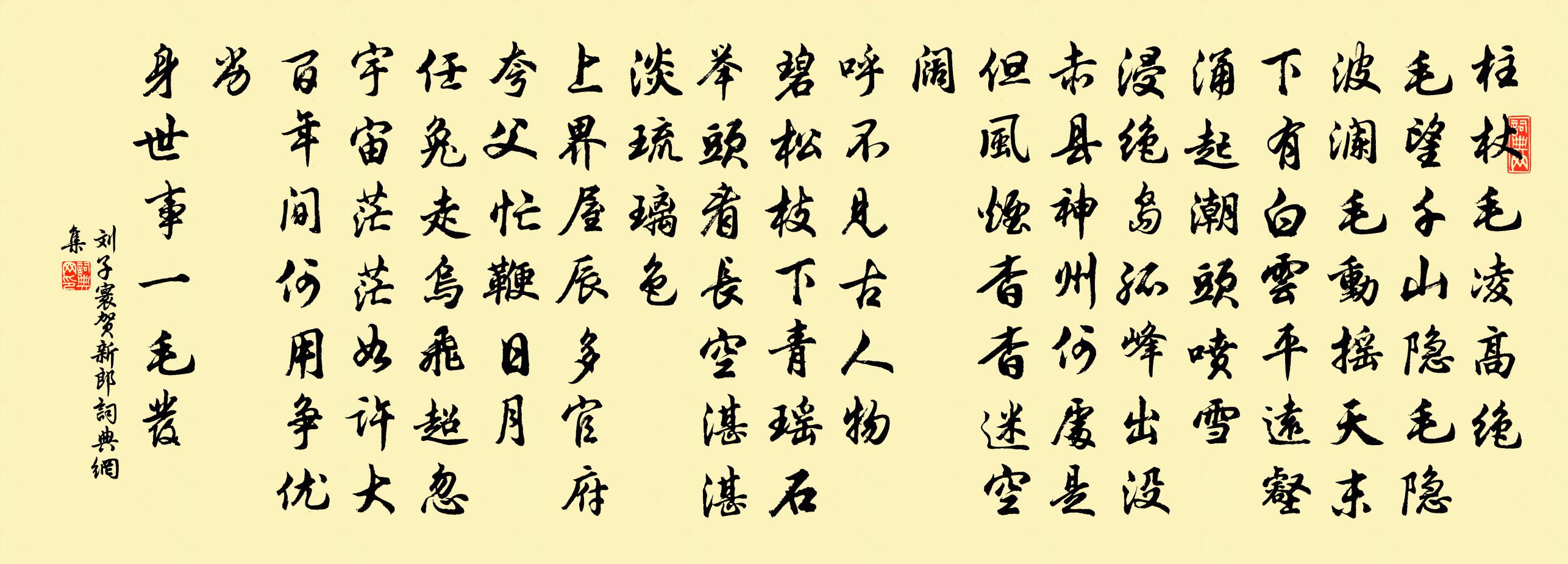 詩詞名句歷史字典書法欣賞書法字典國語詞典說文解字康熙字典古漢語字典標 題 作 者 詩 句 賀新郎作者:劉子寰 朝代:宋代賀新郎原文柱杖毛凌高絕。毛望千山隱毛隱,波瀾毛動搖天末。下有白雲平遠壑,湧起潮頭噴雪。浸絕島、孤峰出沒。赤縣神州何處是,但風煙、杳杳迷空闊。呼不見,古人物。碧松枝下青瑤石。舉頭看、長空湛湛,淡琉璃色。上界屋辰多官府,夸父忙鞭日月。任兔走、烏飛超忽。宇宙茫茫如許大,百年間、何用爭優劣。身世事,一毛髮。詩詞問答問:賀新郎的作者是誰?答:劉子寰問:賀新郎寫於哪個朝代?答:宋代問:賀新郎是什麼體裁?答:詞劉子寰賀新郎書法欣賞賀新郎書法作品詩詞推薦隆興書堂自警三十五首陳淳〔宋代〕氣稟微有偏,積習日蕃衍。矯厲工弗深,其末必猶反。莊敬日強齋二首李壁〔宋代〕人情樂安肆,晝夜物慾嬰。惟敬以直之,山立而川行。掃花游(用清真韻)周密〔宋代〕柳花颺白,又火冷餳香,歲時荊楚。海棠似語。惜芳情燕掠,錦屏紅舞。怕里流芳,暗水啼煙細雨。帶愁去。嘆寂少年游 端午贈黃守徐君猷蘇軾〔宋代〕銀塘朱檻麴塵波。圓綠卷新荷。蘭條薦浴,菖花釀酒,天氣尚清和。好將沈醉酬佳節,十分酒、一分歌。獄草煙深劉十九同宿(時淮寇初破)白居易〔唐代〕紅旗破賊非吾事,黃紙除書無我名。唯共嵩陽劉處士,圍棋賭酒到天明。和遠老四首吳芾〔宋代〕身居仕路夢家山,一日君恩放我還。從此便為終老計,只愁造物靳清閒。聖柬將寓於衛行乞食於齊有可憐之色再次韻感黃庭堅〔宋代〕春風鳴布穀,天道似勸分。持飢望路人,誰能顏色溫。笑憶枯魚說,詼諧老漆園。湘纍不得祿,哀怨寫荃蓀。千年詠茶十二韻齊己〔唐代〕百草讓為靈,功先百草成。甘傳天下口,貴占火前名。出處春無雁,收時谷有鶯。封題從澤國,貢獻入秦京。嗅覺使至塞上王維〔唐代〕腳踏車欲問邊,屬國過居延。征蓬出漢塞,歸雁入吳天。大漠孤煙直,長河落日圓。蕭關逢候騎,都護在燕然。再用前韻贈高司理共八首陳造〔宋代〕蘇李宗風我雀揚,少陵公按子開堂。官曹此地文書省,詩社從今日月長。山滴曉煙收後翠,蓮漂天女戲時香。可孤蠟梅楊萬里〔宋代〕天向梅梢別出奇,國香未許世代知。殷懃滴蠟緘封卻,偷被霜風折一枝。聞有長流之信擬出塞曲沈士柱〔清代〕生平不射獵,麋鹿隨我游。入山復不深,未聞虎豹愁。今將棄詩書,買刀系馬頭。筋力雖不強,臂後矢可抽。雁雉時當末伏暑氣愈隆老者殊不能堪而舊業荒殘清釋文珦〔宋代〕踽踽復睘睘,誰知遠客情。衰齡餘六甲,酷暑畏三庚。舊業今何有,秋衣亦未成。東鄰弄羌管,休作斷腸聲。讀趙張嵲〔宋代〕漢武餘威信未窮,單于來見未央宮。如何運偶鴻嘉主,樊嫕宮中作女戎。邠娘羯鼓張祜〔唐代〕新教邠娘羯鼓成,大酺初日最先呈。冬兒指向貞貞說,一曲乾鳴兩杖輕。次韻子瞻題郭熙畫秋山黃庭堅〔宋代〕黃州逐客未賜環,江南江北飽看山。玉堂臥對郭熙畫,發興已在青林間。郭熙官畫但荒遠,短紙曲折開秋晚。江村挽李尚書母太淑人黃榦〔宋代〕紫橐光先烈,青衫拾世科。家聲今益振,母訓昔應多。方聽焚舟誓,俄聞喜缶歌。定非孫與祖,一戰一言和。春日七首呂祖謙〔宋代〕一川曉色鷺分去,兩岸煙光鶯帶來。徑欲卜居從釣叟,綠楊缺處竹門開。酬答覆州葉教授項安世〔宋代〕竟陵寒盡轉春風,壇杏株林淑氣通。惆悵江陵紅白樹,年年幽獨伴鄰翁。花石長枕歌答章居士贈皎然〔唐代〕楚山有石郢人琢,琢成長枕知是玉。全疑冰片坐恐銷,間發花叢驚不足。贈予比之金琅玕,瓊花爛熳浮席端。吾師名句推薦百里不販樵,千里不販糴。司馬遷《史記·七十列傳·貨殖列傳》 千尺陰崖塵不到,惟有層冰積雪。辛棄疾《賀新郎·用前韻送杜叔高》 親愛我,孝何難。親憎我,孝方賢。李毓秀《弟子規·入則孝》 寒雨連江夜入吳,平明送客楚山孤。王昌齡《芙蓉樓送辛漸》 黃金燃桂盡,壯志逐年衰。孟浩然《秦中感秋寄遠上人 / 秦中寄遠上人》 最是倉皇辭廟日,教坊猶奏別離歌,垂淚對宮娥。李煜《破陣子·四十年來家國》 此去與師誰共到,一船明月一帆風。韋莊《送日本國僧敬龍歸》 先生醉也,童子扶者。曹德《三棒鼓聲頻·題淵明醉歸圖》 野花不種年年有,煩惱無根日日生。馮夢龍《警世通言·卷二十》 渺萬裡層雲,千山暮雪,隻影向誰去?元好問《摸魚兒·雁丘詞 / 邁陂塘》