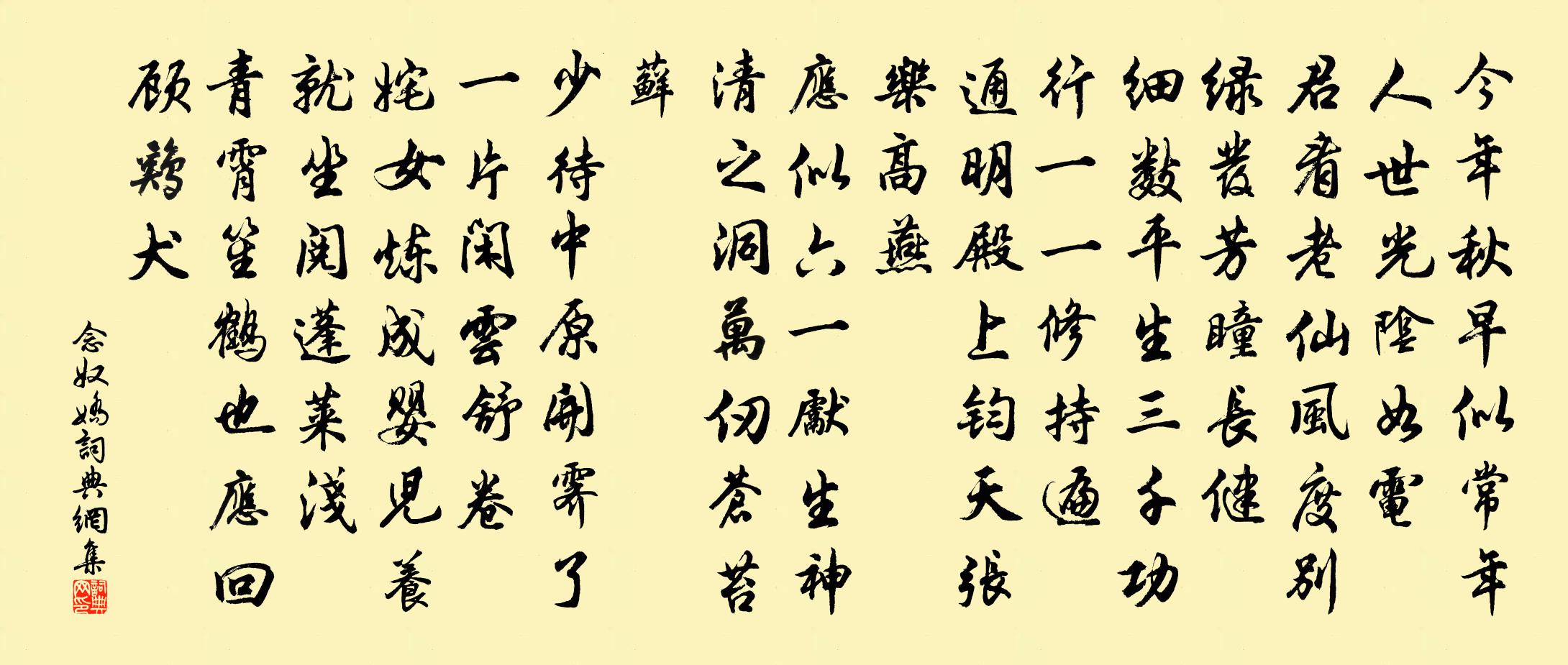 今年秋早,似常年、人世光陰如電。君看老仙風度別,綠髮芳瞳長健。