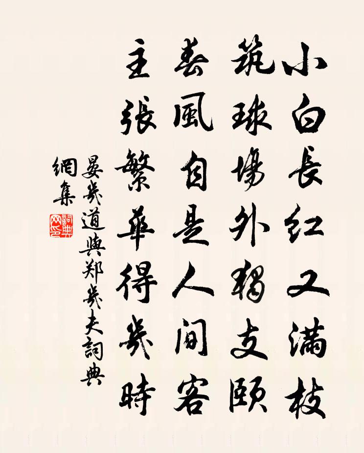 小白長紅又滿枝,築球場外獨支頤。春風自是人間客,主張繁華得幾時?