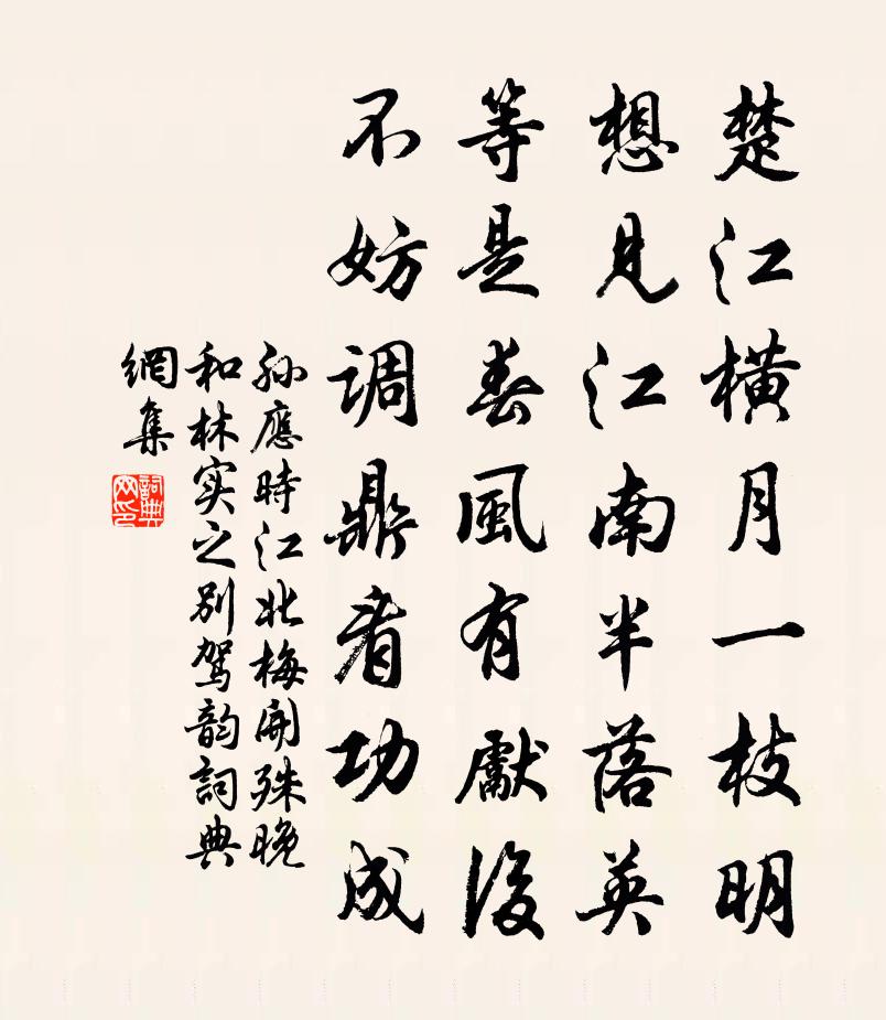 詩詞名句歷史字典書法欣賞書法字典國語詞典說文解字康熙字典古漢語字典標 題 作 者 詩 句 江北梅開殊晚和林實之別駕韻作者:孫應時 朝代:宋代原文楚江橫月一枝明,想見江南半落英。等是春風有先後,不妨調鼎看功成。詩詞問答問:《江北梅開殊晚和林實之別駕韻》的作者是誰?答:孫應時問:該詩寫於哪個朝代?答:宋代書法欣賞江北梅開殊晚和林實之別駕韻書法作品詩詞推薦庚寅五月十二日偕趙平甫拜採石神霄宮太白墳王奕〔宋代〕孤風吹黃鵠,遠客歸自魯。瓣香拜公墳,梁月重淒楚。比曾登太山,依韻踵遐武。生平景仰心,茲夕遂親睹。何地次韻和景彝元夕雨晴梅堯臣〔宋代〕春雲收暮城,九陌洒然清。星出紫霄下,月從滄海明。車音還似晝,鼓響已知晴。靜閉衡門臥,無心學後生。浣沙溪(南鄭席上)陸游〔宋代〕浴罷華清第二湯。紅棉撲粉玉肌涼。娉婷初試藕絲裳。鳳尺裁成猩血色,螭奩熏透麝臍香。水亭幽處捧霞觴。和蒲大受王園泛舟用文老韻郭印〔宋代〕平生喜閒曠,夢想只山林。曲江理煙艇,魚鳥皆知音。晴天亂鳧鶩,相呼時一沉。油然淵中鱗,潛伏恐不深。偈尼法燈〔宋代〕觀音出,普賢入,文殊水上穿靴立。抬頭鷂子過新羅,石火電光追不及。詠江鰩員興宗〔宋代〕鮮鮮眼中瑤,玉柱出珍抱。吾家天萬里,識君恨不早。攜來定雪兒,中膏非外槁。不知何物尤,醉臉茲一掃。平生戲語成輔端〔唐代〕秦地城池二百年,何期如此賤田園。一頃麥苗碩伍米,三間堂屋二千錢。秋日漫興二首洪邁〔宋代〕一夕西風木葉飛,畫梁落月淡餘輝。銀燈夜照還家夢,金剪親裁寄遠衣。霜信早隨新雁至,素書深訝故人稀。無因雜詠一百首洛下閎劉克莊〔宋代〕巧曆雖千歲,先知一日差。未能下運算元,亦道是占家。江景黃庚〔宋代〕寒生雁背天將雪,冷入魚腮水欲冰。釣艇歸來江路暝,舟人分火點漁燈。陪蜀士文昌醮陳杰〔宋代〕葳蕤桑梓翦為荒,翰墨橫流墜緒茫。天北有星明武曲,江南無地托文昌。幾時興雨蘇民望,何日乘雲返帝鄉。我少擬詠懷二十七首·其二十六庾信〔南北朝〕蕭條亭障遠,悽慘風塵多。關門臨白狄,城影入黃河。秋風別蘇武,寒水送荊軻。誰言氣蓋世,晨起帳中歌。悲來舒岳祥〔宋代〕竹簡千年夢,楸枰萬古爭。推敲渾細呈,著述亦虛名。春艷無行好,秋吟恨短生。乃知天壤內,各以一時鳴。馮震野航李石〔宋代〕蓬萊弱水三萬里,片帆風便一日耳。世間眾水集枯溝,{上圭下黽}黽自誇河伯秋。況於平地鑿戶牖,此豈有水仍富陽道中遇風感嘆作趙蕃〔宋代〕回首江山舊,他年來往頻。人誰無一飽,汝獨值多辛。泛泛將何在,悠悠愧此身。懷哉松與菊,白露及時新。玉樓春王炎〔宋代〕往年餬口謀升斗。朱墨塵埃粘兩袖。黃粱夢斷始歸來,依舊琴書當左右。而今藏取持螯手。林下獨居閒散又。問之同繼祖民瞻游賦詩亭二首陳與義〔宋代〕邂逅今朝一段奇,從來華屋不關詩。諸君且作留連意,正是微風到竹時。登棲霞寺(一作奉和李益游棲岩寺)常袞〔唐代〕林香雨氣新,山寺綠無塵。遂結雲外侶,共游天上春。鶴鳴金閣麗,僧語竹房鄰。待月水流急,惜花風起頻。何方百媚娘(雙調)張先〔宋代〕珠闕五雲仙子。未省有誰能似。百媚算應天乞與,淨飾艷妝俱美。若取次芳華皆可意。何處比桃李。蜀被錦紋鋪水好事近仲並〔宋代〕今雨幾人來,冰霰更凝寒色。門外車多長者,頓光生蓬蓽。繽紛飛雪更初梅,特特為留客。惟恨坐無華饌,只平時名句推薦琵琶弦上說相思。當時明月在,曾照彩雲歸。晏幾道《臨江仙·夢後樓台高鎖》 象龍喚不應,竹龍起行雨張孝祥《湖湘以竹車激水粳稻如雲書此能仁院壁》 城隅南對望陵台,漳水東流不復回。岑參《登古鄴城》 聖人見微以知萌,見端以知末,故見象箸而怖,知天下之不足也。韓非及後人《韓非子·說林上》 雲開遠見漢陽城,猶是孤帆一日程。盧綸《晚次鄂州》 志,氣之帥也。孟子《孟子·公孫丑章句上·第二節》 金帶連環束戰袍,馬頭沖雪度臨洮。馬戴《出塞詞》 行人悵望蘇台柳,曾與吳王掃落花。姜夔《姑蘇懷古》 明月青山夜,高天白露秋。李嶠《同賦山居七夕》 不似當時,小橋沖雨,幽恨兩人知。周邦彥《少年游·朝雲漠漠散輕絲》