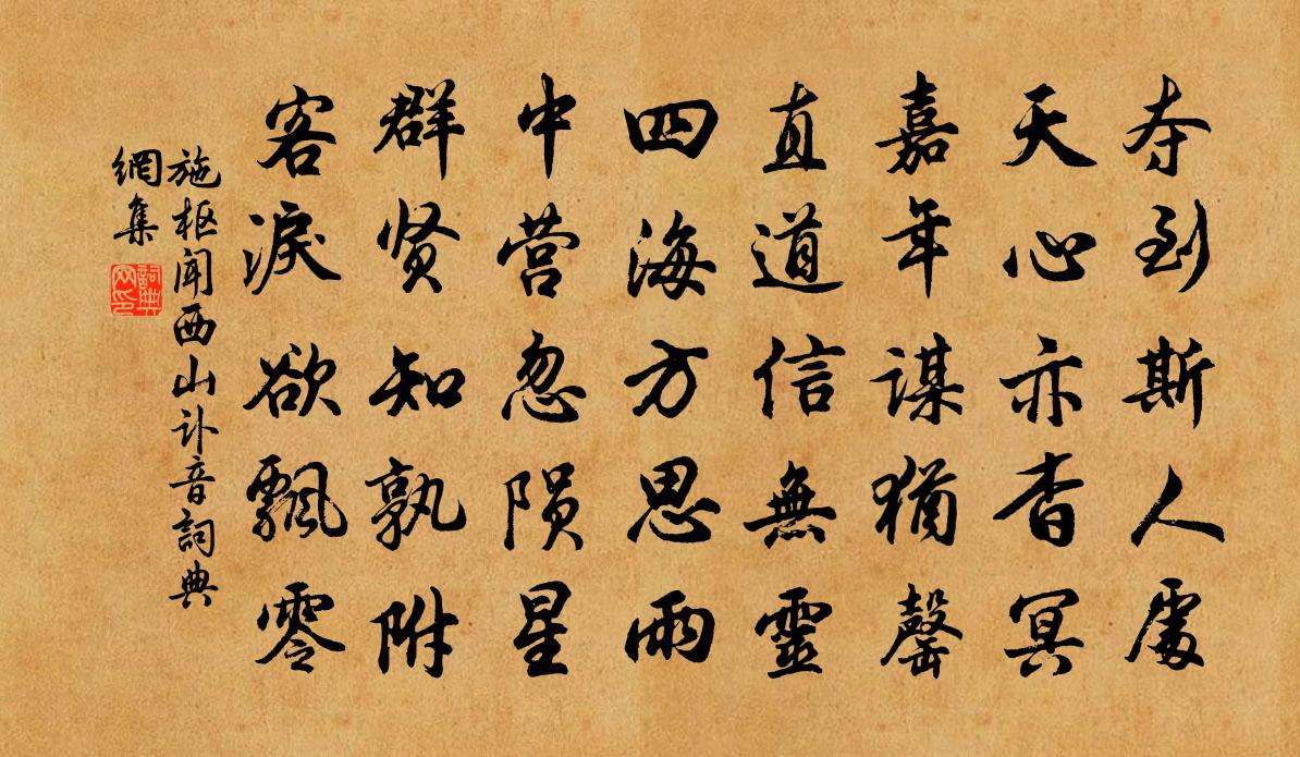 詩詞名句歷史字典書法欣賞書法字典國語詞典說文解字康熙字典古漢語字典標 題 作 者 詩 句 聞西山訃音作者:施樞 朝代:宋代聞西山訃音原文奪到斯人處,天心亦杳冥。嘉年謀猶罄,直道信無靈。四海方思雨,中營忽隕星。群賢知孰附,客淚欲飄零。詩詞問答問:聞西山訃音的作者是誰?答:施樞問:聞西山訃音寫於哪個朝代?答:宋代施樞聞西山訃音書法欣賞聞西山訃音書法作品詩詞推薦春日即事劉過〔宋代〕出門雖是欠陶朱,便使關門亦可居。物價甚廉常食肉,傭貲極省易鈔書。已安櫟社如無用,若此叢從似有餘。歸與憶廬山舊隱及洛下新居白居易〔唐代〕形骸黽勉班行內,骨肉句留俸祿中。無奈攀緣隨手長,亦知恩愛到頭空。草堂久閉廬山下,竹院新拋洛水東。自是謝葉叔羽總領惠雙淮白二首楊萬里〔宋代〕情知此味飲中環,暖律何緣到死灰。去歲海紅猶間識,今看淮白不曾來。一寒尚有綈袍贈,雙鯉仍隨尺素回。厚祿江城子 游孫園張之翰〔元代〕丹青畫出小亭台。巧安排。絕塵埃。二十年間,成此亦奇哉。借問主人凡幾醉,直到老,不曾來。來鶯去燕莫相猜與梁先、舒煥泛舟,得臨釀字,二首蘇軾〔宋代〕老守厭簿書,先生罷函丈。風流魏晉間,談笑義皇上。河洪忽已過,水色綠可釀。君無輕此樂,此樂清且放。孫器之奉使淮浙至江為書見寄以詩謝之五首司馬光〔宋代〕岫貼晴天闊,舟緣石岸深。遙知作書處,纜裊綠波心。摸魚子許有孚〔元代〕買陂塘旋栽楊柳,新來已見成務。小山叢桂人如玉,何用為云為雨。懷北渚。悵渺渺予懷,目斷游龍嶼。憑誰寄語重陽錫宴群臣李忱〔唐代〕款塞旋征騎,和戎委廟賢。傾心方倚注,葉力共安邊。上元雨孫何〔宋代〕淡月微雲外,街泥小雨餘。人如墟市散,燈似曉星疏。送廖婿林伯魯東歸南寺席中因舉送王長樂詩伯陳淳〔宋代〕良夜禪房款一游,義心相與重山丘。少陪文字賡酬樂,頓釋胸懷鄙隱憂。我愧反身無寸得,君方努力勇前求。懸知陸右丞君實輓詩龔開〔宋代〕立事寧將敗事論,在邊難與在朝分。從來大地為滄海,可得孤臣抱幼君。南北一家今又見,乾坤再造古曾聞。他年贈相士錢嫰溪李曾伯〔宋代〕塞北煙氛掃未開,何勞青眼過江來。道人已辦游山屐,福將誰勝上馬杯。同諸友城南張園賞梅十首邵雍〔宋代〕紅日墜時情更切,玉山頹處興還深。攀條時揀繁枝折,不插滿頭辜此心。吳尉東閣西亭劉過〔宋代〕襲桂行香徑,朱欄稍轉西。水風颼石冷,雲月墮檐低。棋敗深杯罰,詩豪健筆題。舞忙釵鬢亂,更為捧柔荑。六月雨十一首許月卿〔宋代〕今歲無時不禦寇,每年此際去防秋。琴散廣陵今叔夜,笳聲出室古劉疇。啟沃欣承霖雨楫,流離安樂雁鴻洲。我自登定王台趙汝譡〔宋代〕湘中十七門,層層居中央。經宮自何代,傅是漢定王。窮力致遠士,側身思鹹陽。地褊乃後絕,炎靈久無光。今非踏莎行 巫峽雲濤 鐵網珊瑚九王國器〔元代〕雪練橫空,箭波崩岫。女媧不補蒼冥漏。何年鑿破白雲根,銀河倒瀉驚雷吼。羅帶分香,瓊纖擎酒。銷魂桃葉煙江荊山李鹹用〔唐代〕良工指君疑,真玉卻非玉。寄言懷寶人,不須傷手足。勿願壽呂南公〔宋代〕勿願壽,壽不利貧只利富。君不見生平齷齪南鄰翁,綺紈合雜歌鼓雄,子孫奢華百事便,死後祭葬如王公;西家老段元衡出示與晦翁九日登紫霄峰詩及手帖並及趙蕃〔宋代〕季承新寄嶠南詩,君亦南遊吊楚累。冰水玉山元自好,蠻煙蜑雨只生悲。名句推薦孤村芳草遠,斜日杏花飛。寇準《江南春·波渺渺》 北風利如劍,布絮不蔽身。白居易《村居苦寒》 遺民淚盡胡塵里,南望王師又一年。陸游《秋夜將曉出籬門迎涼有感》 高山安可仰,徒此揖清芬李白《贈孟浩然》 遊子乍聞征袖濕,佳人才唱翠眉低。鄭谷《鷓鴣》 救寒莫如重裘,止謗莫如自修。司馬光《資治通鑑·魏紀五》 最無端處,總把良宵,只恁孤眠卻。柳永《尾犯·夜雨滴空階》 寧為蘭摧玉折,不作蕭敷艾榮。劉義慶《世說新語·言語》 會當凌絕頂,一覽眾山小。杜甫《望岳》 古路無行客,寒山獨見君。劉長卿《碧澗別墅喜皇甫侍御相訪》