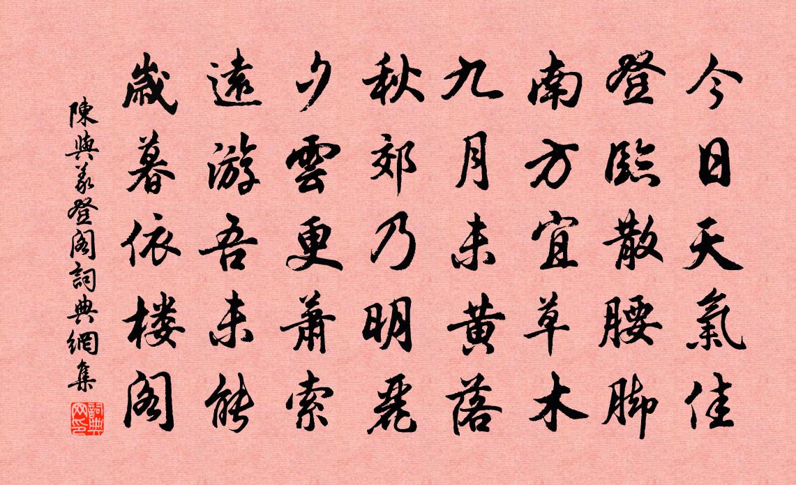 今日天氣佳,登臨散腰腳。南方宜草木,九月未黃落。