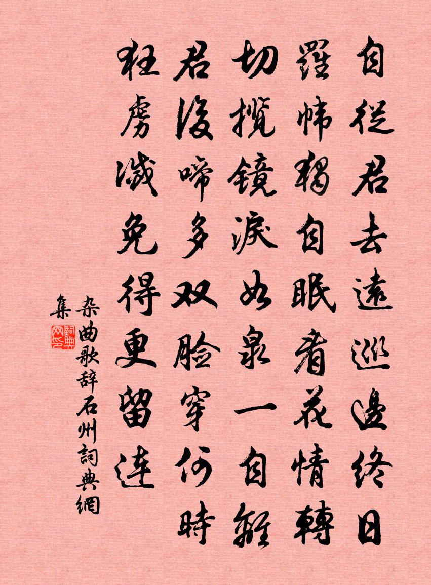攬鏡淚如泉。一自離君後,啼多雙臉穿。