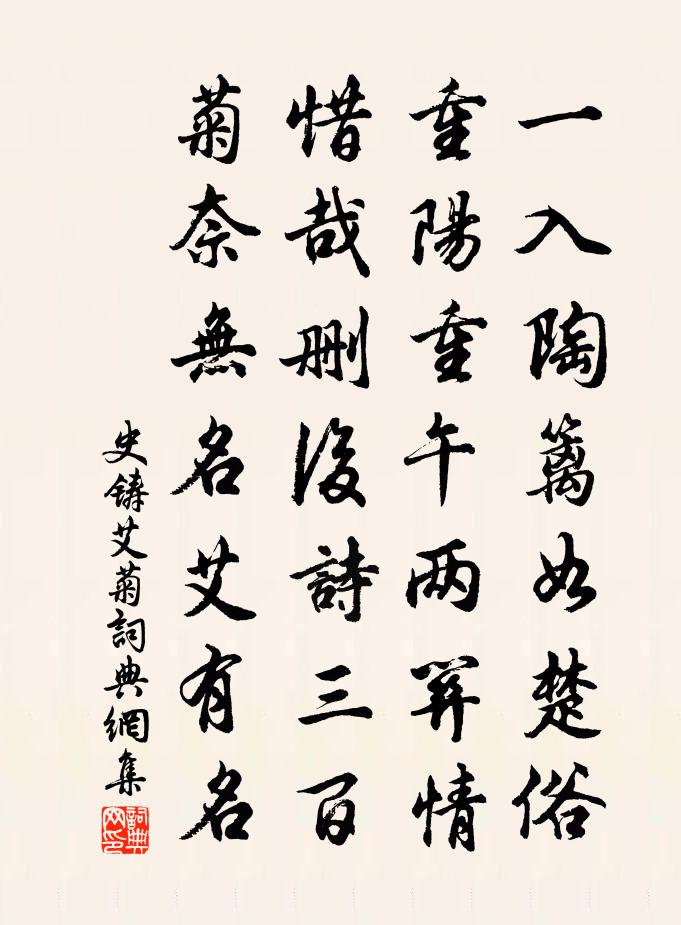 詩詞名句歷史字典書法欣賞書法字典國語詞典說文解字康熙字典古漢語字典標 題 作 者 詩 句 艾菊作者:史鑄 朝代:宋代艾菊原文一入陶籬如楚俗,重陽重午兩關情。惜哉刪後詩三百,菊奈無名艾有名。詩詞問答問:艾菊的作者是誰?答:史鑄問:艾菊寫於哪個朝代?答:宋代史鑄艾菊書法欣賞艾菊書法作品詩詞推薦九日偕翁與可江正甫鄭景雲遊鳳山朱復之〔宋代〕裹將破帽鳳山游,鳳去台空餘古丘。白髮尚能今日客,黃花祗作故園秋。天浮渭北荒荒杳,江入旴南隱隱流。我始二月晁公溯〔宋代〕門外春寒數日風,登樓聊恃醉顏紅。水浮渺莽春畦外,山在冥茫暮雨中。水調歌頭佚名〔宋代〕今日雪飛六出,明夜月圓三五,梅臘正傳芳。恰值生申節,共獻椒觴。閒詠園中草木陸游〔宋代〕一樹山櫻鳥啄殘,懸釣半舍亦甘酸。兒童採得爭來餉,應念衰翁舌本乾。正月三日歸溪上有作,簡院內諸公杜甫〔唐代〕野外堂依竹,籬邊水向城。蟻浮仍腊味,鷗泛已春聲。藥許鄰人劚,書從稚子擎。白頭趨幕府,深覺負平生。湯泉二首程師孟〔宋代〕曾看華清舊浴池,此泉何日落天涯。徘徊卻想開元事,不見蓮花見荔枝。汀州陳映〔宋代〕元豐陳汀州,見謂黃太史。年登境無蝗,政恐不相似。送汪濤李中〔唐代〕知君別家後,不免淚沾襟。芳草千里路,夕陽孤客心。花飛當野渡,猿叫在煙岑。霄漢知音在,何須恨陸沈。頌古十七首釋大觀〔宋代〕葉脫風高天地秋,長江袞袞只東流。行人不折離亭柳,羌笛空吹落日愁。春濃曲周弼〔宋代〕雨膏蒸土蘭芽熱,粉魂淡艷凝緗纈。柳條無力受東風,桃葉春江弄花月。枕函墜發昏眠重,綺帳驚寒替花恐。屏瑣稽山雪陸游〔宋代〕高人採藥來禹穴,骨瘦巉然鬢眉白。結茅分得野鹿場,一夜北風三尺雪。明朝過午勢愈惡,虎兕交跡人聲絕。虛窗寓嘆陸游〔宋代〕劍外歸耕夢不通,公車上疏路何從?有心求縮地萬里,無羽可朝天九重。狂誦新詩驅瘧鬼,醉吹橫笛舞神龍。明當次韻王鞏留別蘇轍〔宋代〕決策歸田豈世情,網羅從此脫餘生。請君速治雞黍具,待我同為沮溺耕。秋社相從醵錢飲,日高時作叩門聲。茅廬送二兄入蜀盧照鄰〔唐代〕關山客子路,花柳帝王城。此中一分手,柑顧憐無聲。寄贈許璋少府姚鵠〔唐代〕若說君高道,何人更得如。公庭唯樹石,生計是琴書。詩句峭無敵,文才清有餘。不知尺水內,爭滯北溟魚。憶秦娥(冬夜宴東堂)毛滂〔宋代〕醉醉。醉擊珊瑚碎。花花。先借春光與酒家。夜寒我醉誰扶我。應抱瑤琴臥。清清。攬月吟風不用人。偈頌一百六十首釋宗杲〔宋代〕聊聞舉著便承當,好肉無端已剜瘡。著眼機輪上頭看,方知兩兩不成雙。和西湖即席二首舒坦〔宋代〕十洲風籟韻笙簫,疑有仙人燕碧桃。影逼銀河星半墮,氣吞月窟兔爭豪。九秋波浪沙鷗狎,萬古功名釣艇高。卻恨臘月中游發生洞裴回之際見雙白蝙蝠三飛洞門…口號韋洪〔唐代〕欲驗發生洞,先開冰雪行。窺臨見二翼,色素飛無聲。狀類白蝙蝠,幽感騰化精。應知五馬來,啟蟄迎春榮。露冕題時覺寺在在堂十二首舒坦〔宋代〕高低深淺逐陰晴,一簇林巒畫不成。誰道青山怕雲點,白雲點處轉分明。名句推薦世有伯樂,然後有千里馬。千里馬常有,而伯樂不常有。韓愈《雜說四·馬說》 君子耳不聽淫聲,目不視邪色,口不出惡言荀子《荀子·樂論》 使能,國之利也。左丘明《左傳·文公·文公六年》 見未真,勿輕言。知未的,勿輕傳。李毓秀《弟子規·信》 夫妻反目,不能正室也。佚名《易傳·象傳上·小畜》 凍風時作,作則飛沙走礫。袁宏道《滿井遊記》 經年塵土滿征衣,特特尋芳上翠微。岳飛《池州翠微亭》 上無威,下生亂。來俊臣《羅織經·治下卷第三》 旌旆夾兩山,黃河當中流。李白《經亂離後天恩流夜郎憶舊遊書懷贈江夏韋太守良宰》 望君煙水闊,揮手淚沾巾。劉長卿《餞別王十一南遊》