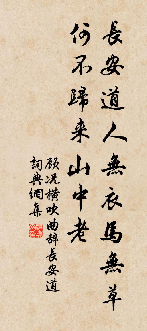 詩詞名句歷史字典書法欣賞書法字典國語詞典說文解字康熙字典古漢語字典標 題 作 者 詩 句 橫吹曲辭。長安道作者:顧況 朝代:唐代橫吹曲辭。長安道原文長安道,人無衣,馬無草,何不歸來山中老。詩詞問答問:橫吹曲辭。長安道的作者是誰?答:顧況問:橫吹曲辭。長安道寫於哪個朝代?答:唐代問:橫吹曲辭。長安道是什麼體裁?答:樂府顧況橫吹曲辭。長安道書法欣賞橫吹曲辭。長安道書法作品注釋全唐詩:卷18_68全唐詩:卷265_5詩詞推薦淨土寺追和東坡韻楊棟〔宋代〕令君督來期,書郵日旁午。世事不足論,清游乃先務。朝朝叩禪關,復此得淨字。淺斜琥珀濃,細嚼銀絲縷。味雋余倅父子輓詞二首林亦之〔宋代〕誰唱雙棺薤曲悲,前聲未斷後聲隨。人間父子情何限,可忍長簫逐個吹。偶成文天祥〔宋代〕昨朝門前地寸裂,今朝床下泥尺深。人生世間一蒲柳,豈堪日炙復雨淋。起來高歌離騷賦,睡去細和梁父吟。已矣賀山徐灼〔宋代〕昔人來隱遁,茲山始得名。岩扃鎖積翠,石罅流余清。花石今何在,菁茅久已生。為言唐賀老,千載有殊情。奉和幸神皋亭應制宋之問〔唐代〕清蹕喧黃道,乘輿降紫宸。霜戈凝曉日,雲管發陽春。台古全疑漢,林餘半識秦。宴酣詩布澤,節改令行仁。昔恃有感蘇泂〔宋代〕眾木曉森森,孤松自百尋。絕知根氣大,能受雪霜深。草草供時役,悠悠匪力任。春風遍紅紫,啼鴂便驚心。戲答野人陸游〔宋代〕日飲雲根一脈泉,知君骨相自應仙。曲肱閒臥茅檐下,買斷南山不用錢。鳥散余花落趙存約〔唐代〕春曉游禽集,幽庭幾樹花。坐來驚艷色,飛去墮晴霞。翅拂繁枝落,風添舞影斜。彩雲飄玉砌,絳雪下仙家。分散勸夢得酒白居易〔唐代〕誰人功畫麒麟閣?何客新投魑魅鄉?兩處榮枯君莫問,殘春更醉兩三場。次韻道輔丈荊州吟四首吳則禮〔宋代〕楚橘秋高千樹黃,赤湖城畔晚煙長。風塵滿地麒麟老,血汗無因污錦韁。吳江舟中樓鑰〔宋代〕陳連久矣共一被,小別愁生夜無寐。風帆將我上征途,回首江山忽千里。小舟橫臥吳江水,夢回依約蕭齋里。五更五鼓乘風過洞庭湖日高已至廟下作詩三篇孔武仲〔宋代〕北風投曉漸雄豪,椎鼓車帆十丈高。枕底洞庭三百里,臥聽天樂音業嘈。牧趙友直〔宋代〕相呼相喚出煙堤,冒雨前村膝沒泥。萬斛愁懷人不解,嗚嗚桐角倚牛吹。聞夫杜羔登第(一作聞杜羔登第又寄)趙氏〔唐代〕長安此去無多地,鬱鬱蔥蔥佳氣浮。良人得意正年少,今夜醉眠何處樓。同李司直題武丘寺兼留諸公與陸羽之無錫皎然〔唐代〕陵寢成香阜,禪枝出白楊。劍池留故事,月樹即他方。應世緣須別,棲心趣不忘。還將陸居士,晨發泛歸航。贈毛仙翁張仲方〔唐代〕毛仙翁,毛仙翁,容貌常如二八童。幾歲頭梳雲鬢綠,無時面帶桃花紅。眼前人世閱滄海,肘後藥成辭月宮。方口呈交代陳造〔宋代〕雨行不轉首,豈即真良圖。二年望鄉國,得歸不暇徐。徒隸悉此意,頗作竭蹷趨。沖泥傍險地,亦復歌載塗。使君集英殿秋燕教坊樂語口號王珪〔唐代〕秋光紫翠動南山,天上傳呼御燕頒。一部梨園吹鳳曲,九重丹闕對龍顏。日華初駐金輿仗,霞彩猶浮玉筍班。欲識謝紫微以畫鷺二軸為寄梅堯臣〔宋代〕白鷺畫雙素,粉毫幽趣多。翹沙依折葦,刷羽對衰荷。浦思懸秋壁,江情憶釣蓑。因君遠相寄,詩詠對滄波。澹山岩釋紹瑤〔宋代〕使君得佳句,簡存如猗那。著之岩石中,千古不可磨。名句推薦人惡人怕天不怕,人善人欺天不欺。佚名《增廣賢文·上集》 榮寵有初,鮮有終者;吉凶無常,智者少禍。來俊臣《羅織經·固榮卷第六》 偶然值林叟,談笑無還期。王維《終南別業 / 初至山中 / 入山寄城中故人》 柘彈何人發,黃鸝隔故宮。溫庭筠《清明日》 人生無根蒂,飄如陌上塵。陶淵明《雜詩》 名播蘭簪妃后里,暈生蓮臉君王側。王清惠《滿江紅·題南京夷山驛》 影孤憐夜永,永夜憐孤影蘇軾《菩薩蠻·回文秋閨怨》 雨中百草秋爛死,階下決明顏色鮮。杜甫《秋雨嘆三首》 群燕辭歸鵠南翔,念君客游多斷腸。曹丕《燕歌行》 兩個黃鸝鳴翠柳,一行白鷺上青天。杜甫《絕句》