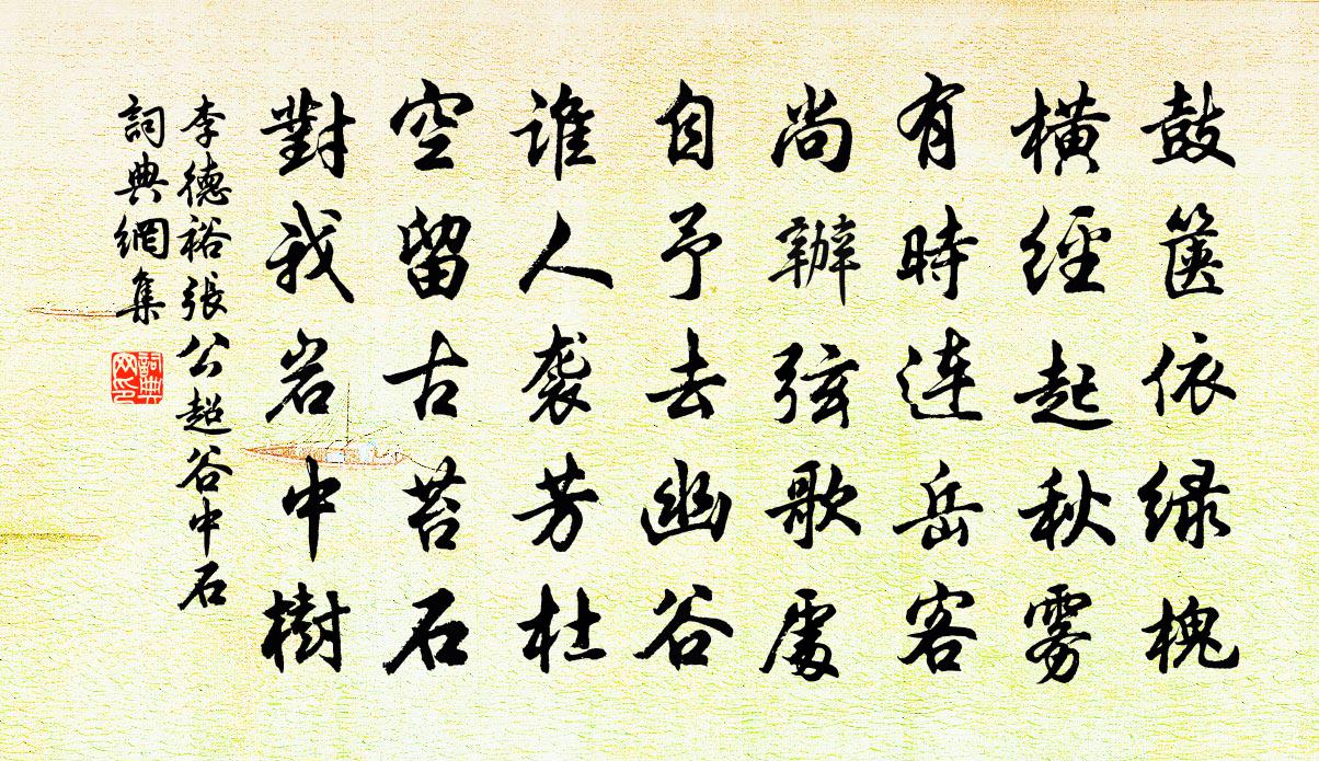 詩詞名句歷史字典書法欣賞書法字典國語詞典說文解字康熙字典古漢語字典標 題 作 者 詩 句 張公超谷中石作者:李德裕 朝代:唐代張公超谷中石原文鼓篋依綠槐,橫經起秋霧。有時連岳客,尚辦弦歌處。自予去幽谷,誰人襲芳杜。空留古苔石,對我岩中樹。詩詞問答問:張公超谷中石的作者是誰?答:李德裕問:張公超谷中石寫於哪個朝代?答:唐代問:張公超谷中石是什麼體裁?答:五古李德裕張公超谷中石書法欣賞張公超谷中石書法作品注釋全唐詩:卷475-66詩詞推薦春日田園雜興十首陳舜道〔宋代〕春來非是愛吟詩,詩是田園樂與時。清入吟懷花月照,紅生笑面柳風吹。村聲盪耳鳥監角,社酒柔情玉練槌。閒悶江中望月盧照鄰〔唐代〕江水向涔陽,澄澄寫月光。鏡圓珠溜徹,弦滿箭波長。沉鉤搖兔影,浮桂動丹芳。延照相思夕,千里共沾裳。歲寒三友圖張元乾〔宋代〕蒼官森古鬣,此君挺剛節。中有調鼎姿,獨立傲霜雪。和錢端明游南屏山蔡襄〔宋代〕新秋初變一天清,急雨仍添萬木聲。山勢不根空外起,湖光無際概來平。錦衣應有徘徊戀,金地聊開燕樂情。衰暮送楊秀才貫休〔唐代〕北山峨峨香拂拂,翠漲青奔勢巉崒。赤松君宅在其中,紫金為牆珠作室。玻璃門外仙獓睡,幢節森森絳煙密。水精開河畢功喜而有作吳芾〔宋代〕污河積水困薰蒸,開鑿那知不日成。野水盡從檐下過,客舟還傍市中行。江山自昔天然秀,人物從今分外清。本為還京樂張炎〔宋代〕醉吟處。都是琴尊,竟日松下語。有筆床茶灶,瘦筇相引,逢花須住。正翠陰迷路。年光荏苒成孤旅。待趁燕檣,落鴻范成大〔宋代〕落鴻聲里怨關山,淚濕秋衣不肯乾。只道一番新雨過,誰知雙袖倚樓寒。朝陽三章袁甫〔宋代〕日之出矣,於彼扶桑。鳳之鳴矣,於彼高岡。匪高剛鳴,朝陽之光。君子如鳳,愛此朝陽。純德孔明,聞於四方。感事六言陸游〔宋代〕麥熟與人同喜,虜驕為國私憂。身似五更春夢,家如一宿山郵。挽陳巡檢吳芾〔宋代〕夫君端是一時豪,排難捐軀不憚勞。忠義自能全里社,姓名那肯辱銓曹。一生倜儻心常逸,五世團欒壽更主。瞑目次令衿游玉壺高詠十絕對換席羲叟〔宋代〕絕景頻因警句夸,莫傳俚耳便紛拿。須知味道耽岩穴,志意難將富貴加。偈頌一百零九首釋可湘〔宋代〕黃面老漢,至死脫空。分明病背,特故摩胸。當日無人知此意,年年花鳥訴春風。浪淘沙·借問江潮與海水白居易〔唐代〕借問江潮與海水,何似君情與妾心?相恨不如潮有信,相思始覺海非深。入湘二首徐照〔宋代〕入湘無濁水,天亦憫忠臣。陰結魚龍氣,香聞蘭杜春。高吟方有思,靜望忽傷神。舟上多漁父,應無似昔人。頌魯蘇拯〔唐代〕天推布魯仲尼,布週遊布典墳布。游遍布七十國,不令遇一君。一國如一遇,腳踏車不轉輪。良由至化力,為國不為上杜相三首曾鞏〔宋代〕翊戴唐虞旦暮中,忽將符節撫山東。憶歸慷慨無私計,抗疏頻煩有古風。世路一人知進退,士林當日計窮通。壽觴晝夜樂·洞房記得初相柳永〔宋代〕洞房記得初相遇。便只合、長相聚。何期小會幽歡,變作離情別緒。況值闌珊春色暮。對滿目、亂花狂絮。直恐好趙湖州東園雜詠和人韻賓日陳文蔚〔宋代〕著眼高時四海空,何須服日臉霞紅。清朝坐對升暘谷,萬里雲煙在古風。答裴丞說歸京所獻韋應物〔唐代〕執事頗勤久,行去亦傷乖。家貧無僮僕,吏卒升寢齋。衣服藏內篋,藥草曝前階。誰復知次第,濩落且安排。還期名句推薦南軒有孤松,柯葉自綿冪。李白《南軒松》 夕陽無限好,只是近黃昏。李商隱《樂遊原 / 登樂遊原》 有花有酒春常在,無燭無燈夜自明蒲松齡《聊齋志異·卷一·考城隍》 迢遞嵩高下,歸來且閉關。王維《歸嵩山作》 自從一閉風光後,幾度飛來不見人。李益《隋宮燕》 以亂攻治者亡,以邪攻正者亡,以逆攻順者亡韓非及後人《韓非子·初見秦》 千丈之堤,以螻蟻之穴潰;百步之室,以突隙之煙焚。韓非及後人《韓非子·喻老》 枝枝相糾結,葉葉競飄揚。李白《古意》 遙想江口依然,鳥啼花謝,今日誰為主。王瀾《念奴嬌·避地溢江書於新亭》 災人者,人必反 災之。莊子《莊子·內篇·人間世》