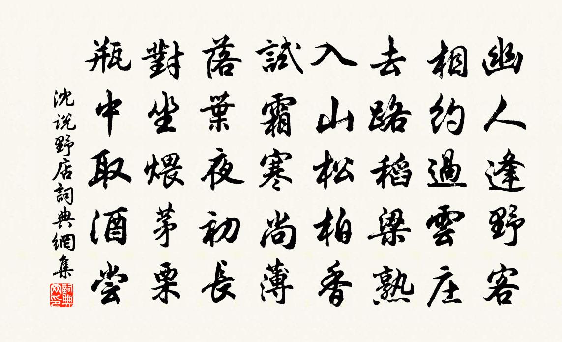 詩詞名句歷史字典書法欣賞書法字典國語詞典說文解字康熙字典古漢語字典標 題 作 者 詩 句 野店作者:沈說 朝代:宋代野店原文幽人逢野客,相約過雲莊。去路稻梁熟,入山松柏香。試霜寒尚薄,落葉夜初長。對坐煨茅栗,瓶中取酒嘗。詩詞問答問:野店的作者是誰?答:沈說問:野店寫於哪個朝代?答:宋代沈說野店書法欣賞野店書法作品詩詞推薦時世裝,儆戎也乾隆〔清代〕城中好高髻,鄉間一尺長。元和亦有時世裝,因之流行遍四方,不為怡容為戚態,望而可知非兆祥。所以少傅作詩王伯玉兄弟皆用叔文韻作詩見示答之趙蕃〔宋代〕春芳凋兮瘖杜宇,留得鳴鳩呼渴雨。誰能使我病斯愈,矻矻深思誦詩許。朝來剝啄有扣戶,亟起褰裾犯塵土。三王夏日池上三首張耒〔宋代〕落日鳴蟬夏木荒,芙蓉半落柳成行。何人紈扇生新恨,亭館迎秋夜夜涼。謝榮緒惠貺鮮鯽黃庭堅〔宋代〕偶思暖老庖玄鯽,公遣霜鱗貫柳來。虀臼方看金作屑,鱠盤已見雪成堆。朝會佚名〔宋代〕爰有嘉禾,含章自天。宛城洛書,粲若奎躋。珍符天著,靈意昭宣。永告洪業,時萬斯年。偈頌十二首釋道璨〔宋代〕捏不成團撥不開,衲僧一見莫輕猜。今朝為汝明明說,花奴花奴吃飯來。次沈節推送春韻二首杜范〔宋代〕佳人憔悴怯春衣,日暮樓高酒力微。流水落花無限恨,一聲杜宇又催歸。宴餞李員外許渾〔唐代〕病守江城眼暫開,昔年吳越共銜杯。膺舟出鎮虛陳榻,鄭履還京下隗台。雲葉漸低朱閣掩,浪花初起畫檣回。心期鷓鴣天佚名〔宋代〕宴罷中秋恰四朝。金爐因甚把香燒。若非金母生今日,應是 * 降此宵。歌窈窕,舞嬌嬈。迭將壽酒酌金蕉。椿齡七愛詩贈程鄉令趙君漢雍丘令劉矩蒲壽宬〔宋代〕吾愛劉淑方,禮遜以化彊。諄諄耳提訓,語味深且長。忿恚為可忍,莫入鳴弦堂。訟者各感去,從今無他腸。挽孫謙伯二首洪咨夔〔宋代〕文妙生花筆,名成喚雪書。處家貧似富,應物密如疏。薦墨交黃綬,榮光照板輿。出門車折軸,天理竟何如。寄湘中友人杜牧〔唐代〕莫念醉鄉迷酒杯,流年長怕少年催。西陵水闊魚難到,南國路遙書未回。匹馬計程愁日盡,一蟬何事引秋來?相如碧泉書院偶書花木所有七首胡宏〔宋代〕武陵春色片雲紅,紅綻功歸暖日烘。青帝也應長作主,莫教隨水又隨風。臨江仙(曉晴)劉辰翁〔宋代〕海日輕紅通似臉,小窗明麗新晴。滿懷著甚是真情。不知春睡美,為愛曉寒輕。說似吳山樓萬疊,雪銷未盡宮城。和陶飲酒二十首蘇軾〔宋代〕頃者大雪年,海派翻玉英。有士常痛飲,饑寒見真情。床頭有敗榼,孤坐時一傾。未能平體粟,且復澆腸鳴。脫衣桃花董嗣杲〔宋代〕占取韶光二月時,妒紅深濺謾成蹊。暗銷春恨含煙薄,靚落晨妝受雨低。憶樹自傷前度種,見花誰想去年題。武陵鴛鴦湖棹歌 之四十七朱彝尊〔清代〕酒市茶寮總看場,金風亭子入春涼。俊游改作烏篷小,蔡十郎橋低不妨。 飲城南即事黃庭堅〔宋代〕陰陰花柳一百五,吹空白綿亂紅雨。已看燕子飛入簾,未有黃鶯學人語。鬥雞走狗輕薄兒,衣裾相鮮氣相許。半是曲院風荷乾隆〔清代〕幾個田田漾細風,乍看綠葉想花紅。昆明湖上浮輕舫,六月春光訝許同。贈惟了侍者陸游〔宋代〕雪中僵臥不須悲,徹骨清寒始解詩。一等人間閒草木,月窗君看早梅枝。名句推薦白頭太守真愚甚,滿插茱萸望辟邪。宋祁《九日置酒》 歷冰霜、不變好風姿,溫如玉。陸容《滿江紅·詠竹》 高山仰止,景行行止。佚名《車舝》 處富貴之地,要知貧賤的痛癢;當少壯之時,須念衰老的辛酸。洪應明《菜根譚·概論》 江涵秋影雁初飛,與客攜壺上翠微。杜牧《九日齊山登高》 性者、本始材朴也;偽者、文理隆盛也。無性則偽之無所加,無偽則性不能自美。荀子《荀子·禮論》 郁孤台下清江水,中間多少行人淚?辛棄疾《菩薩蠻·書江西造口壁》 還將兩行淚,遙寄海西頭。孟浩然《宿桐廬江寄廣陵舊遊》 居必擇鄉,游必就士。荀子《荀子·勸學》 雨色秋來寒,風嚴清江爽。李白《酬裴侍御對雨感時見贈》