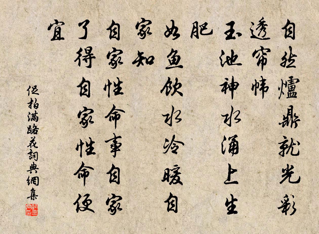 自然爐鼎就,光彩透簾幃。玉池神水涌,上生肥。