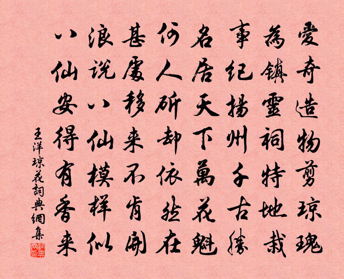 詩詞名句歷史字典書法欣賞書法字典國語詞典說文解字康熙字典古漢語字典標 題 作 者 詩 句 瓊花作者:王洋 朝代:宋代瓊花原文愛奇造物剪瓊瑰,為鎮靈祠特地栽。事紀揚州千古勝,名居天下萬花魁。何人斫卻依然在,甚處移來不肯開。浪說八仙模樣似,八仙安得有香來。詩詞問答問:瓊花的作者是誰?答:王洋問:瓊花寫於哪個朝代?答:宋代王洋瓊花書法欣賞瓊花書法作品詩詞推薦自訟宋祁〔宋代〕有人多病臥遙帷,誤舍寒耕失故畦。每畏賓朋嘲乘雁,寧教子弟愛家雞。淹中學廢心都塞,轅下鳴餘耳更低。自顧遍地錦佚名〔宋代〕吾本當初水竹村。甘河鎮上便狂風。七朵金蓮朵朵新。丘劉譚馬郝王溪行林景熙〔宋代〕風高余暑盡,獨策興悠然。野色延幽步,秋聲入暮年。日斜禽影亂,水薄樹根懸。回首故人遠,城笳吹夕煙。句崔鶠〔宋代〕團臍紫蟹初欲嘗,染指腥監還復輟。五月十四日夜夢一僧持詩編過予有暴雨詩語頗陸游〔宋代〕黑雲塞空萬馬屯,轉盼白雨如傾盆,狂風疾雷撼乾坤,壯哉澗壑相吐吞。老龍騰拏下天閽,鱗間火作電腳奔。巨松戊午上高宗封事胡銓〔宋代〕 紹興八年十一月日,右通直郎樞密院編修臣胡銓,謹齋沐裁書,昧死百拜,獻於皇帝陛下。 臣謹按:王倫隱居雜興楊公遠〔宋代〕蕭然天地一吟身,著向荒村野水濱。耳底松聲風奏樂,窗間竹影月傳神。無田種秫難謀醉,有硯遺家未是貧。除卻春晴一首蘇籀〔宋代〕高槐湯餅排朝饌,喜菊香菹芼戛羹。餉早趁墟樵墾計,澆春量腹聖賢並。無由屠嚼相親就,豈{左言右尼}奇章侈夜髮長垣司馬光〔宋代〕長塗暑氣劇,永日臥郵亭。書伏如牆鼠,宵行似野螢。歇鞍沙月白,拂面柳風醒。歷歷瞻雲漢,誰為一使星。送楊伯子劉過〔宋代〕天下少奇士,況乎吾一州。逢人問姓字,知子有源流。蘭砌多黃口,蓬山半白頭。誠齋知未可,喚作小坡休。浣溪沙(病中有以闌花相供者,戲書)程垓〔宋代〕天女殷勤著意多。散花猶記病維摩。肯來丈室問云何。腰佩摘來煩玉筍,鬢香分處想秋波。不知真箇有情麽。上巳游顯親寺題其壁方岳〔宋代〕屬玉雙飛水滿塘,石爐柏子掩山房。一瓶瀑煮春風濕,只聽松聲意自長。句張順之〔宋代〕白水一泓澄,茲山定玉骨。獨酌吳儆〔宋代〕松竹開幽徑,蓬蒿閟荊扉。庭前兩梧桐,濃綠涵清輝。南楹開半山,晨夕異煙霏。樽酒自賓主,幽鳥更塤篪。飲罷念奴嬌(劉左史光祖生日)魏了翁〔宋代〕岸容山意,隨春好,人在春風獨立。立盡閒雲來又去,目斷一天紅日。豈不懷歸,於焉信宿,此意無人識。只看鬢同胡汲仲兄弟登香遠樓方鳳〔宋代〕策杖探幽勝,同登況二難。江山雙極目,宇宙一憑欄。春色啼鶯破,孤城擁浪寒。遙遙煙靄里,猶作故宮看。雪中見梅花二首李覯〔宋代〕數枝斜出短牆陰,密雪無端苦見侵。天意似憐群木妒,盡教枯朽作瑤林。觀燈口號姜夔〔宋代〕世間形象盡成燈,烘火旋沙巧思生。列肆又多看不遍,遊人一一把燈行。寄題峴亭雍陶〔唐代〕峴亭留恨為傷杯,未得醒醒看便回。卻想醉游如夢見,直疑元本不曾來。寒食相將諸子游翟得園十詩楊萬里〔宋代〕驅使花枝苦未休,平章詩句政宜搜。無端一竇西窗日,不遣吾人略小留。名句推薦汀洲無浪復無煙,楚客相思益渺然。劉長卿《自夏口至鸚鵡洲夕望岳陽寄源中丞》 潮打三更瓜步月,雨荒十里紅橋火。鄭燮《滿江紅·思家》 短長亭子短長橋,橋外垂楊一萬條。錢枚《憶王孫·短長亭子短長橋》 寒山吹笛喚春歸,遷客相看淚滿衣。李益《春夜聞笛》 量入以為出戴聖《禮記·王制》 澹月梨花,借夢來、花邊廊廡。史達祖《解佩令·人行花塢》 不知戒,後必有,恨後遂過不肯悔,讒夫多進荀子《荀子·成相》 東船西舫悄無言,唯見江心秋月白。白居易《琵琶行 / 琵琶引》 霜威出塞早,雲色渡河秋。李白《太原早秋》 有情知望鄉,誰能鬒不變?謝朓《晚登三山還望京邑》